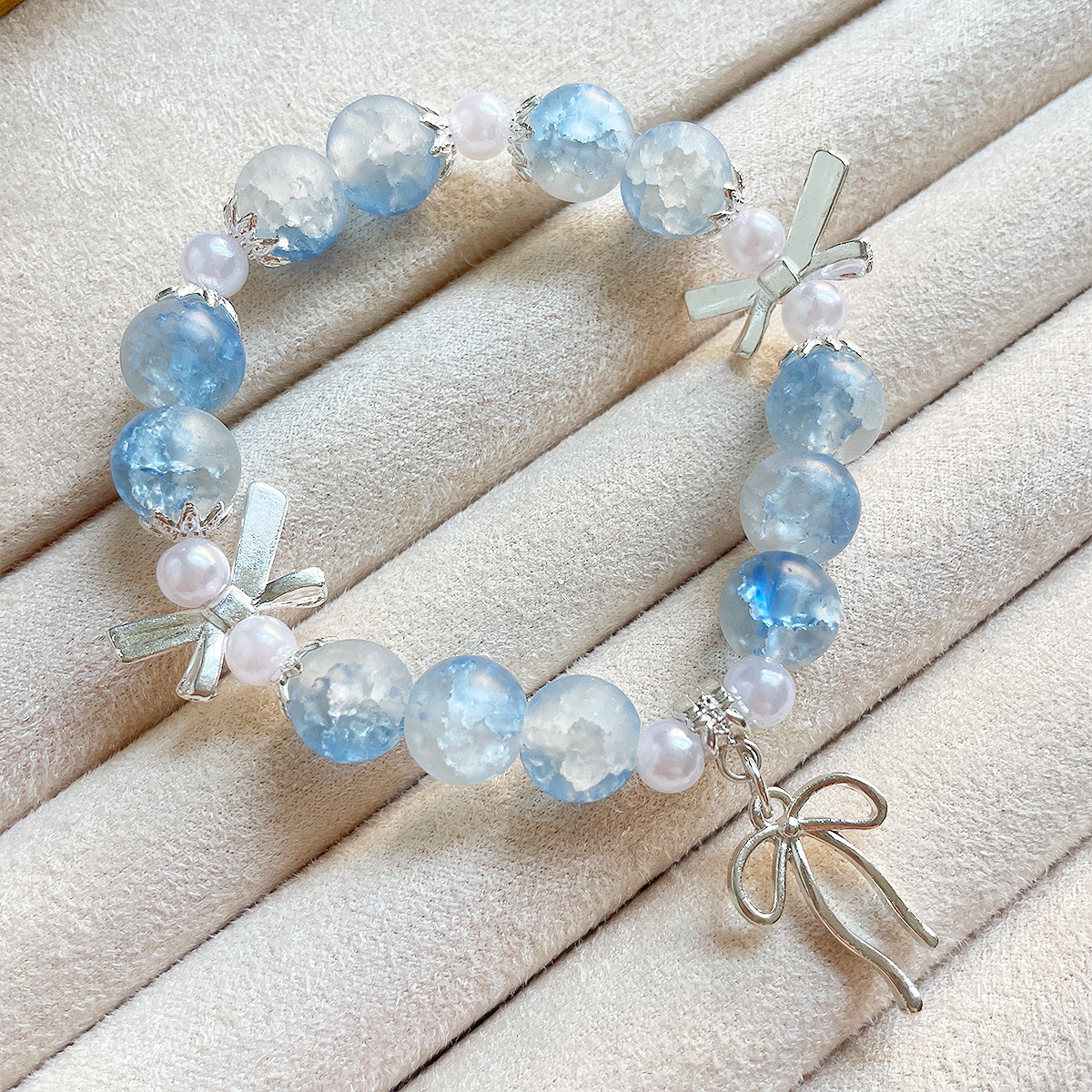 s110-blue frosted pearl bow bracelet# sz1070