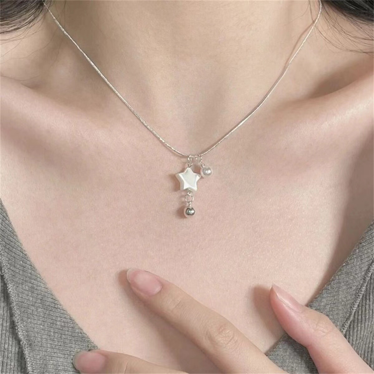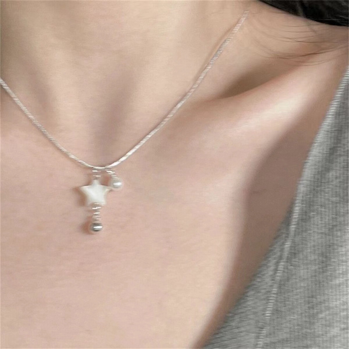 d-3-1: shell five-star beads necklace