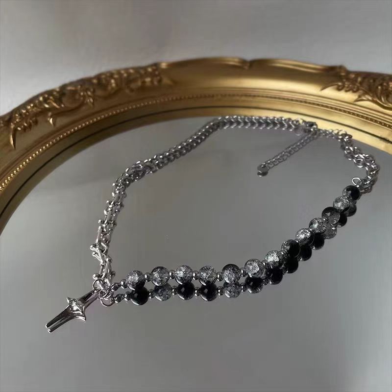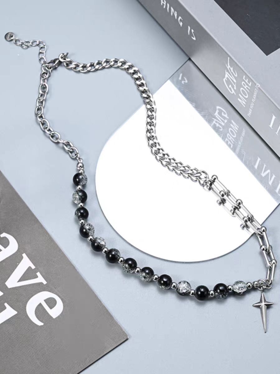 titanium steel necklace with ice crack beads