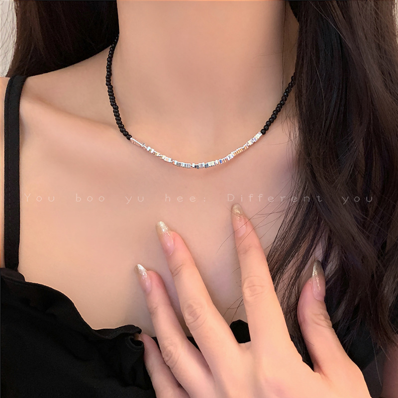 small pieces of silver stitching necklace