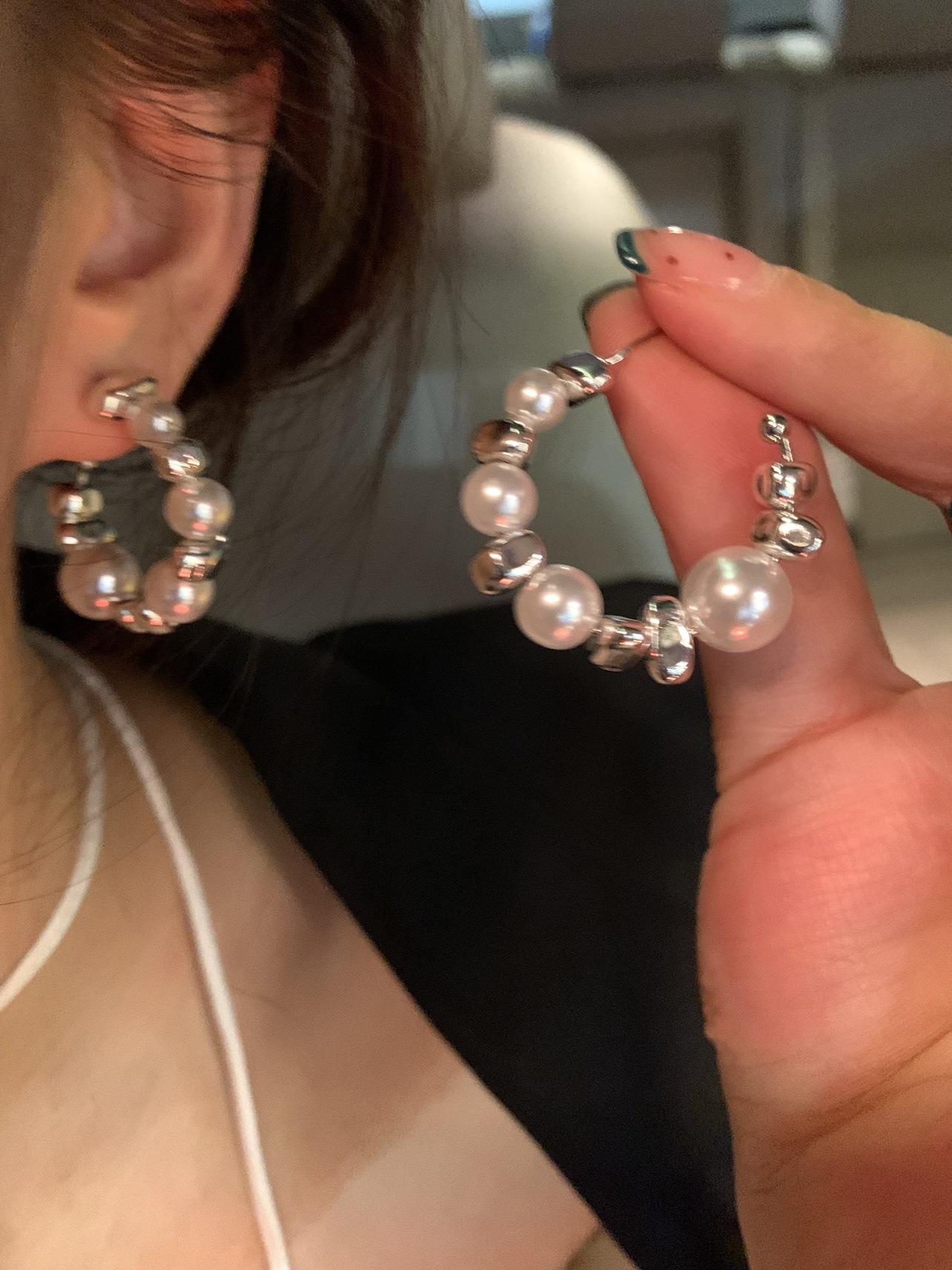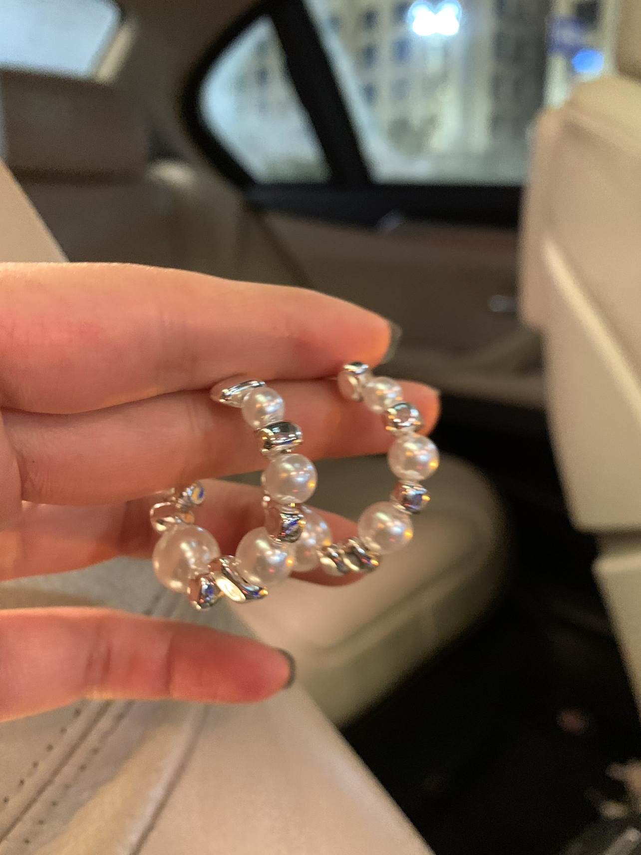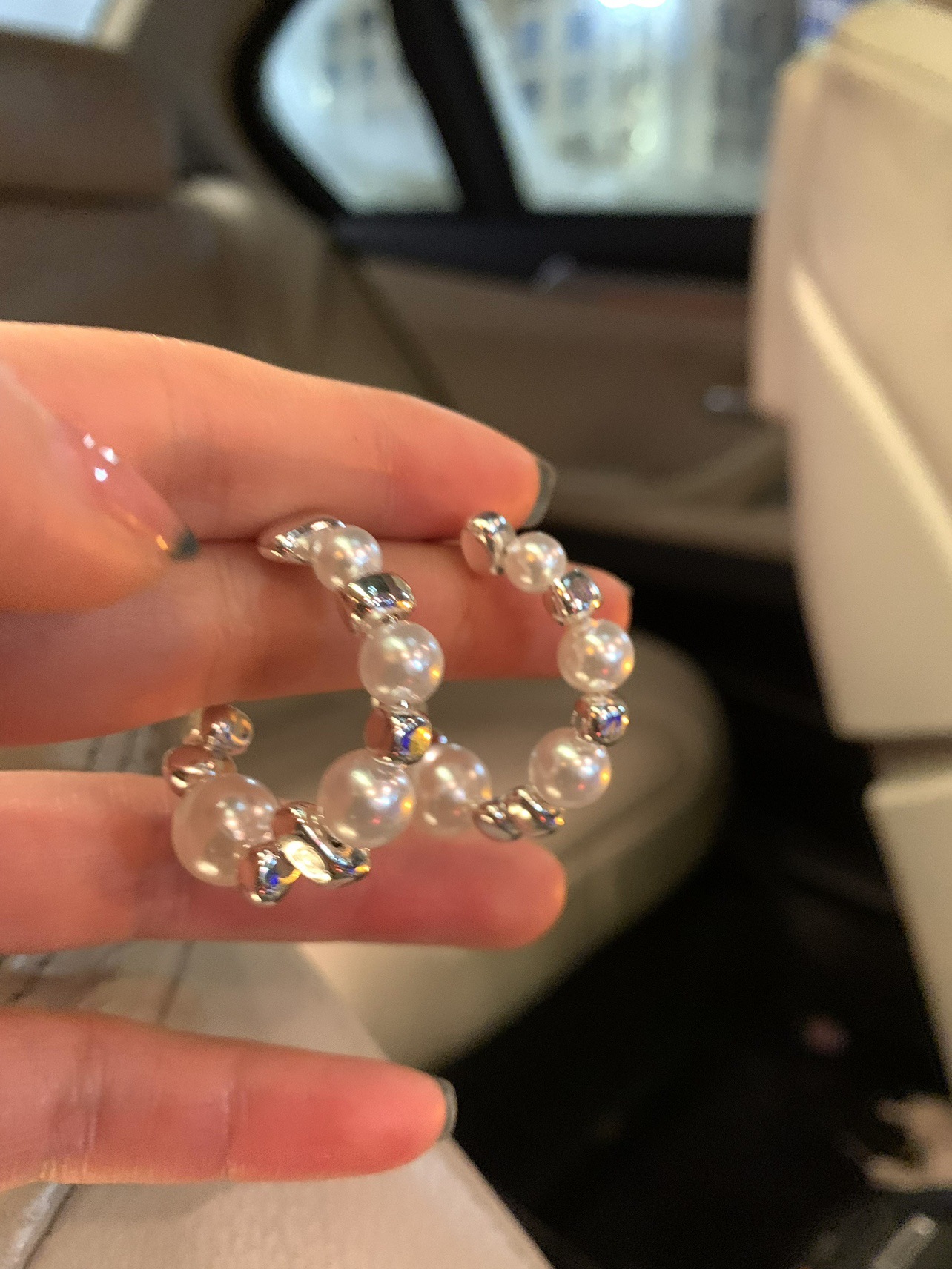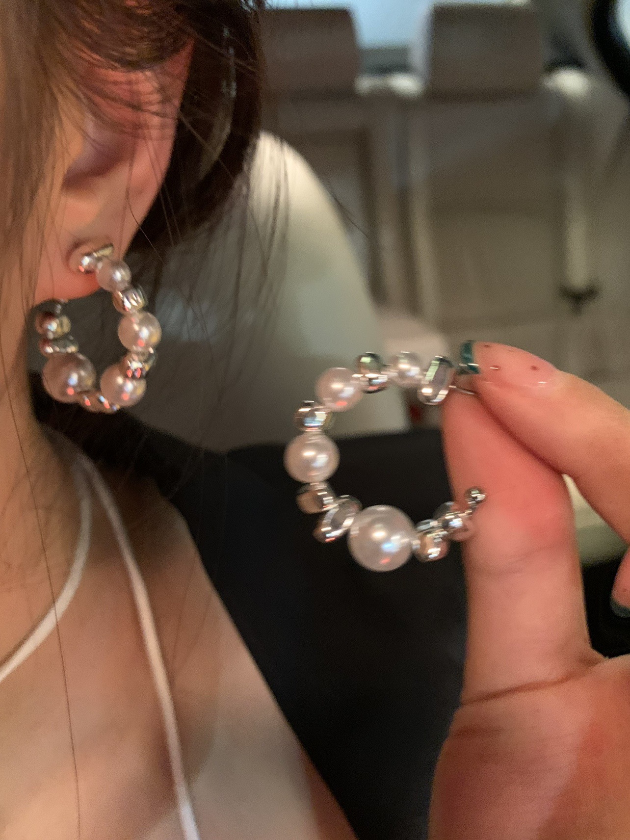pearl broken silver ear ring