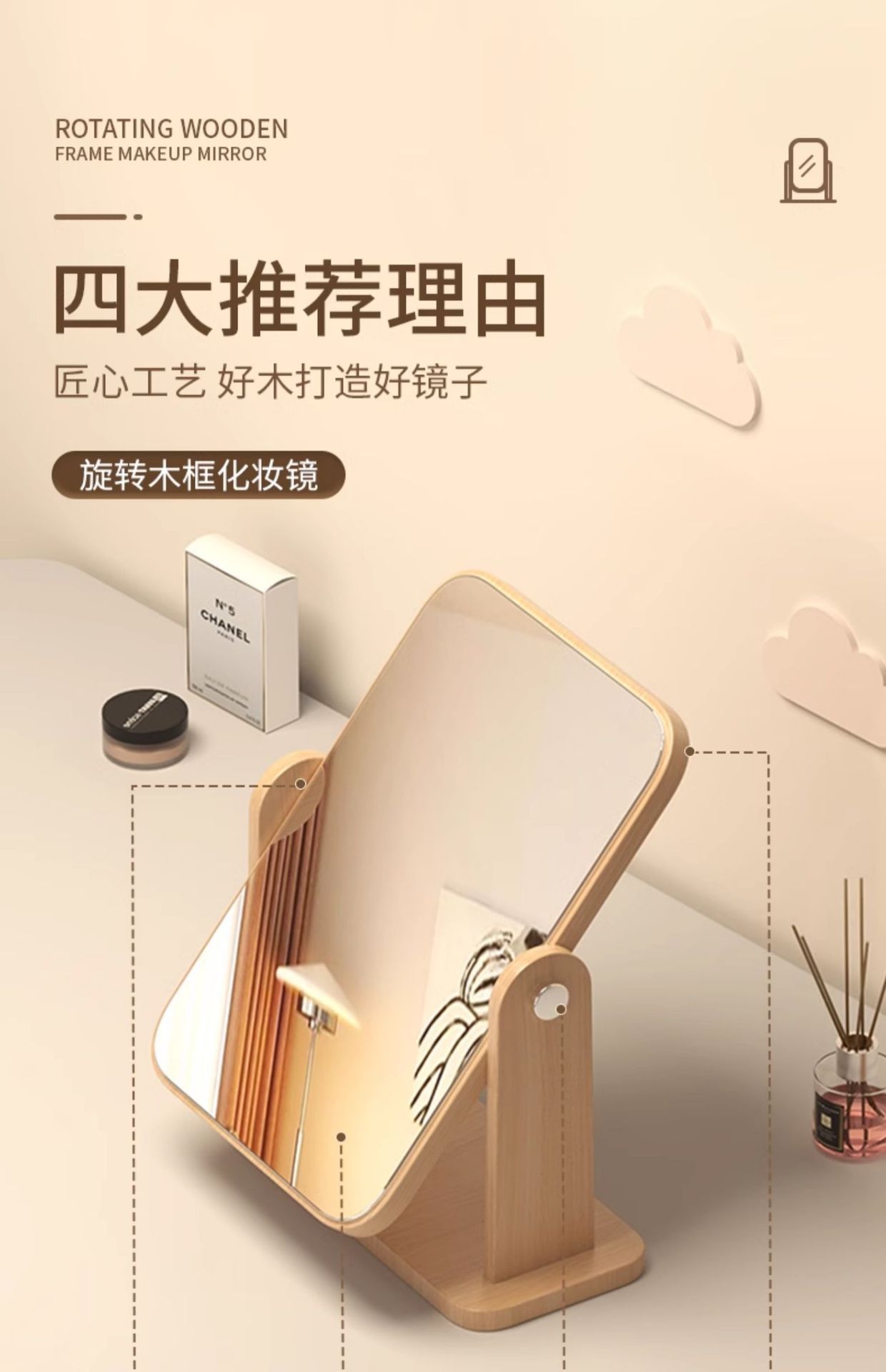 led folding mirror without light-beige