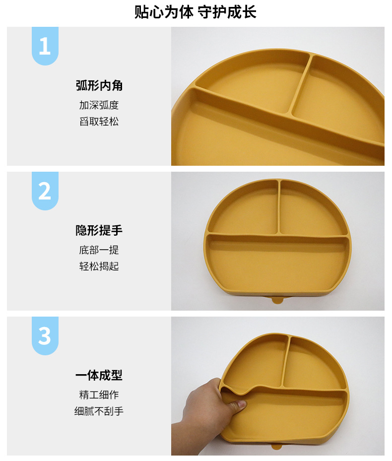【Product Name】:Silicone Baby Plate with Suction Cup - 3-Compartment Baby Food Plate for Infant Feeding - Child-Safe Bowl for Early Eating Training - Anti-Skid and Durable Bowl for Toddlers