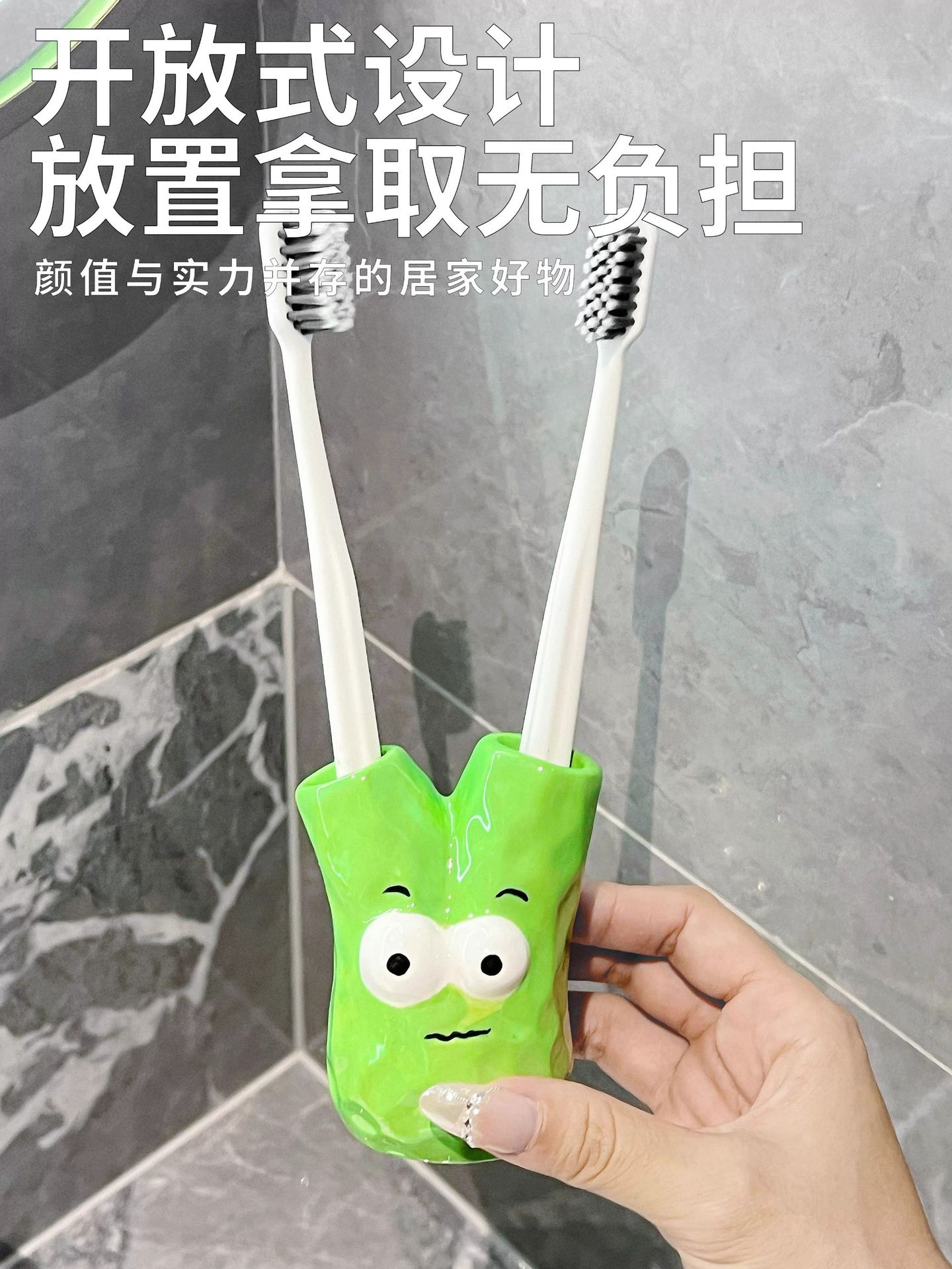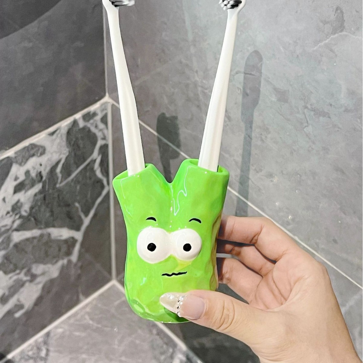 green chinese onion toothbrush holder
