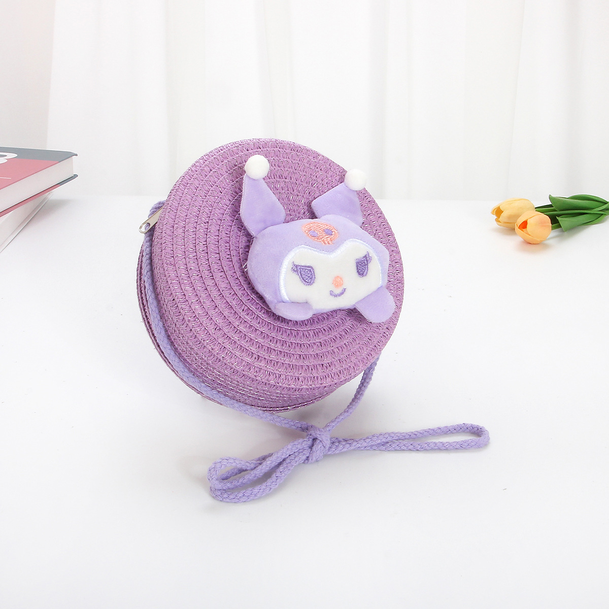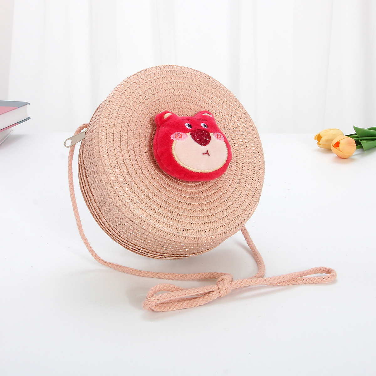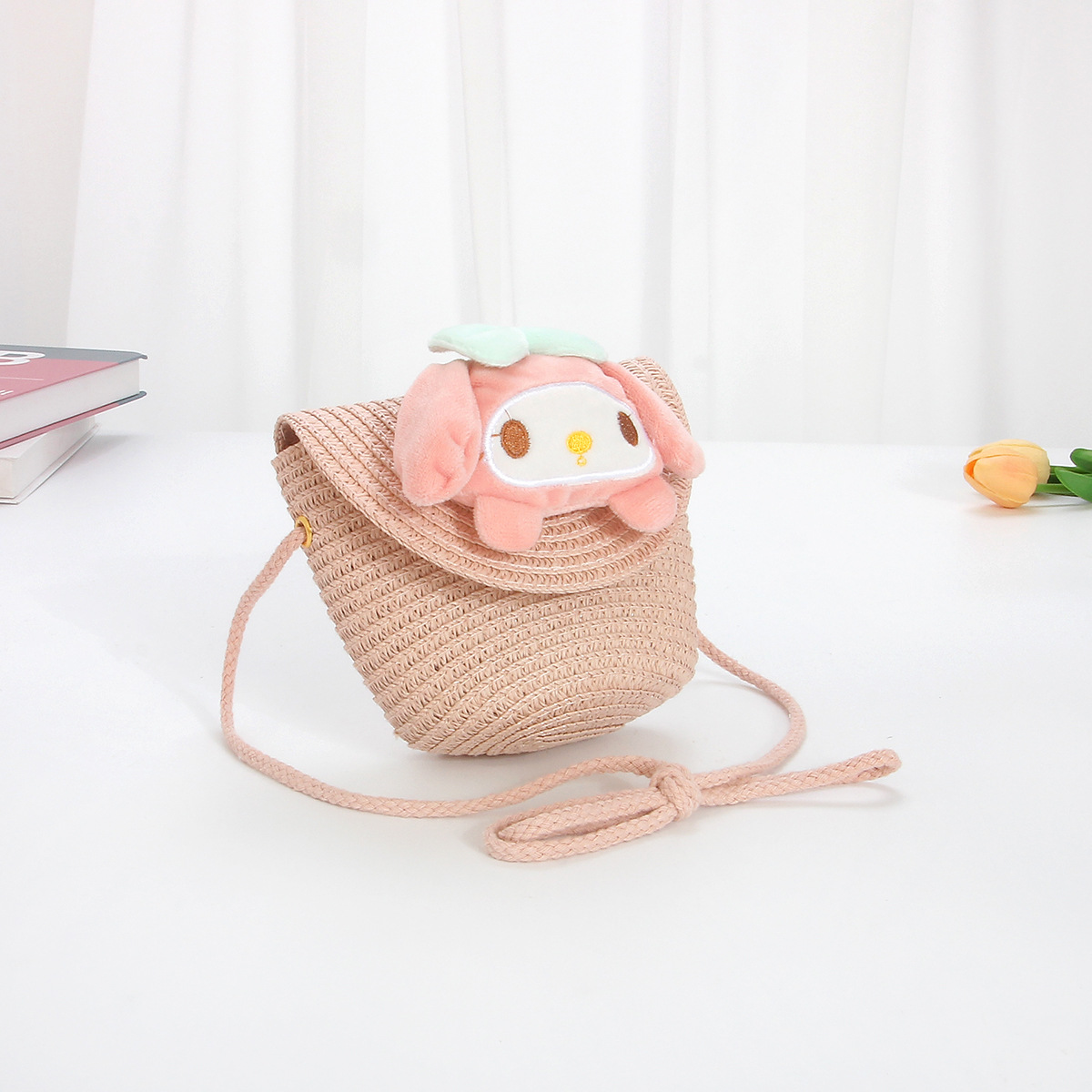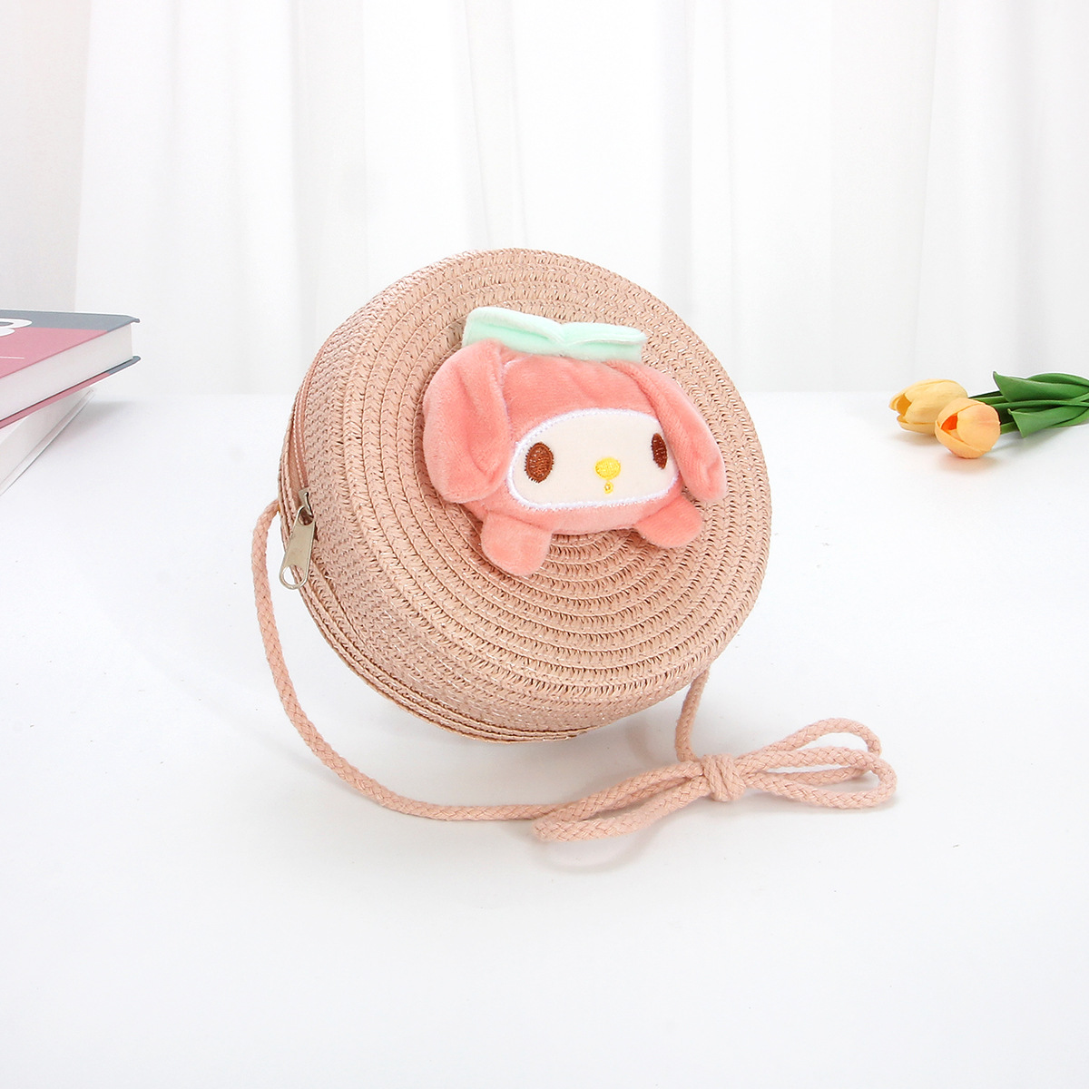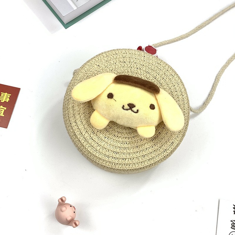 new children's straw woven bag cute cartoon big ears dog kids coin purse crossbody small bag woven mobile phone bag