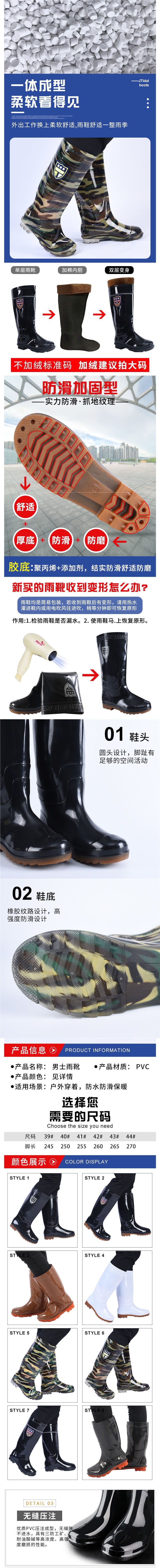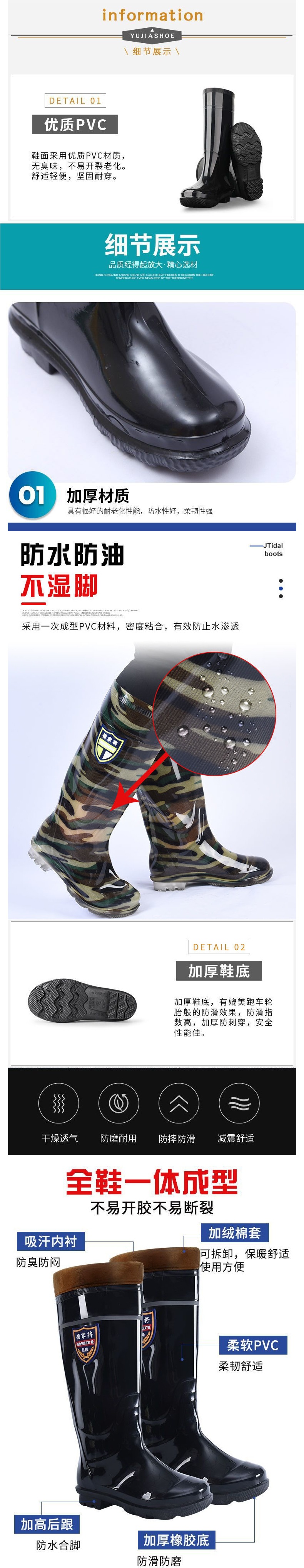 rain boots labor protection site pvc rain boots men's high non-slip wear-resistant rubber shoes rain shoes thickened beef tendon wholesale mid-calf