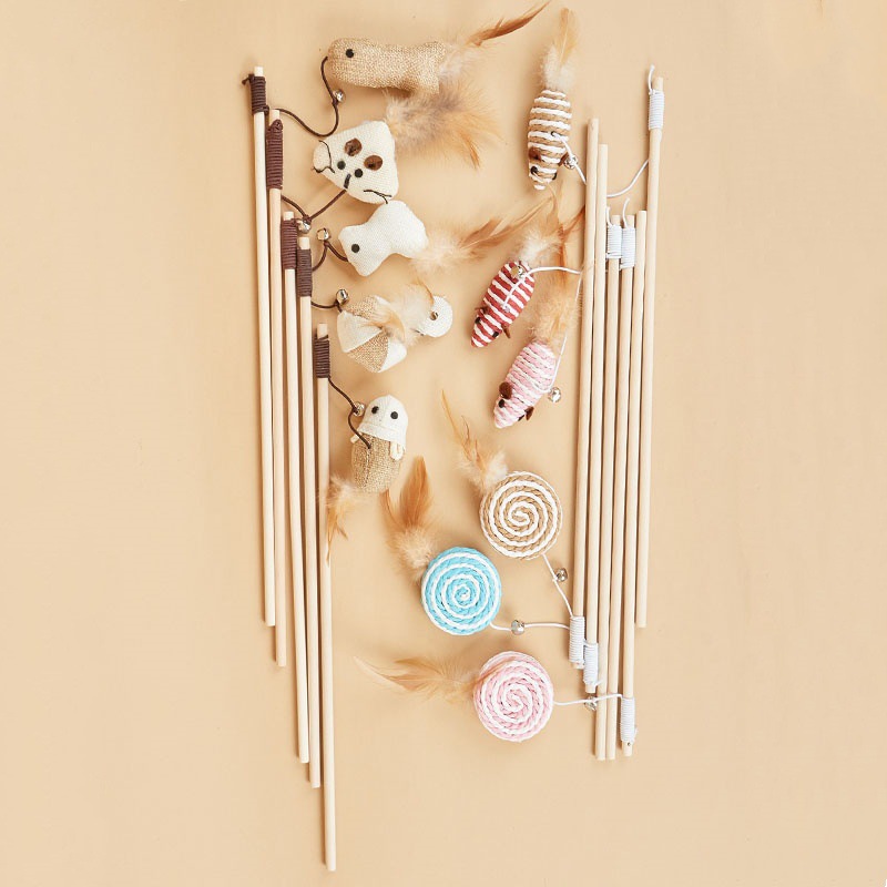 summary cross-border new arrival wooden pole teaser mouse bell teaser pole self-hi interactive toy wholesale