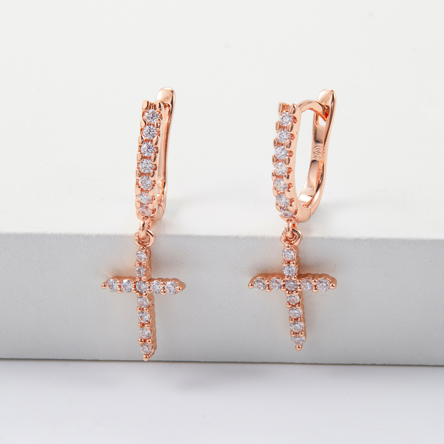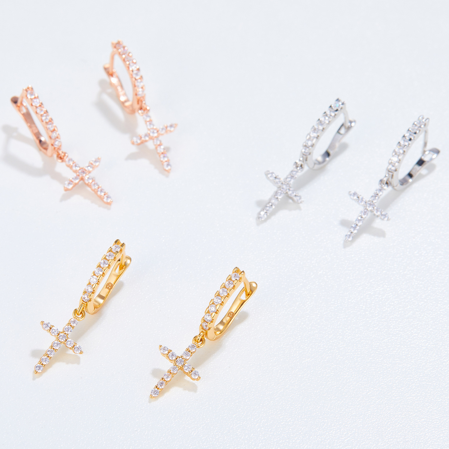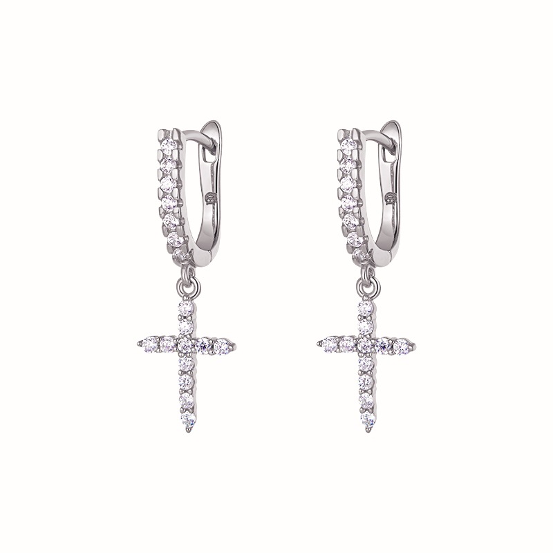 cross rhinestone earrings eardrop connector hip hop high street style rap twin trendy otica hole wind direction