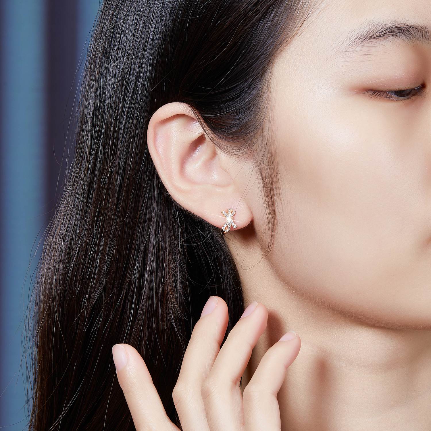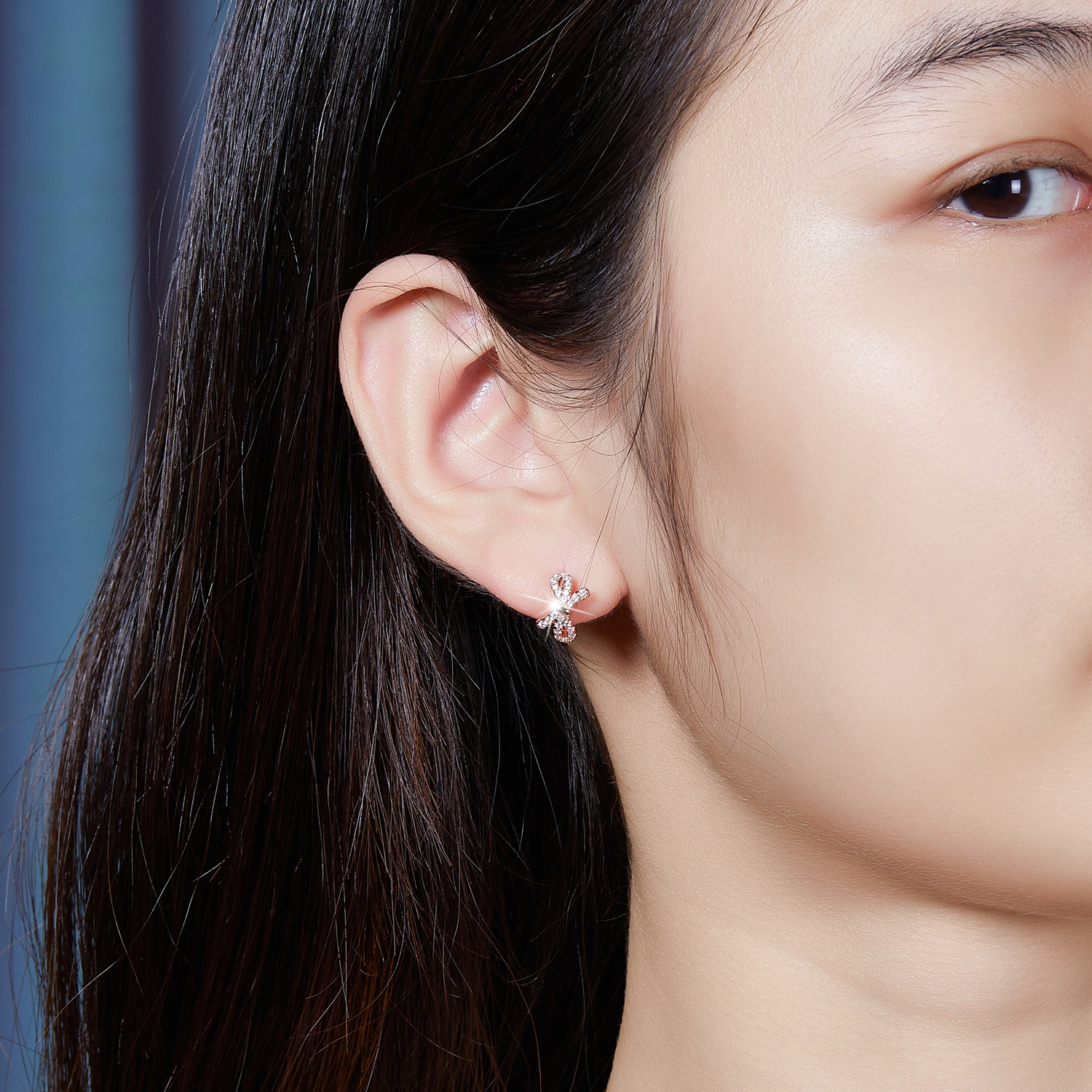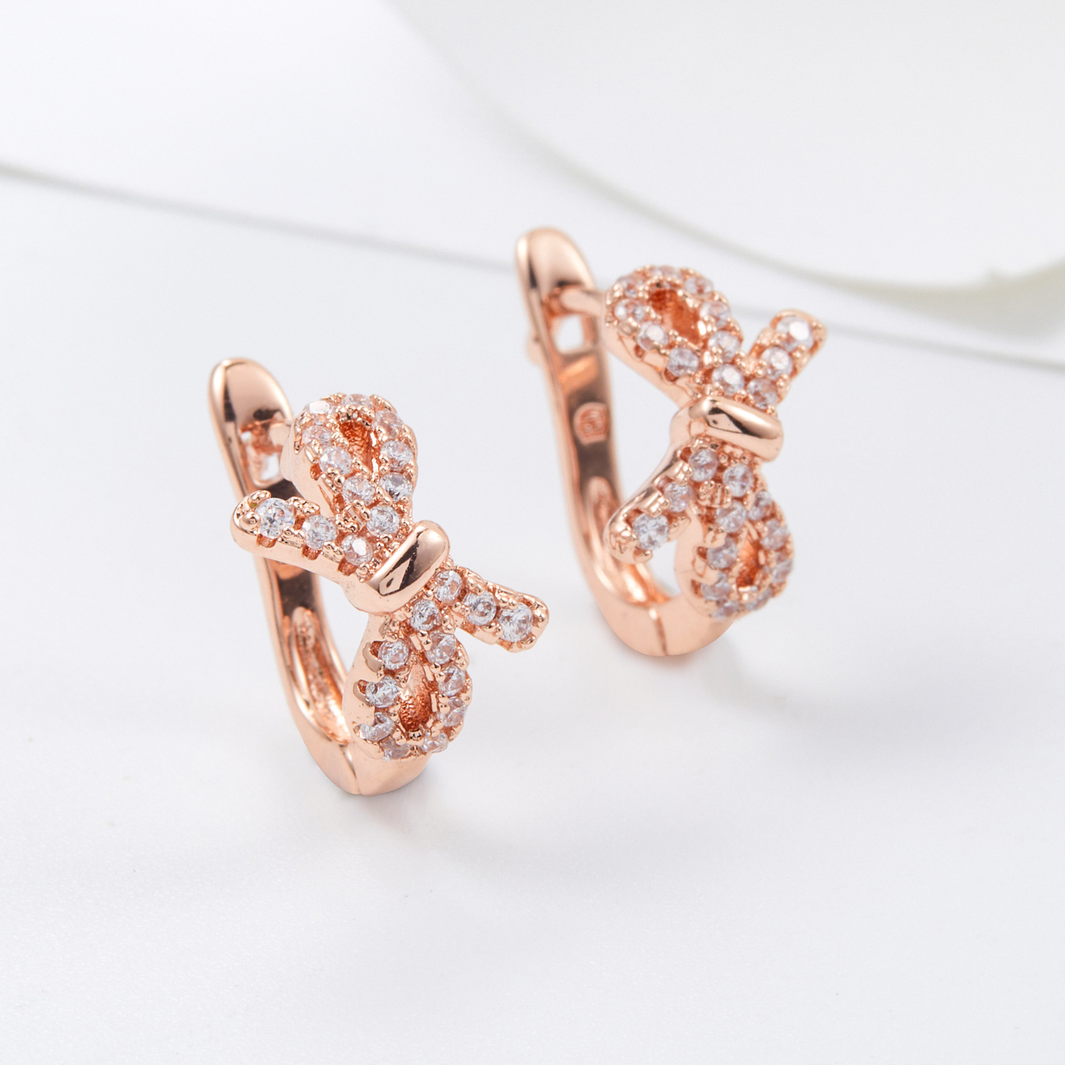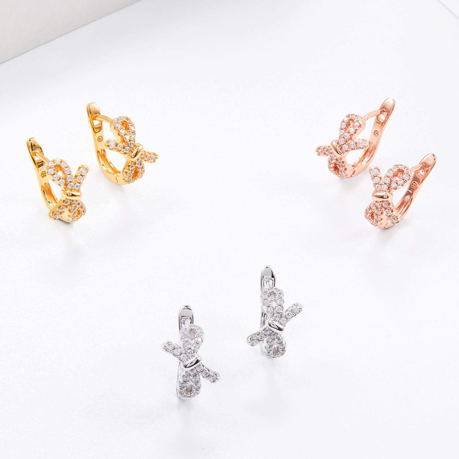 diamond-embedded bow ear ring gold and silver rose gold bow shape full of exquisite smart sweet romantic light luxury