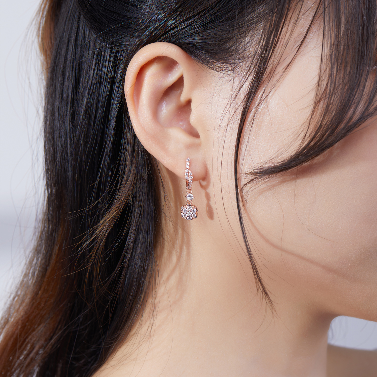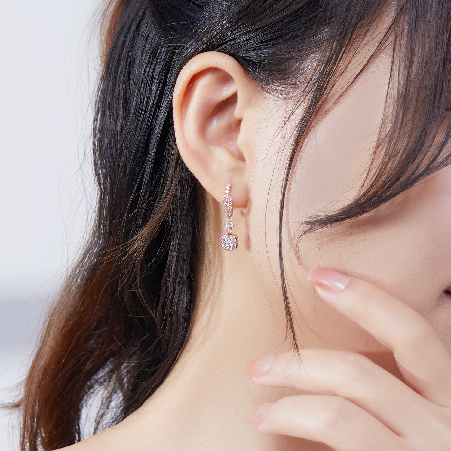 flower hand diamond earrings earrings small and versatile multi-color optional trendy all-match the dinner party classic style hepburn