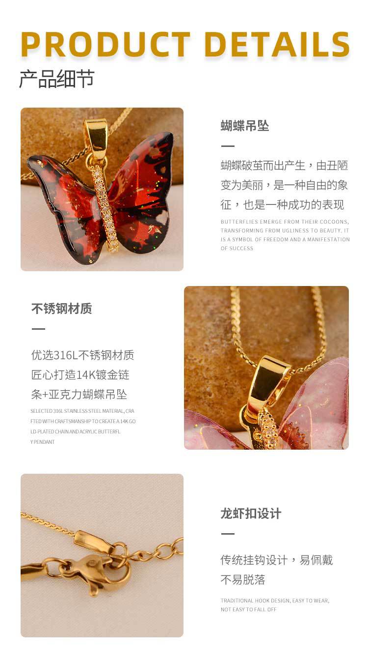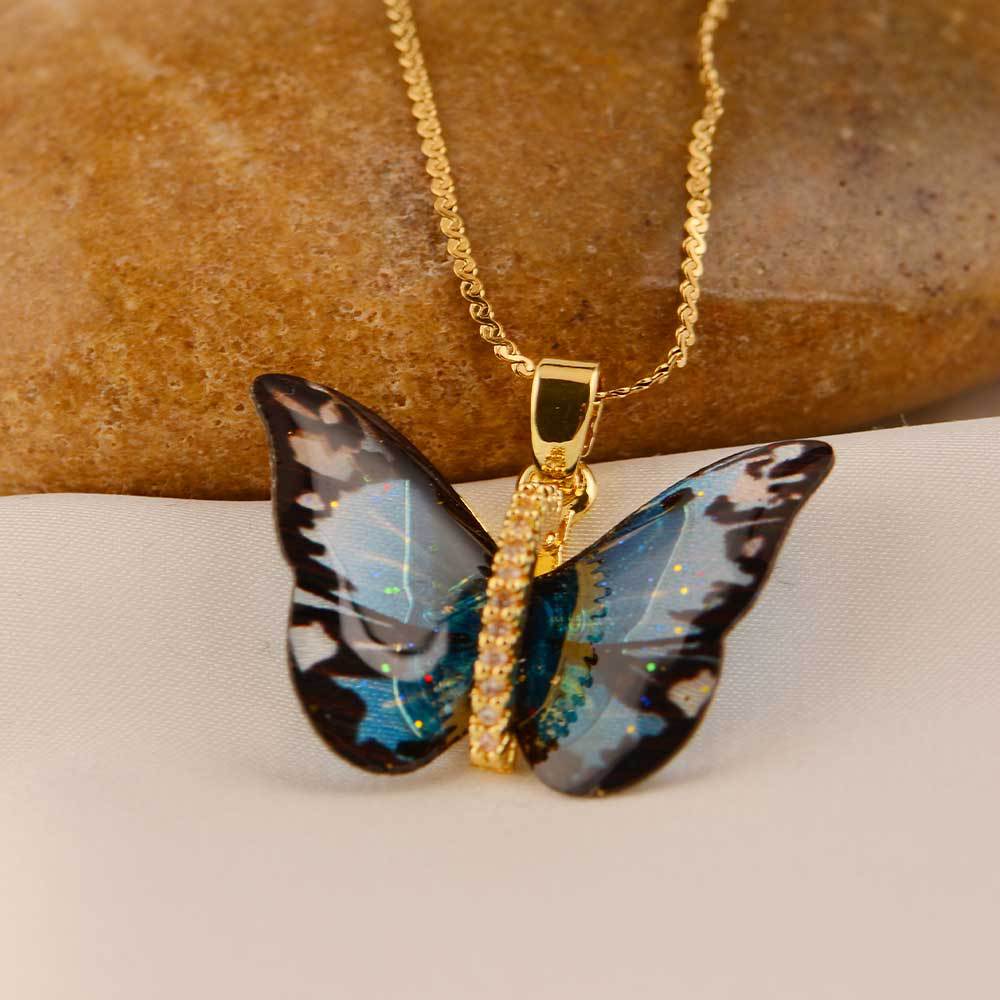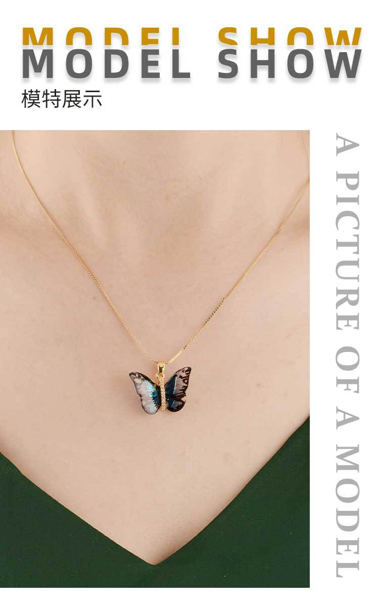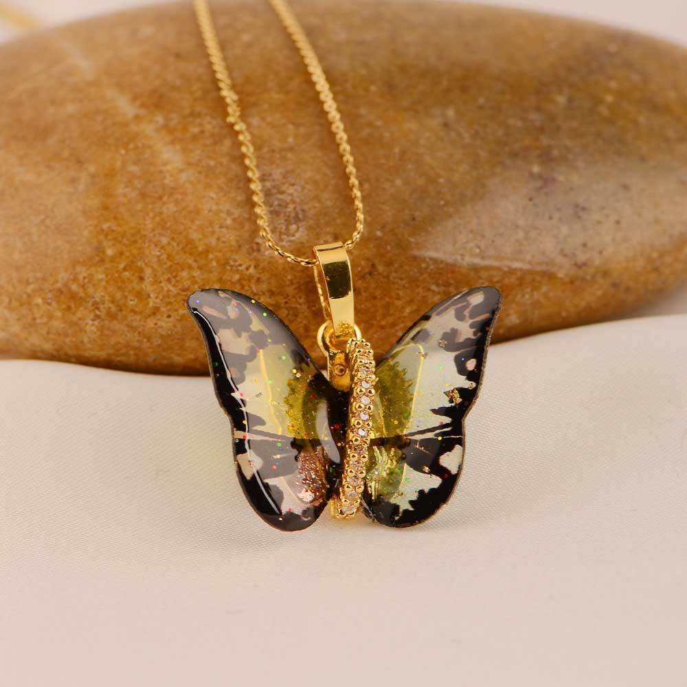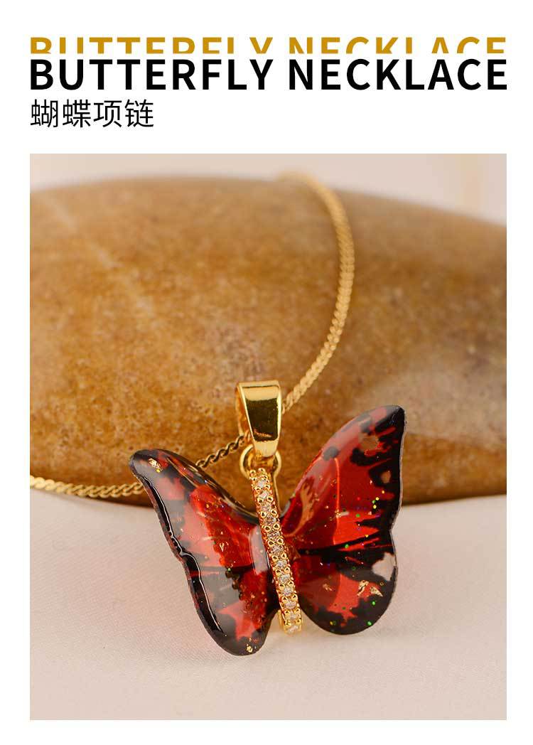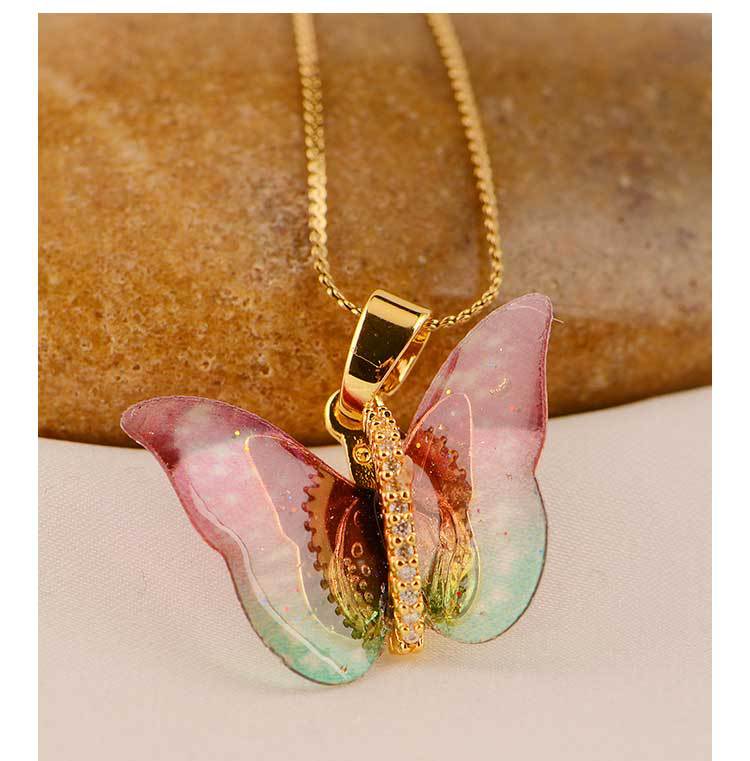 mori dreamlike colorful resin butterfly exquisite pendant micro inlaid zircon niche personality necklace japanese and korean simple ins