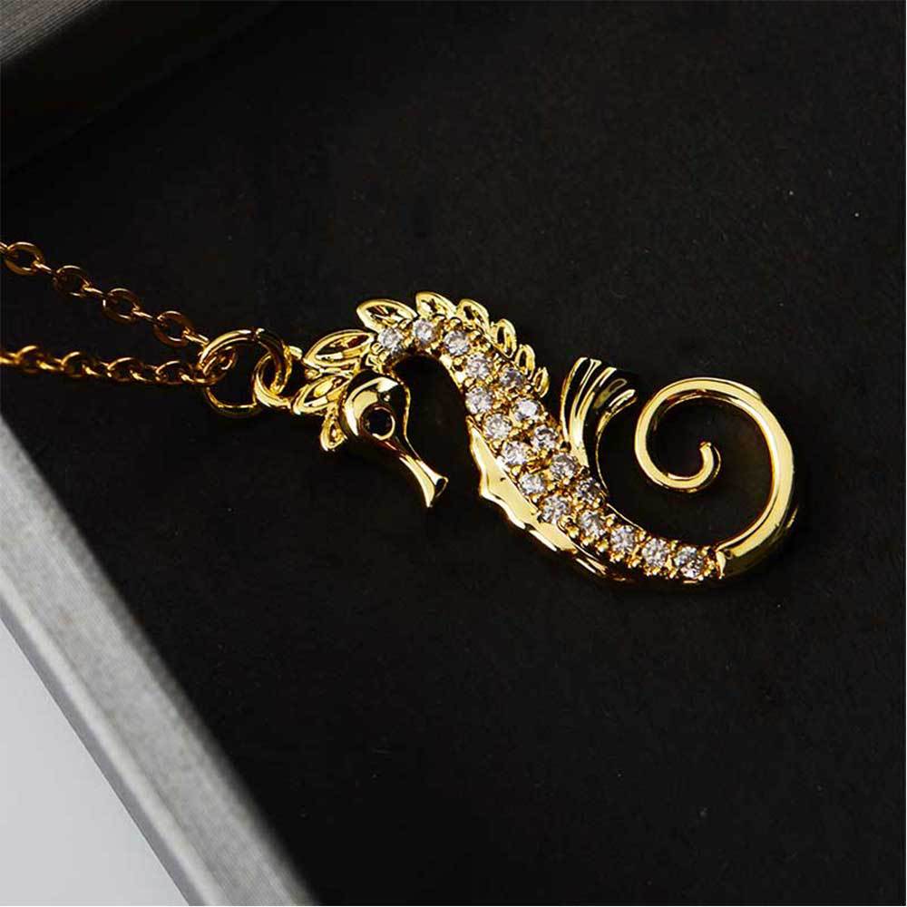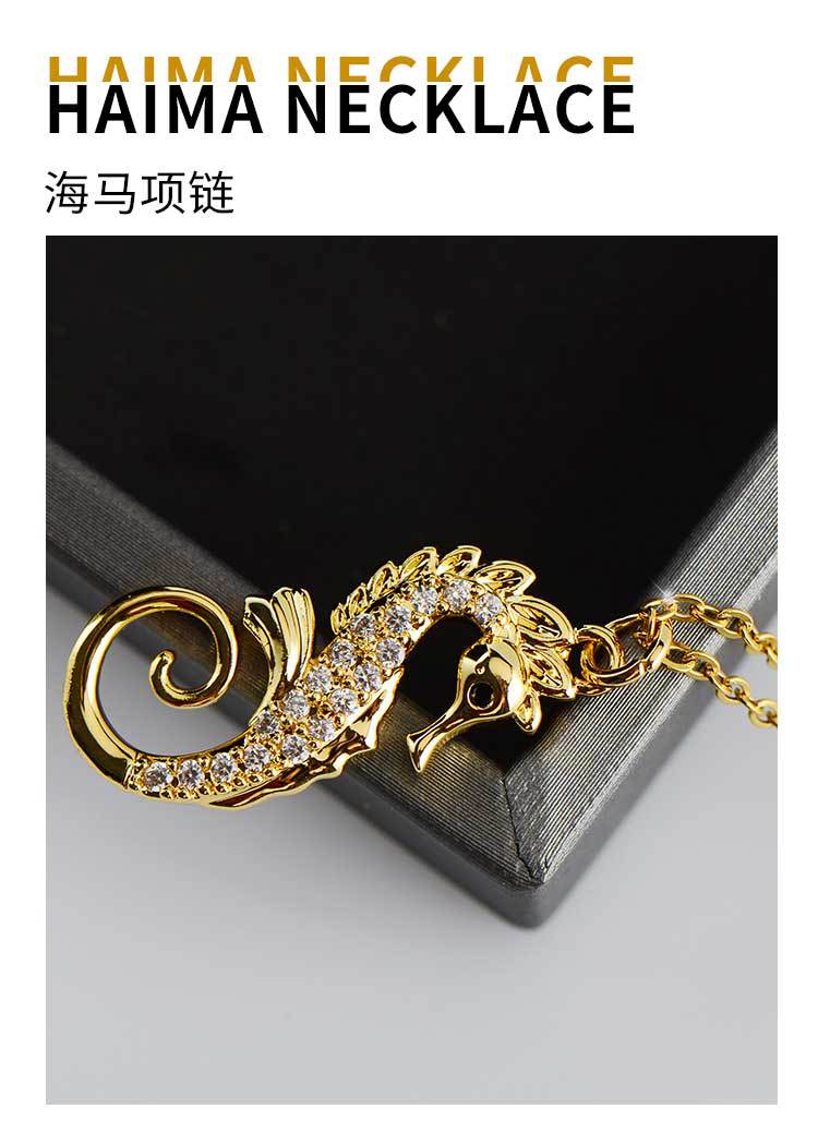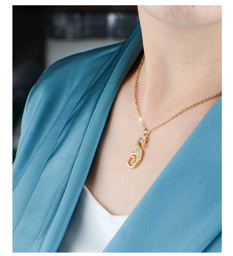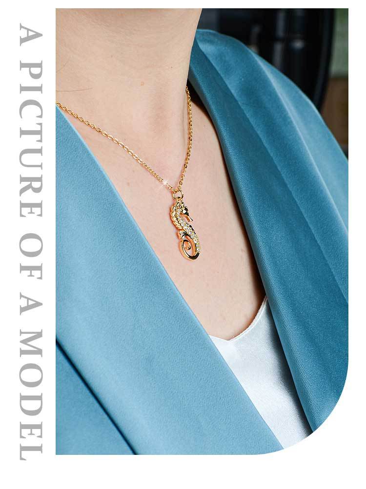 european and american affordable luxury fashion clavicle chain stainless steel necklace micro-inlaid copper pendant ocean series niche seahorse jewelry