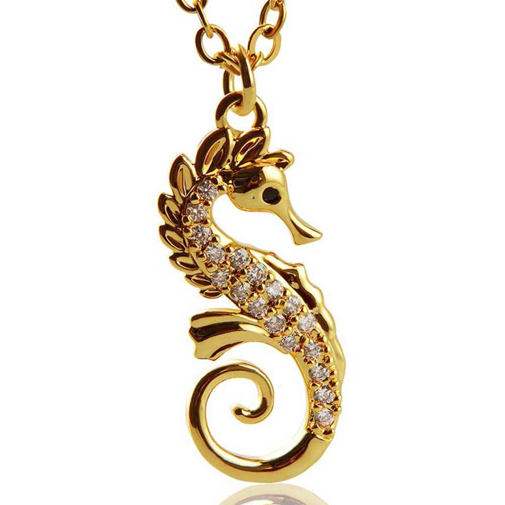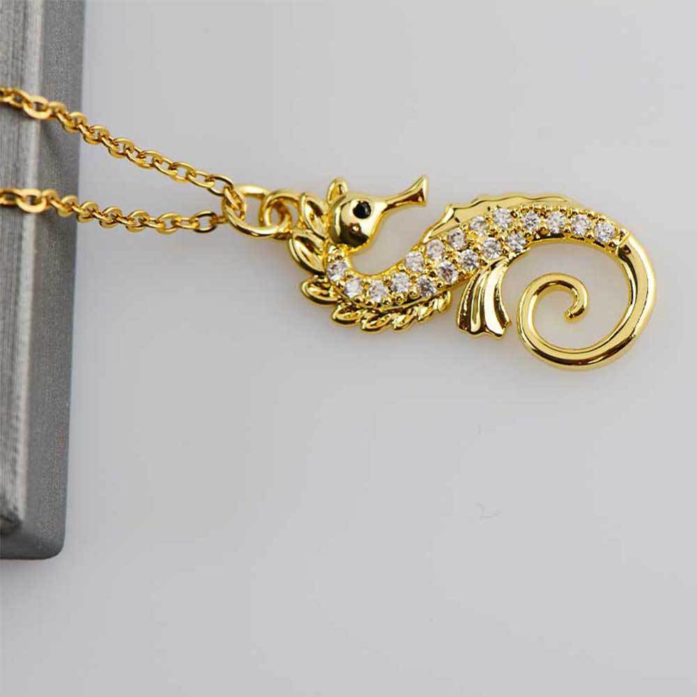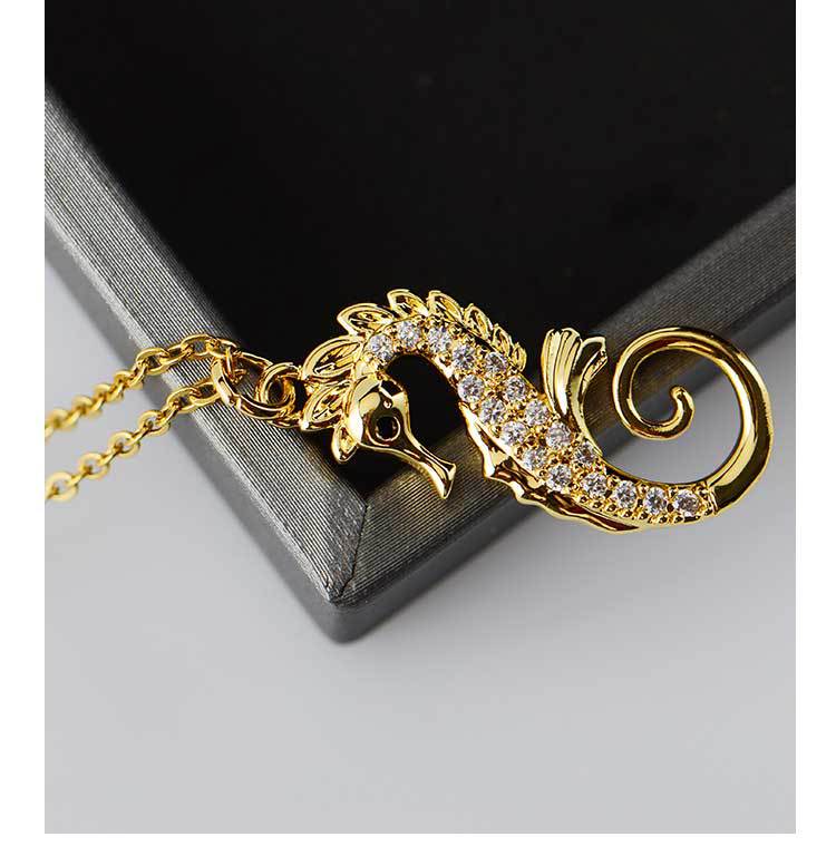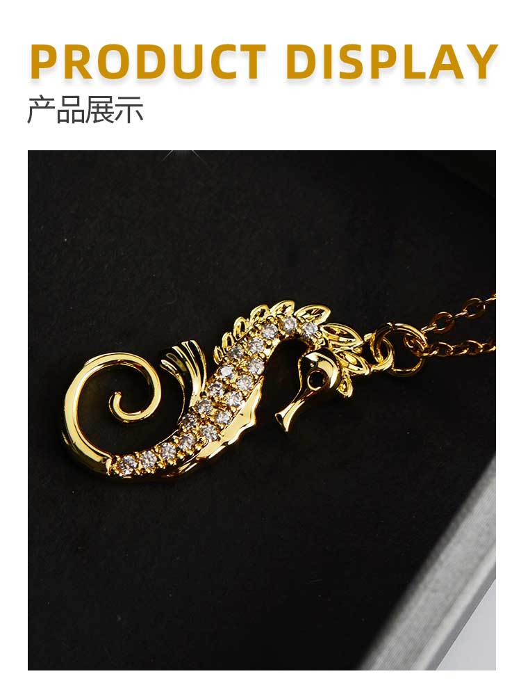 european and american affordable luxury fashion clavicle chain stainless steel necklace micro-inlaid copper pendant ocean series niche seahorse jewelry