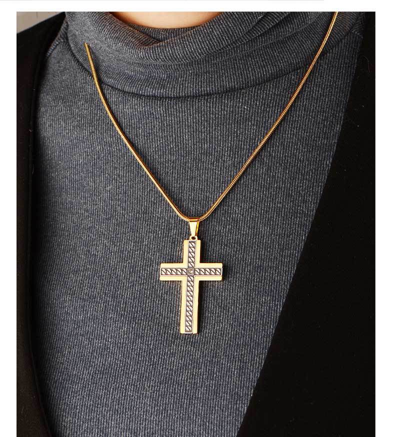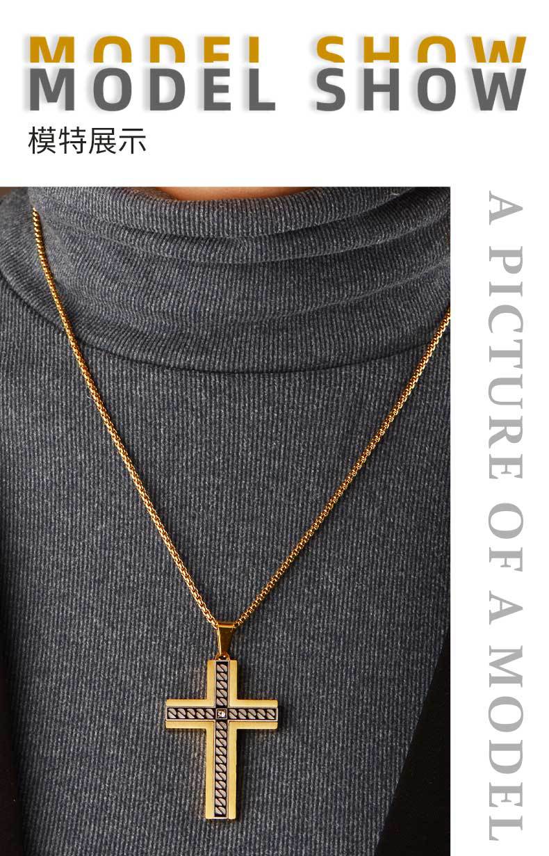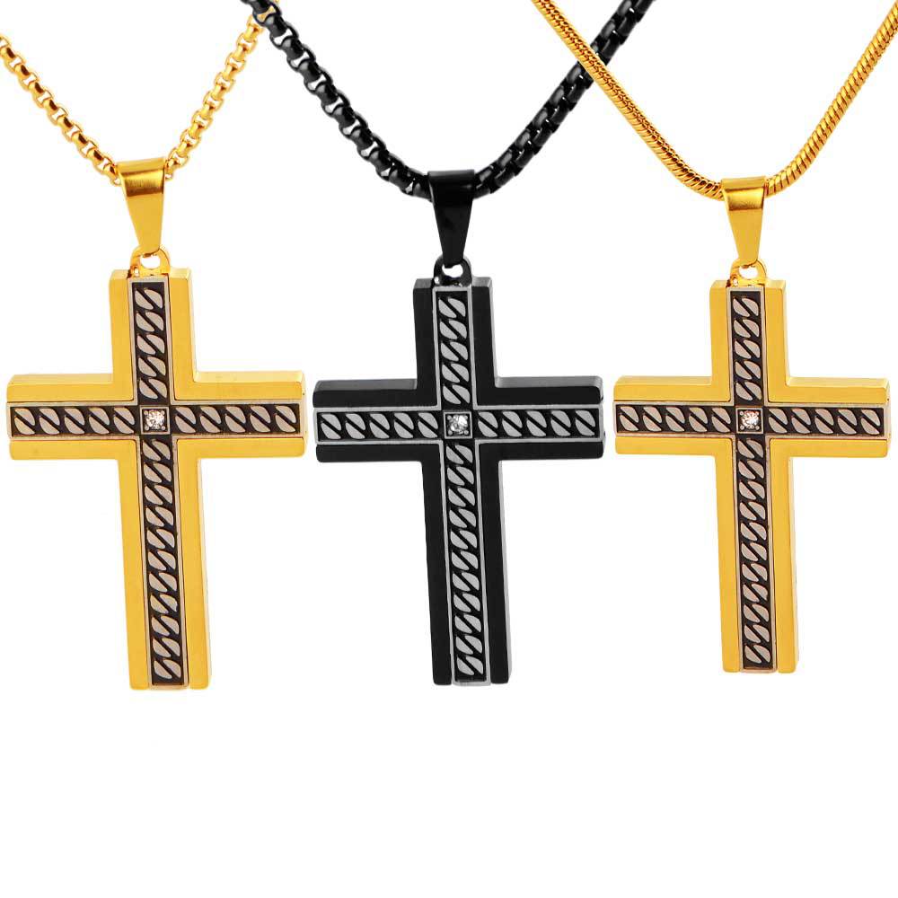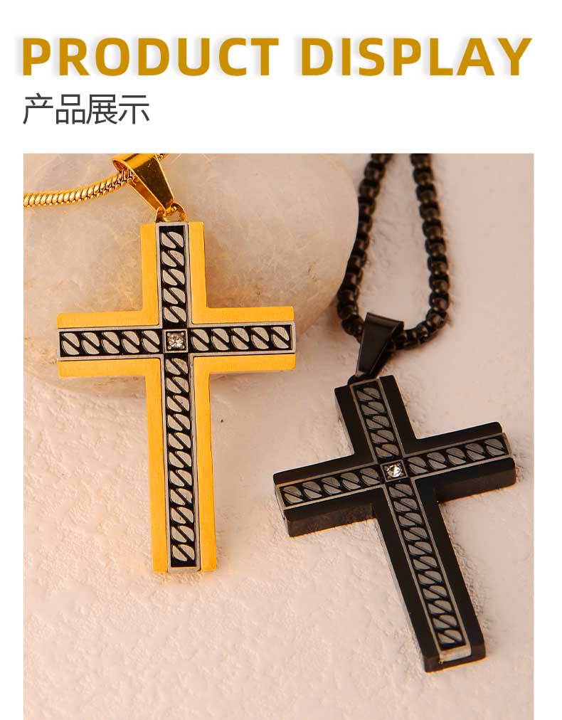european and american supply titanium steel accessories corrosion chain pattern cross pendant stainless steel three-dimensional bevel inlaid stone pendant