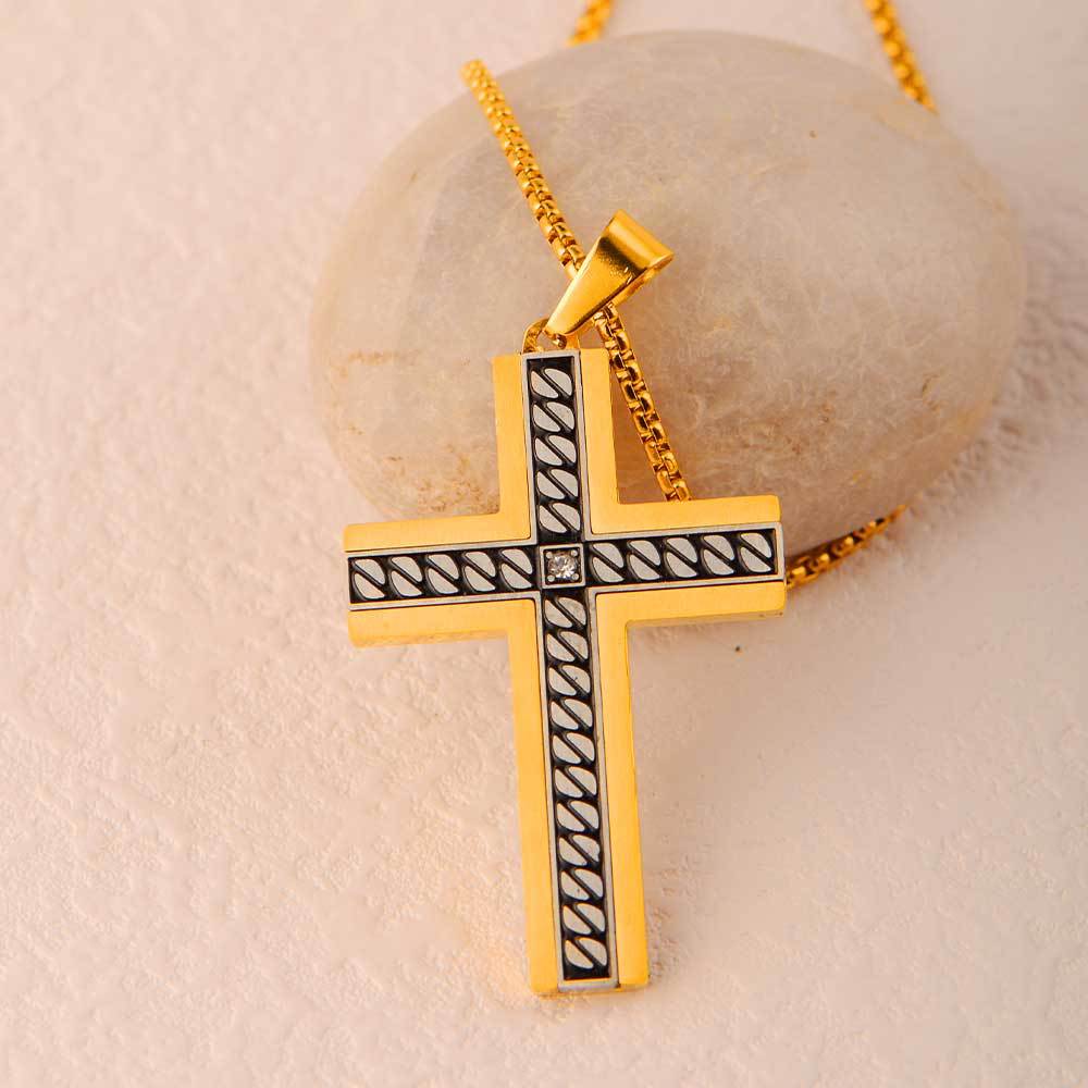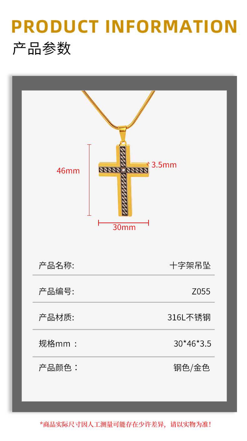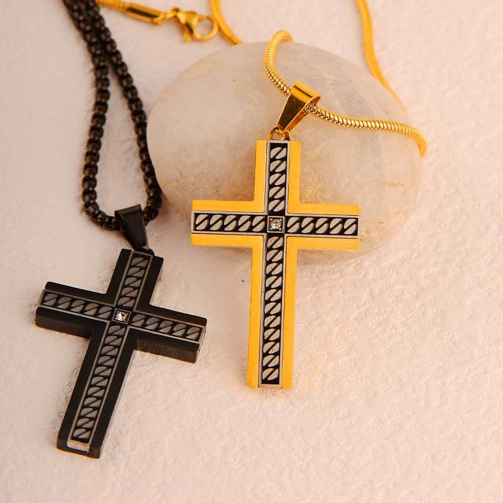 european and american supply titanium steel accessories corrosion chain pattern cross pendant stainless steel three-dimensional bevel inlaid stone pendant