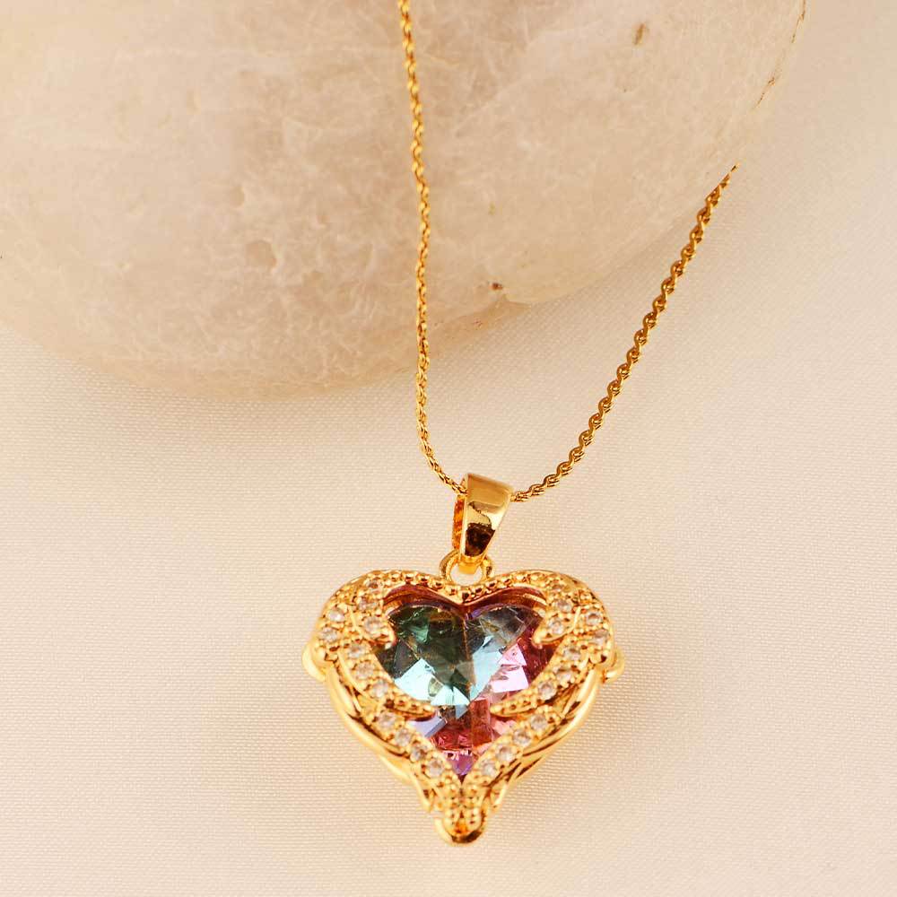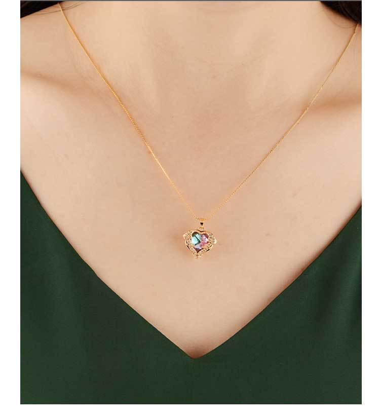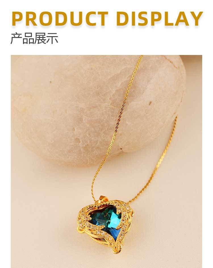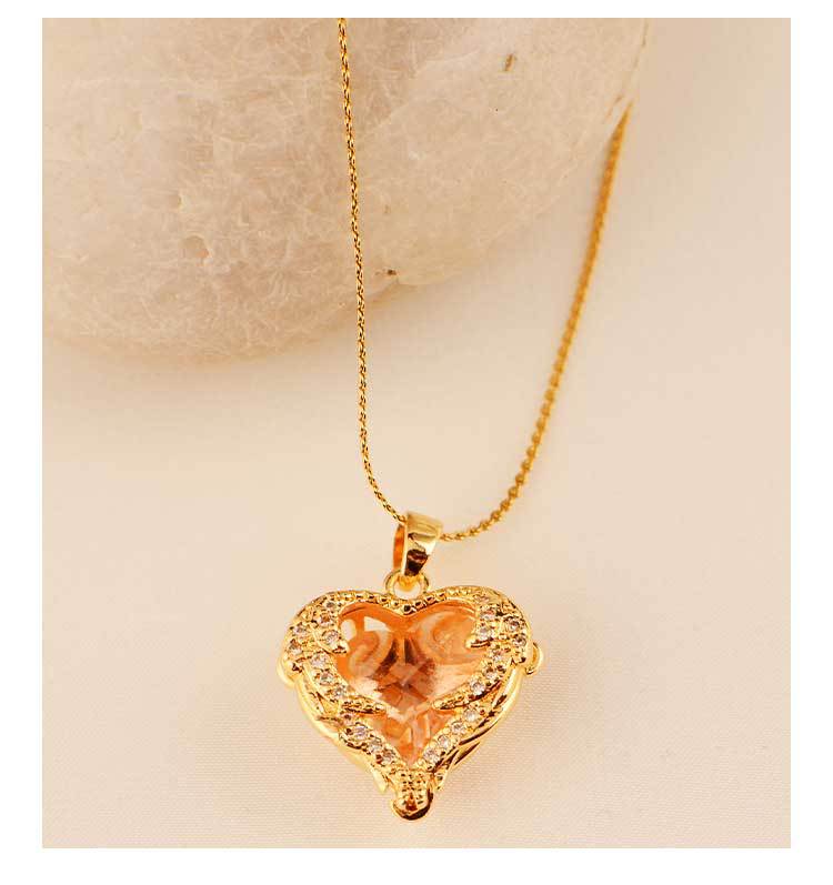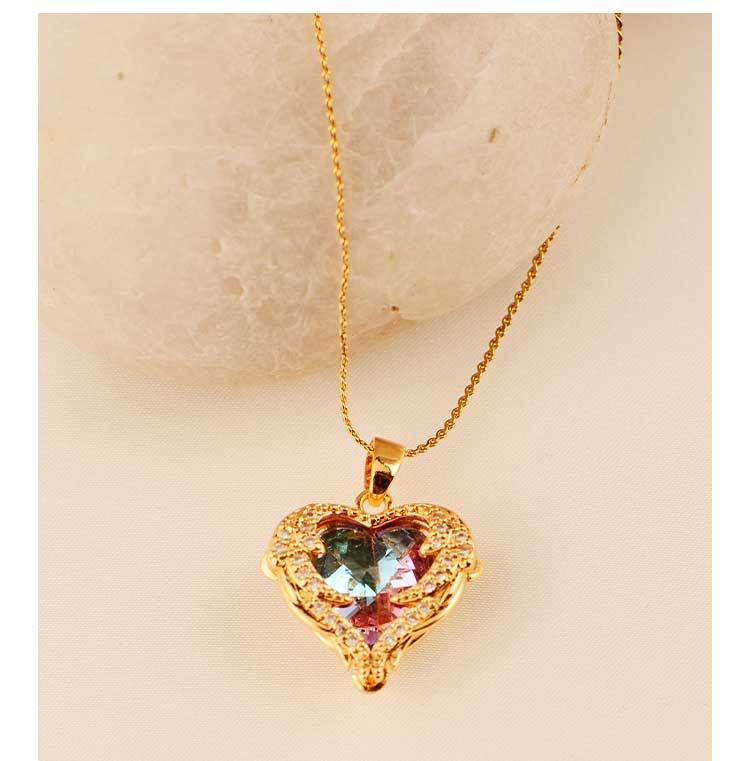ocean heart color crystal pendant women's high-grade clavicle chain peach-shaped love copper inlaid zircon classic style necklace