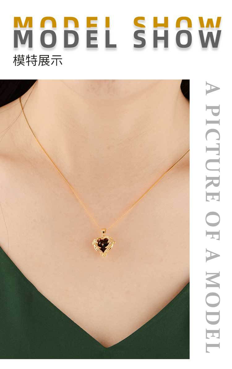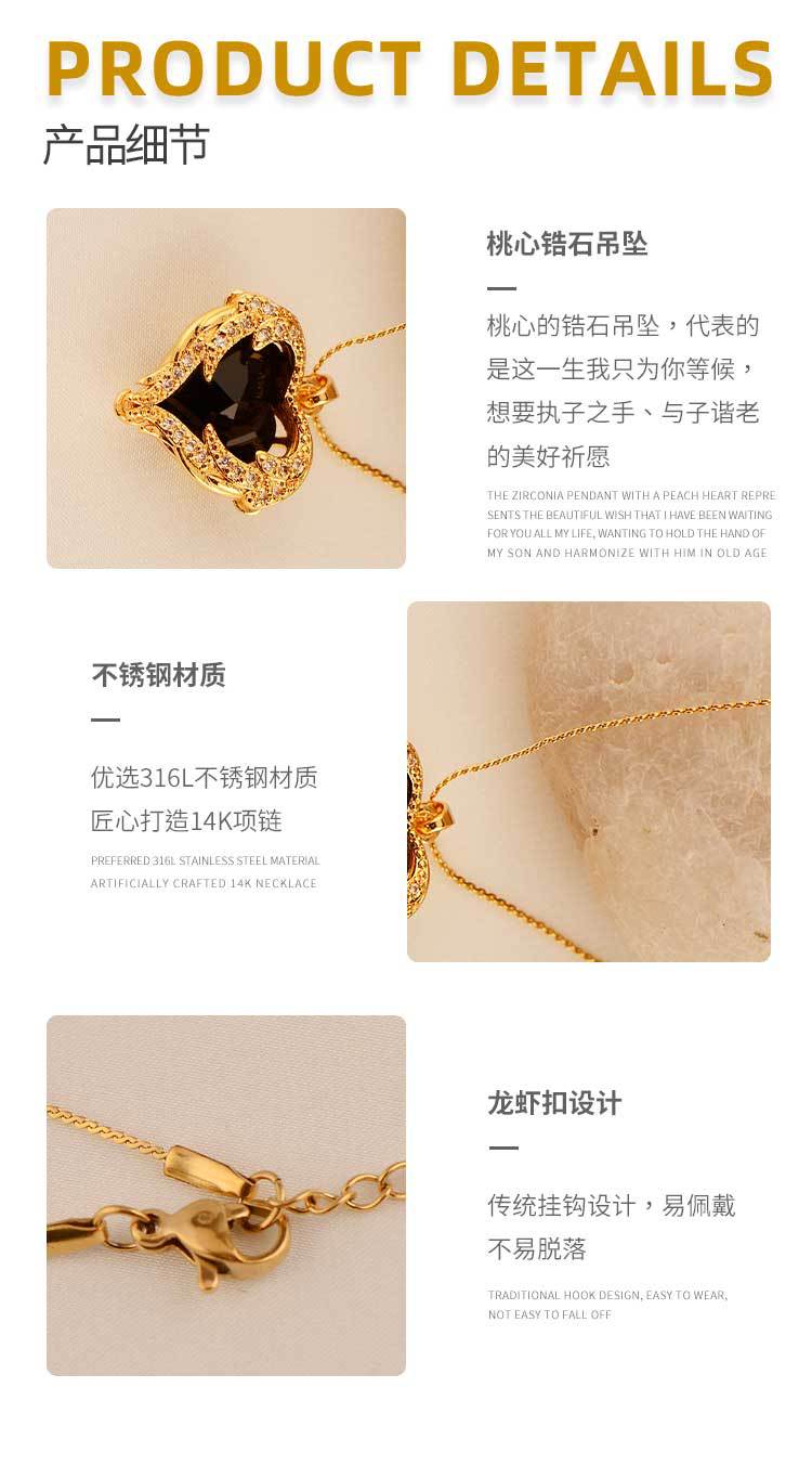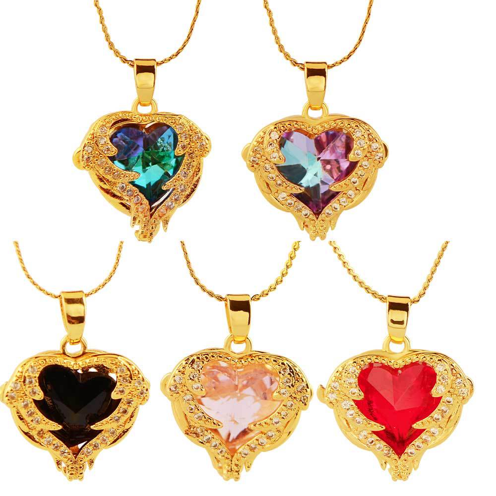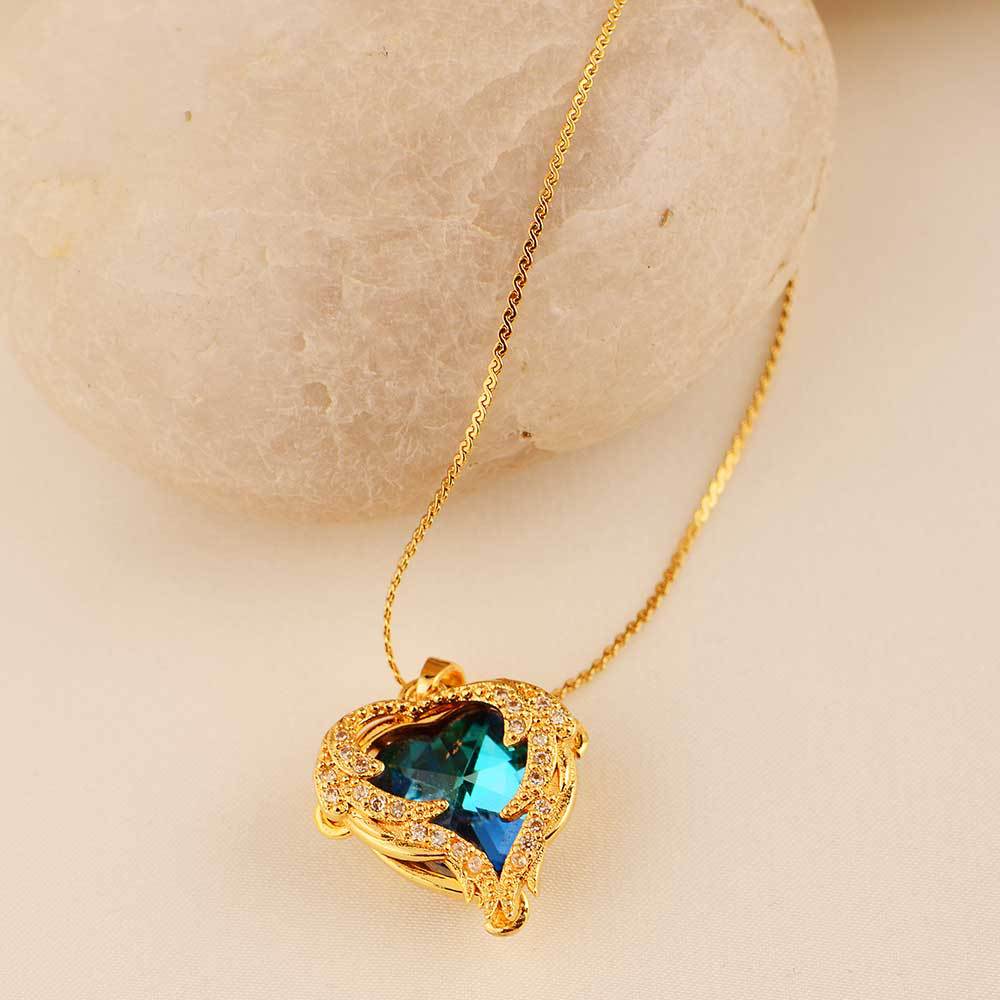 ocean heart color crystal pendant women's high-grade clavicle chain peach-shaped love copper inlaid zircon classic style necklace