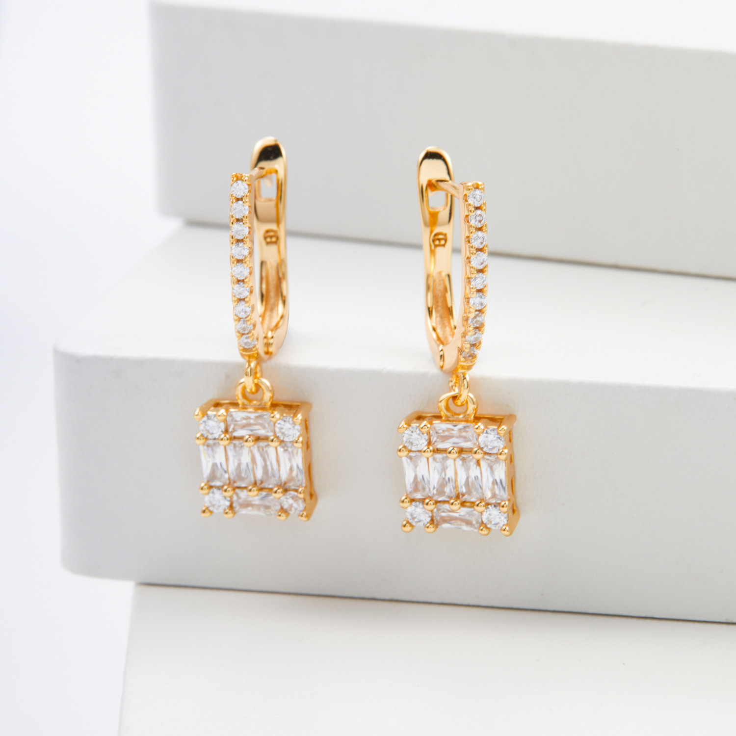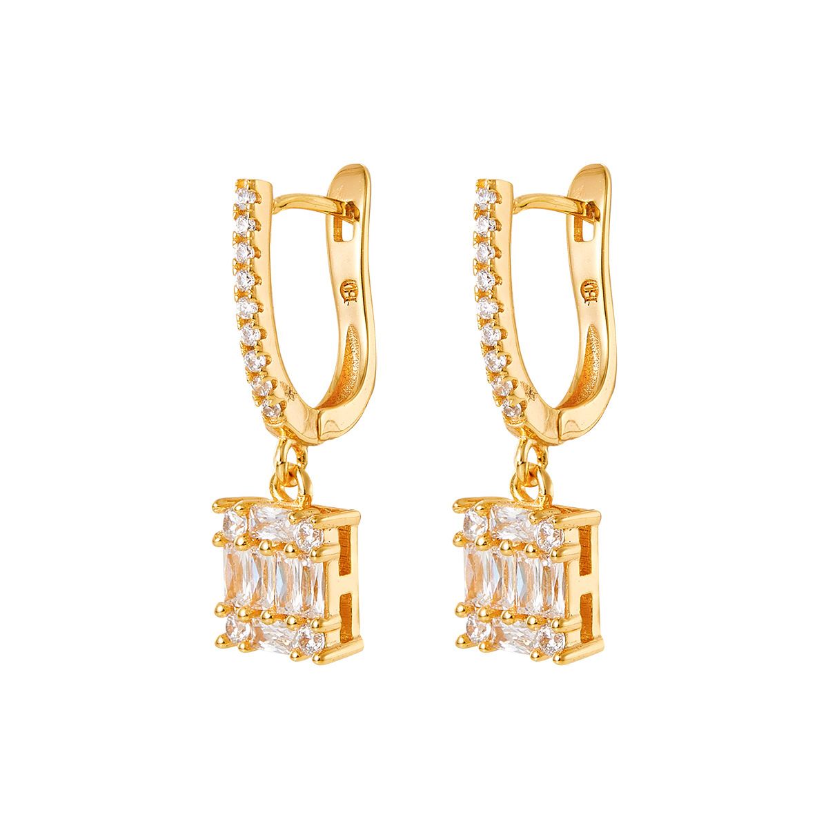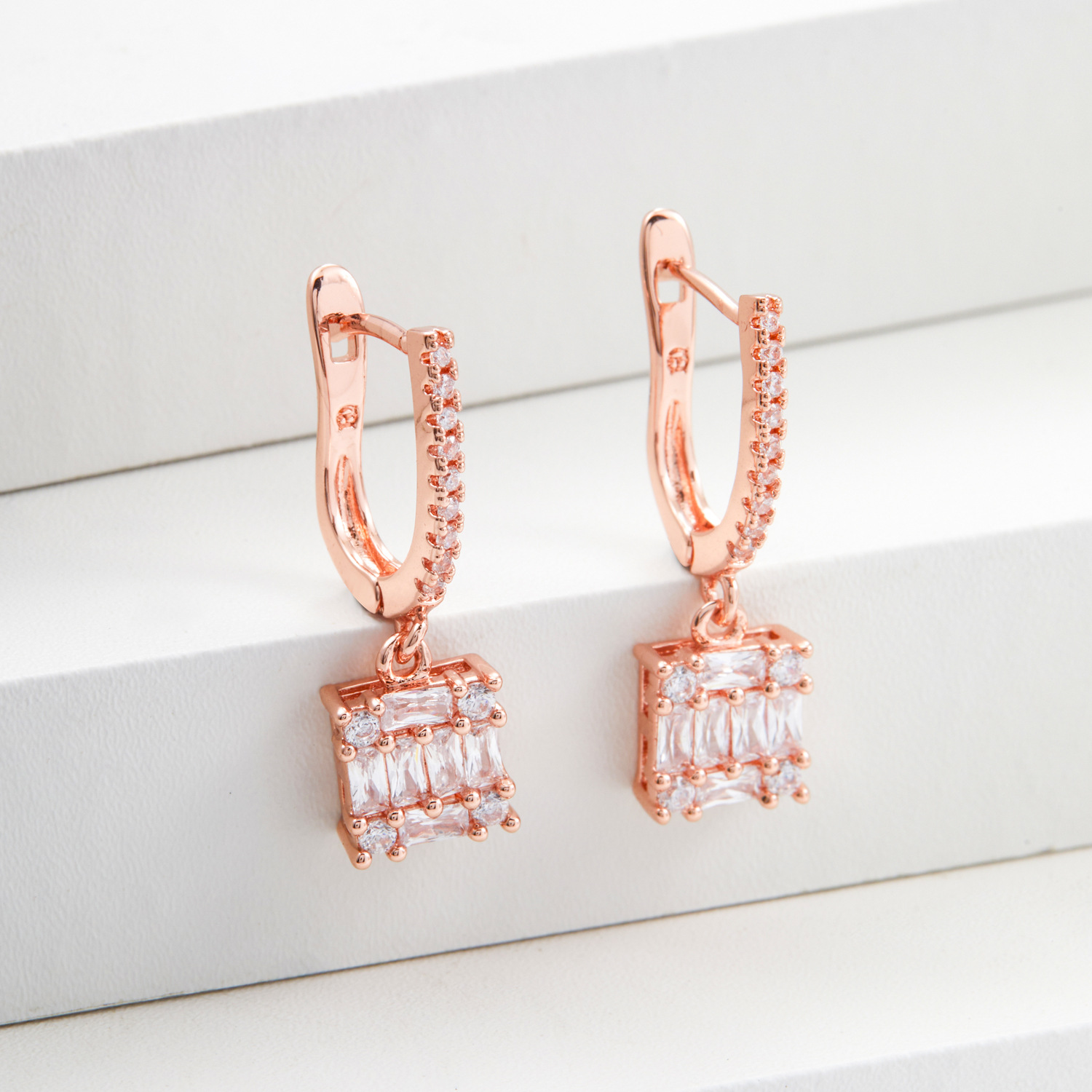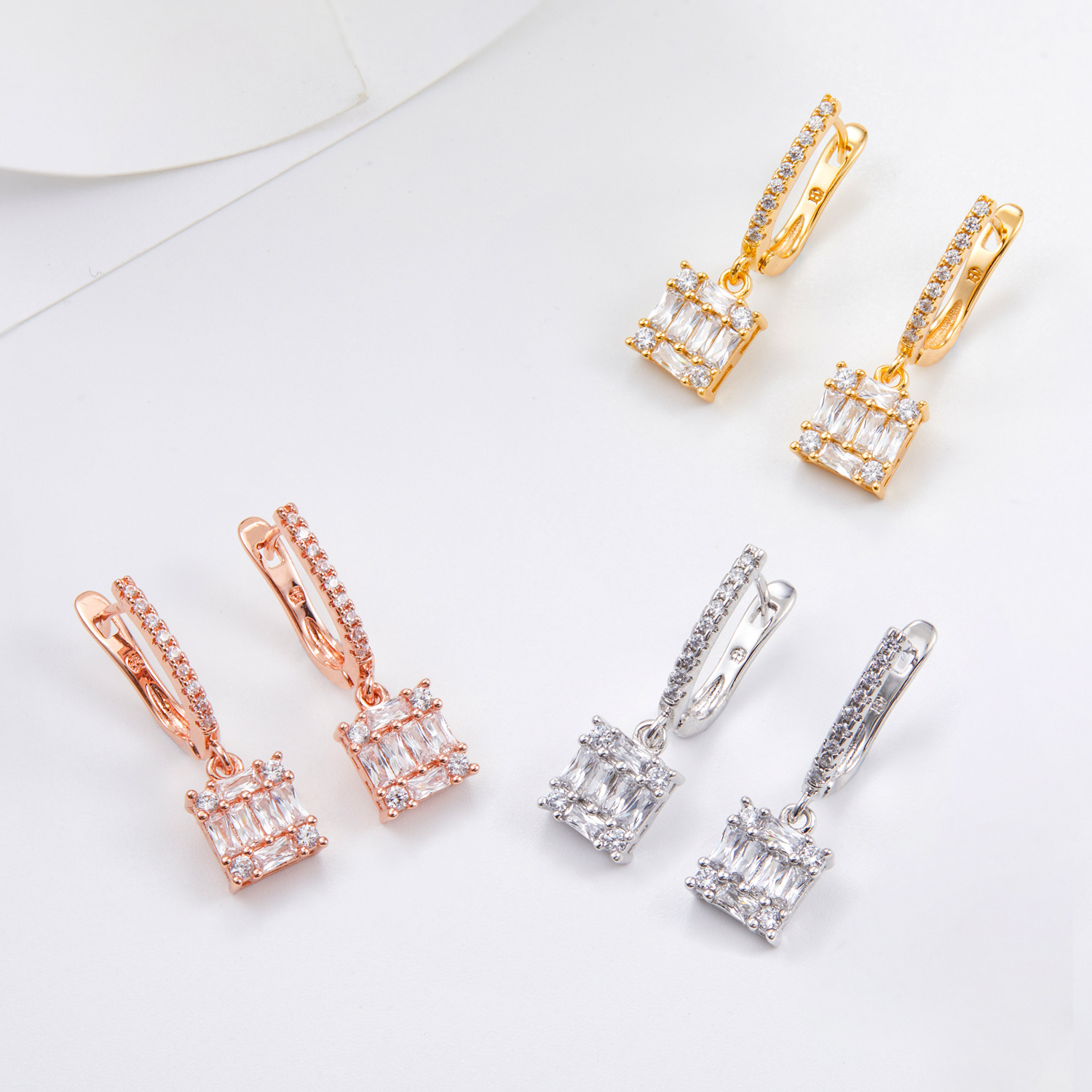 multi-color square jeweled earrings ring diamond matching square main diamond exquisite shining entry lux elegant temperament dinner party