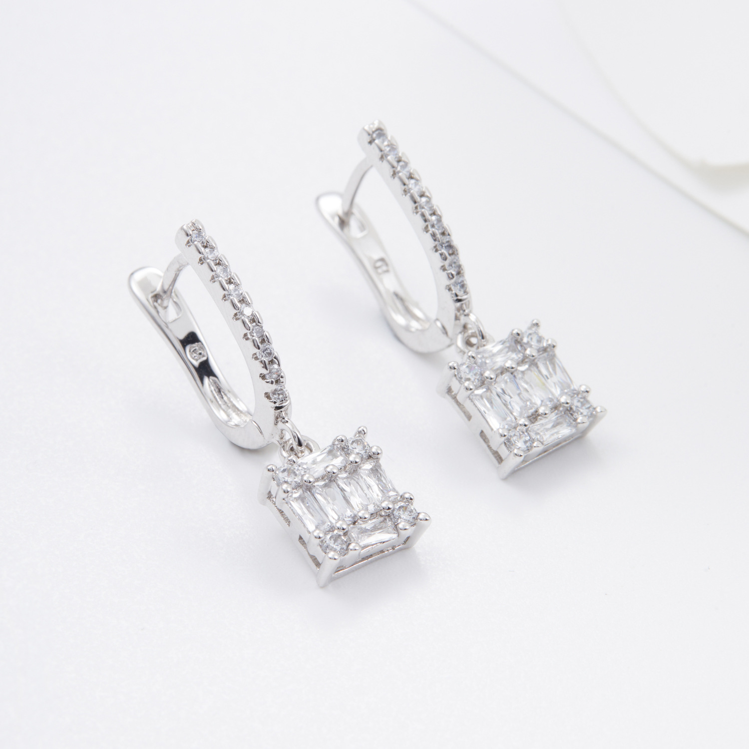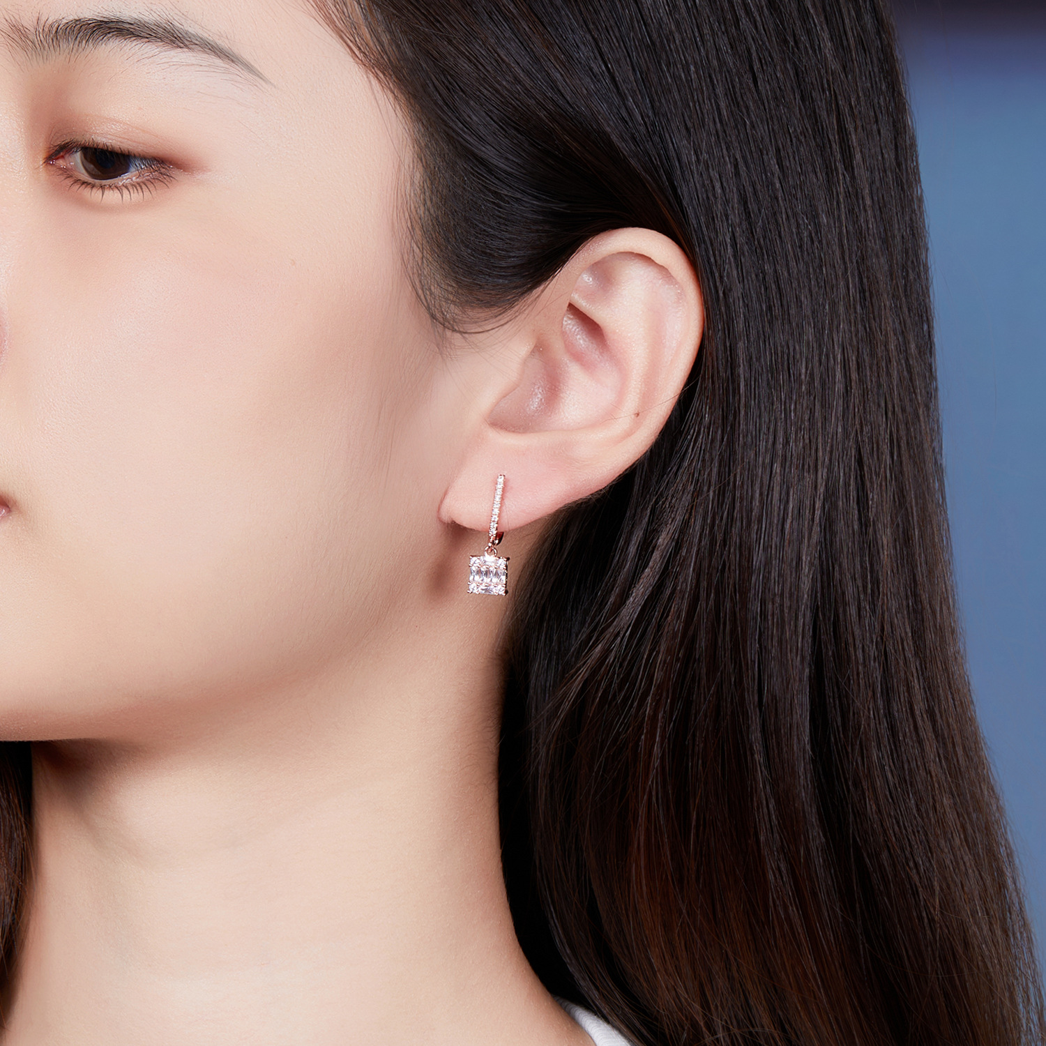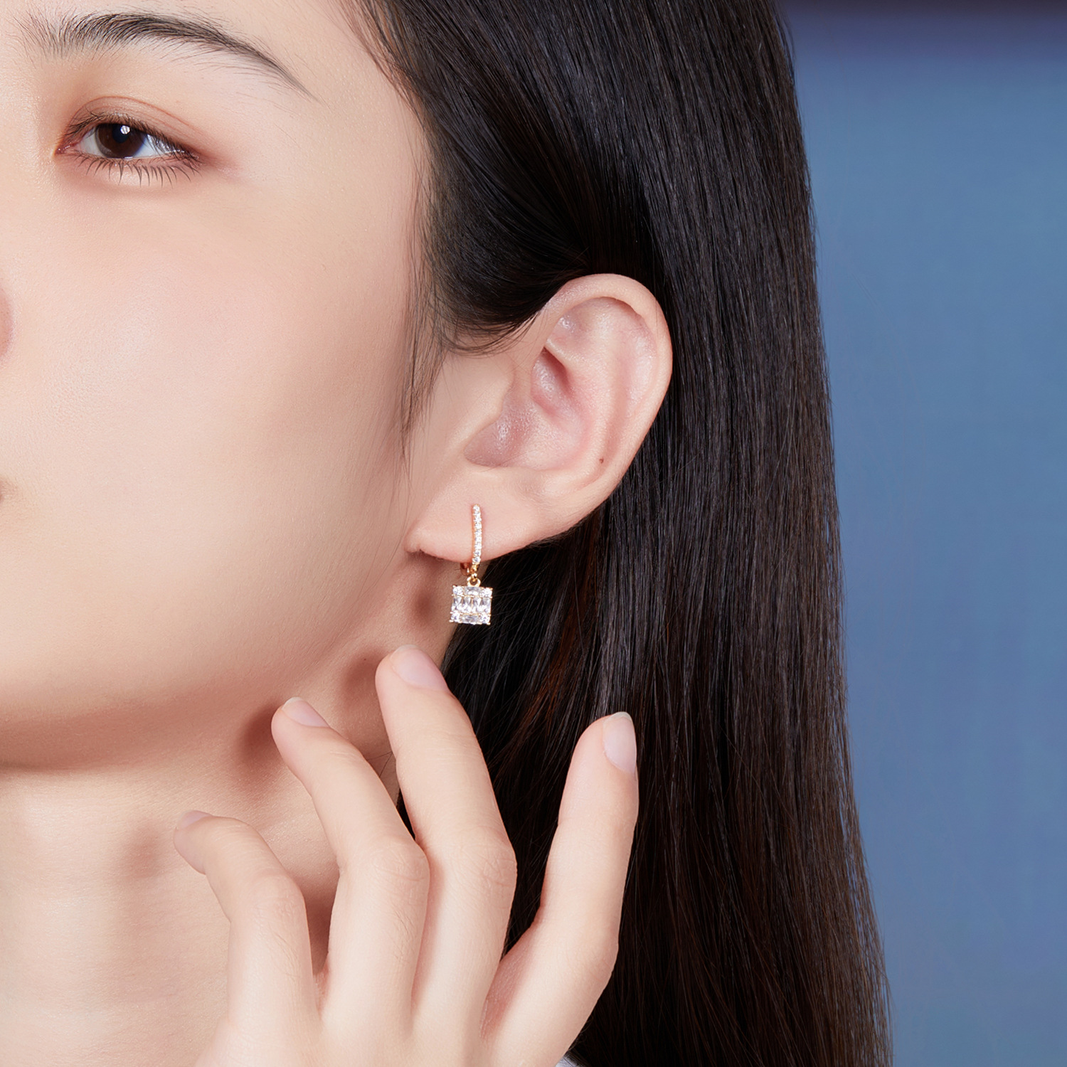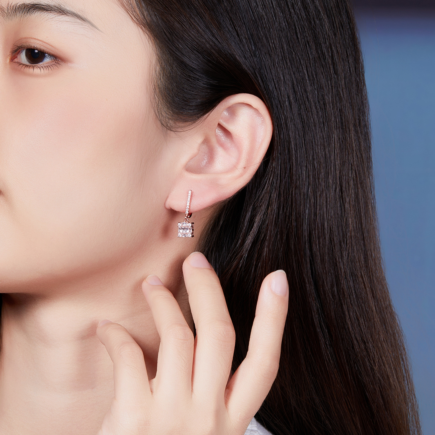 multi-color square jeweled earrings ring diamond matching square main diamond exquisite shining entry lux elegant temperament dinner party