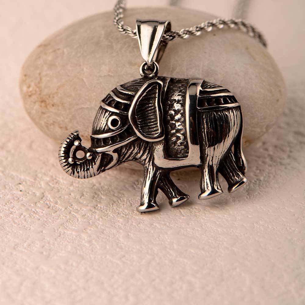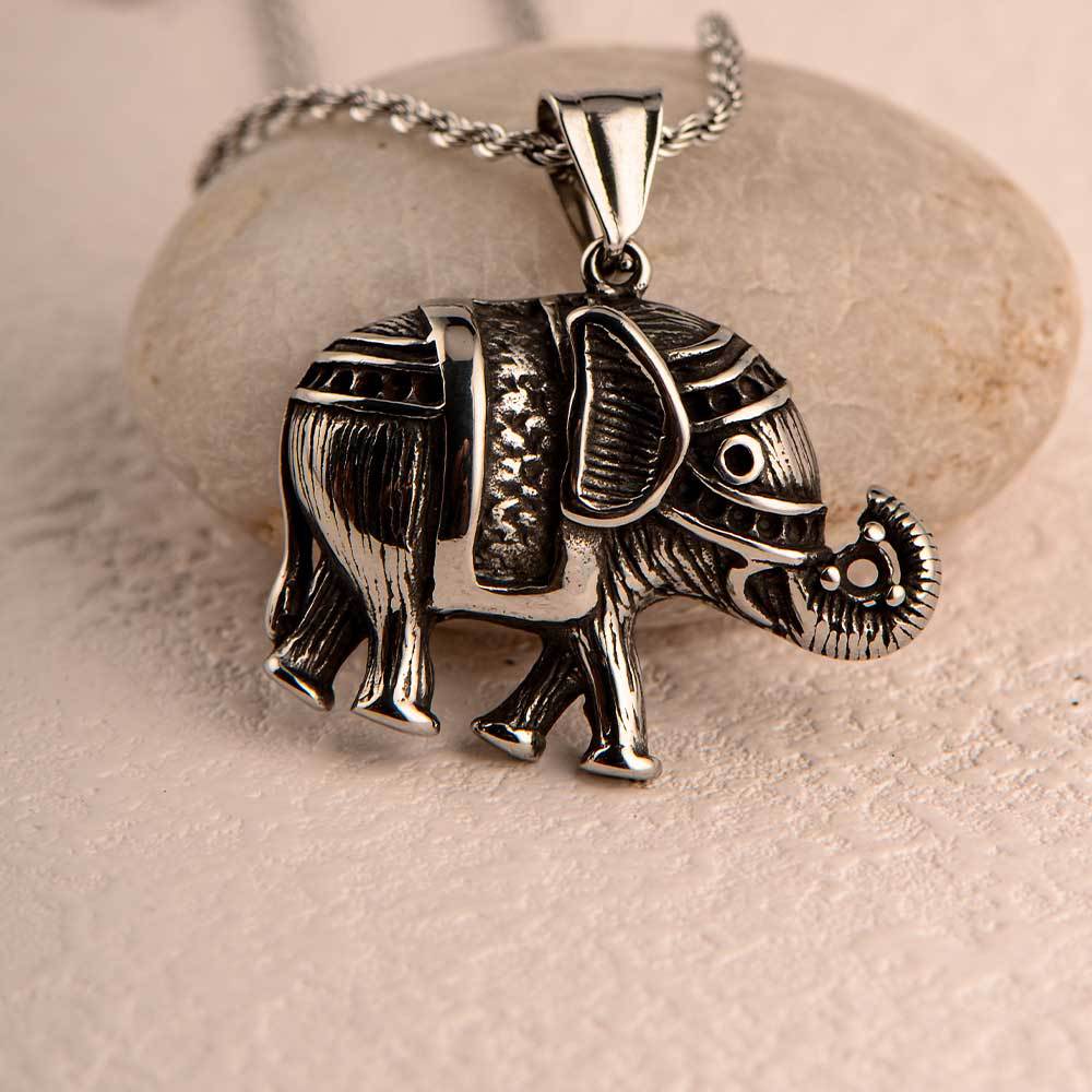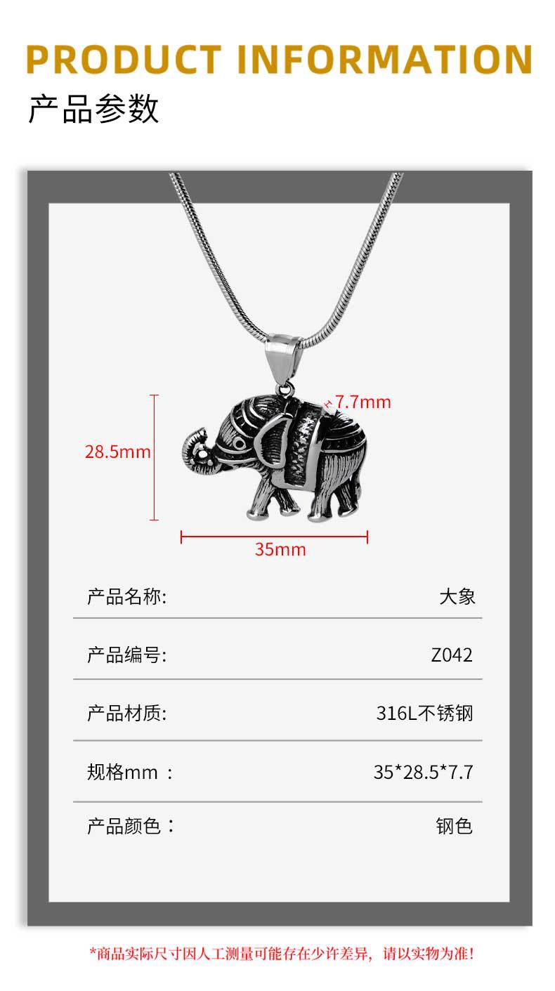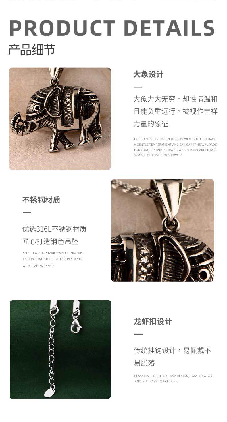 titanium steel casting elephant diamond men's pendant european and american ins retro fashion hip hop auspicious animal personality pendant