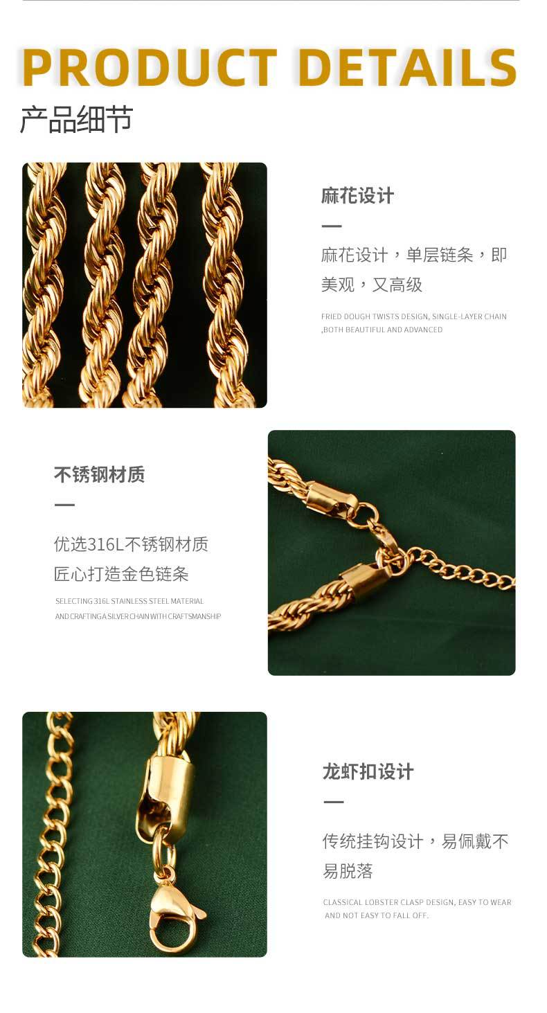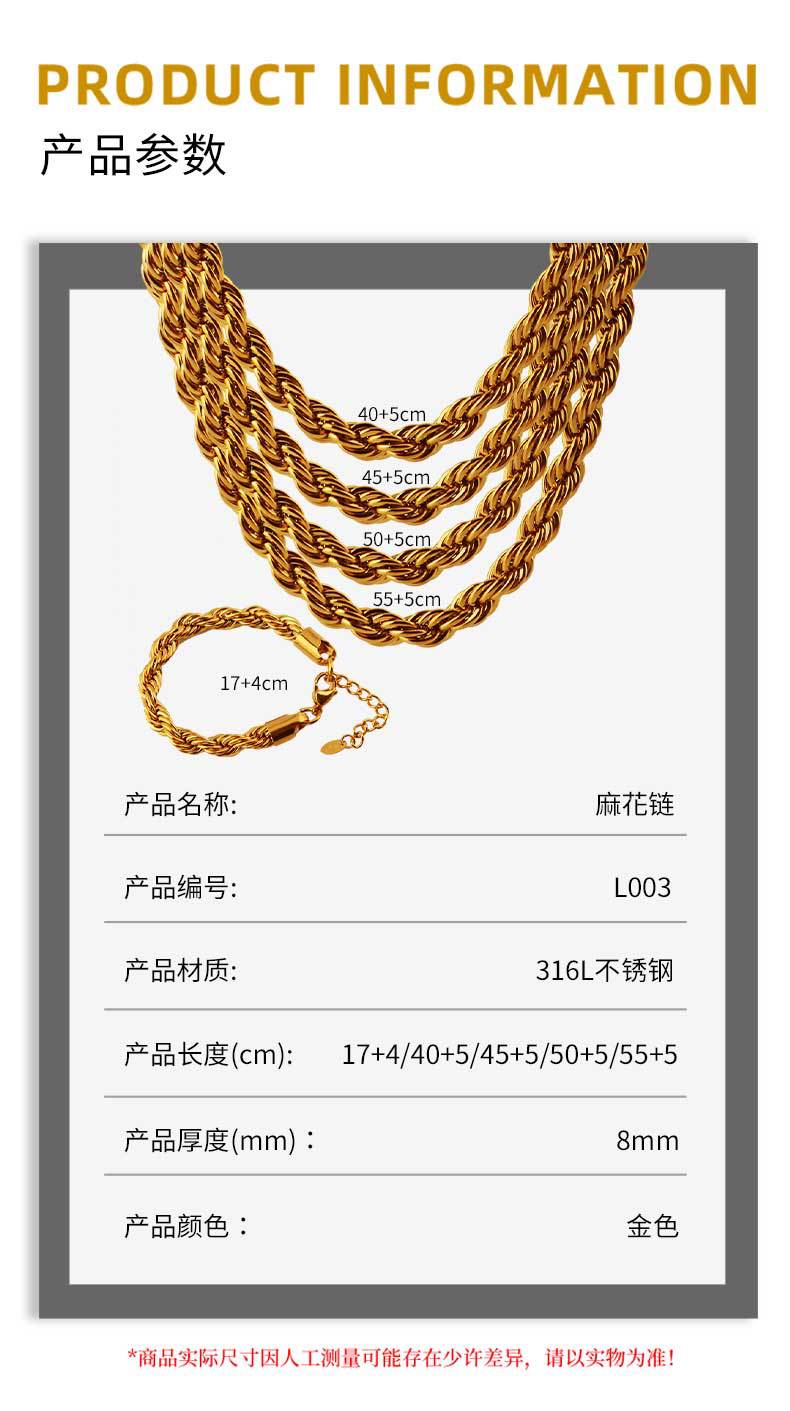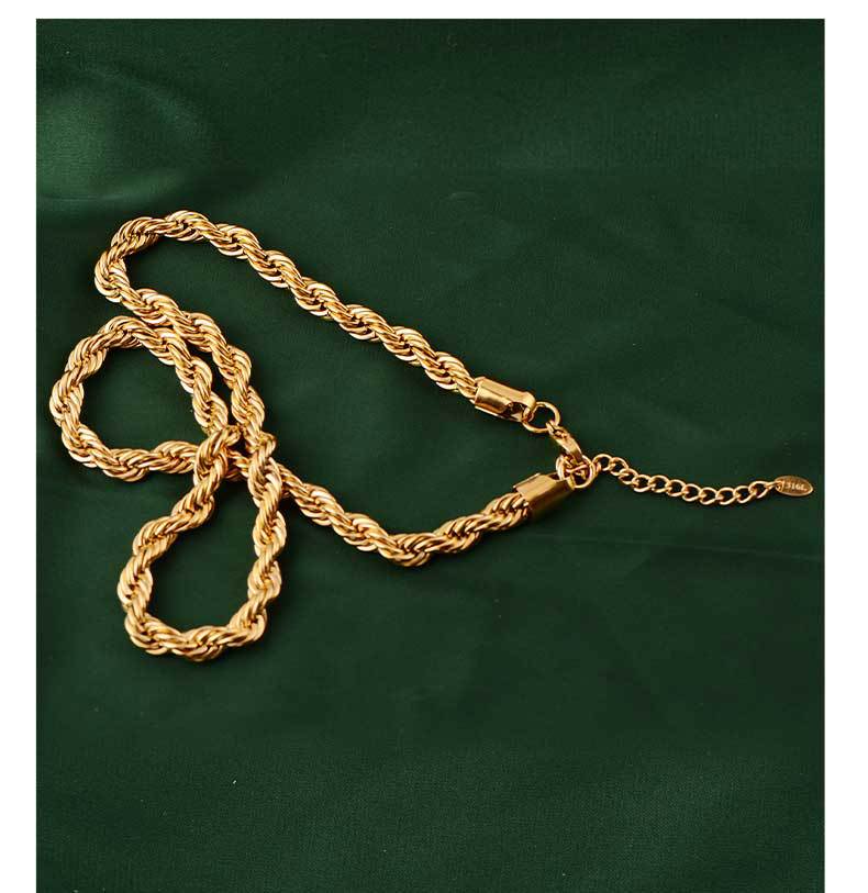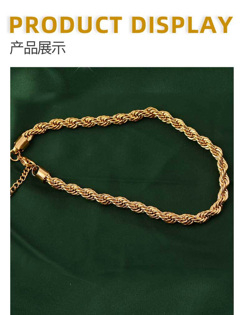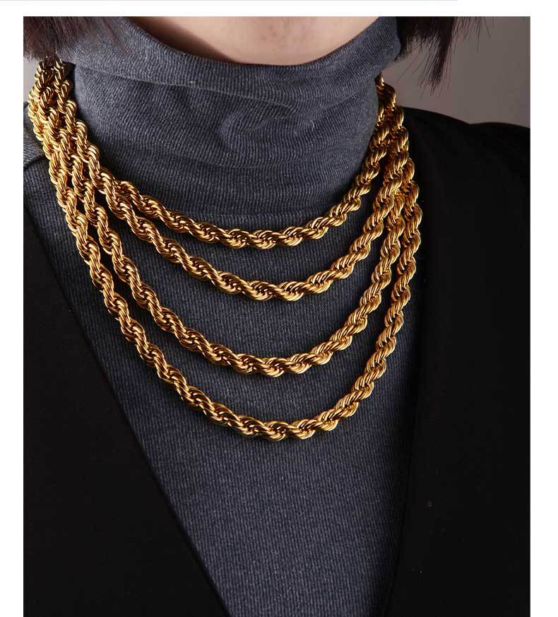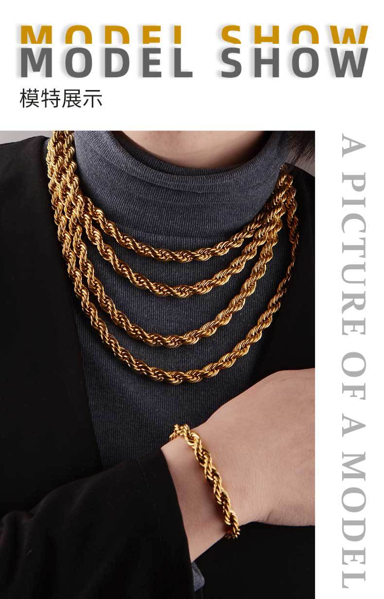 8mm simple hip hop stainless steel titanium steel twisted string chain hemp flowers chain trendy men's and women's choker bracelet necklace hiphop