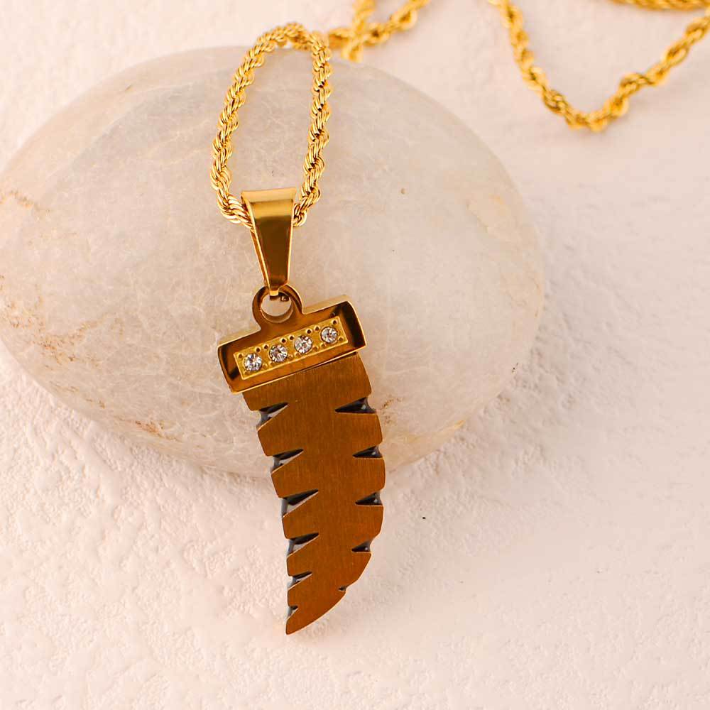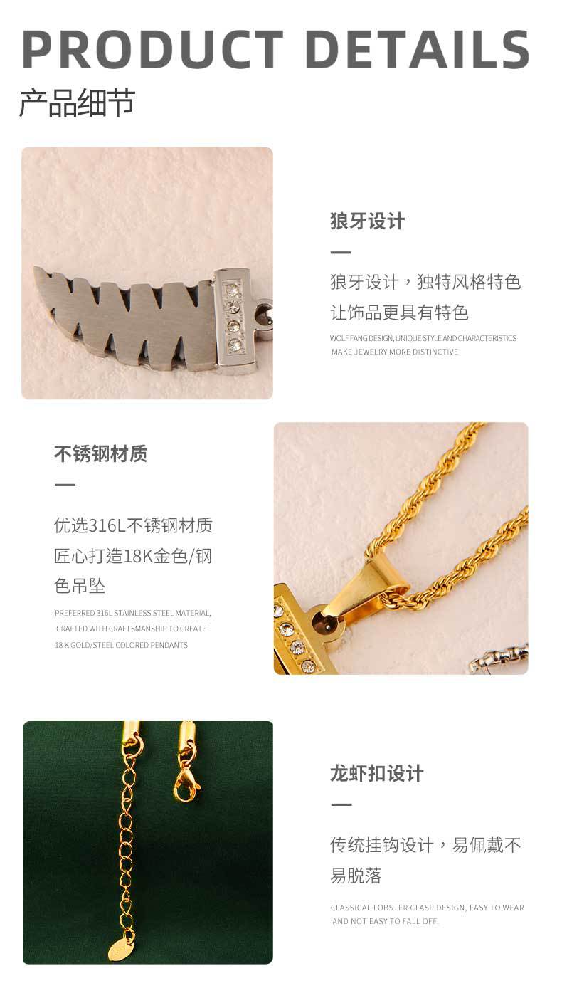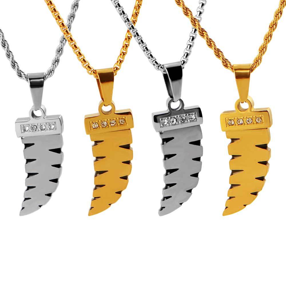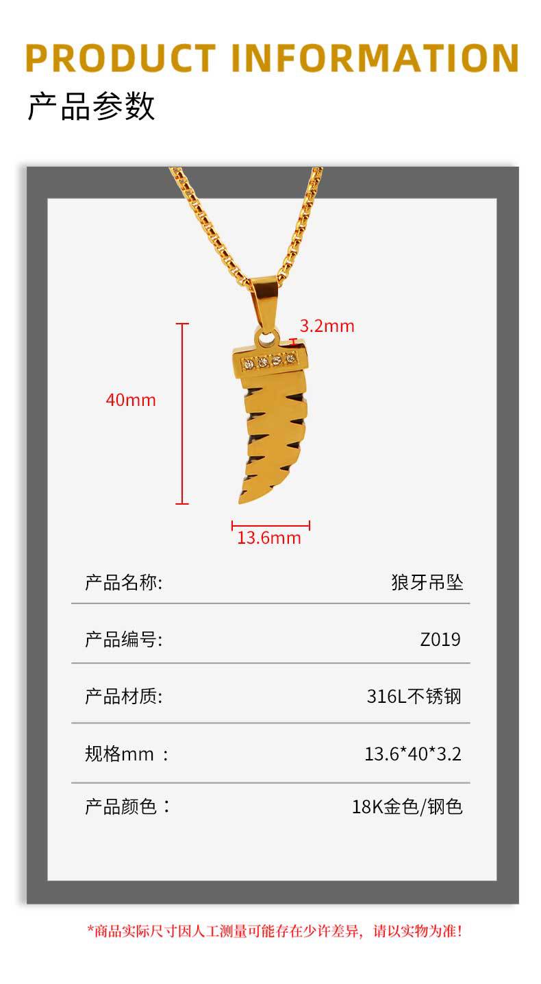 street fashion men's and women's hip hop ornament stainless steel gold-plated wolf tooth pendant diamond-embedded high-grade pendant does not fade