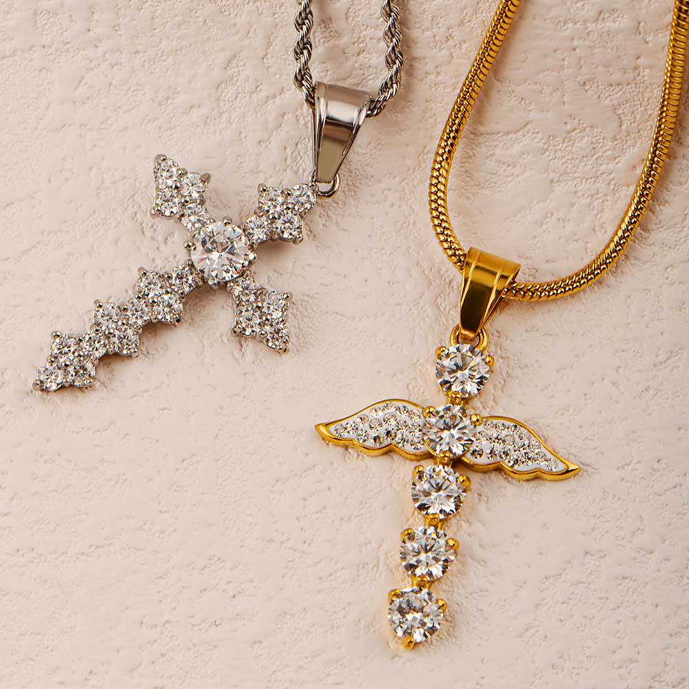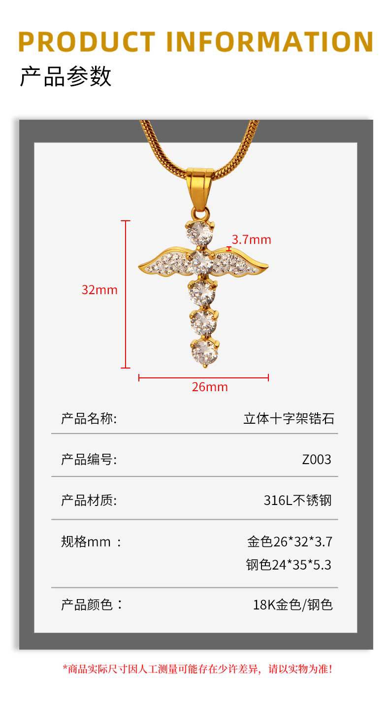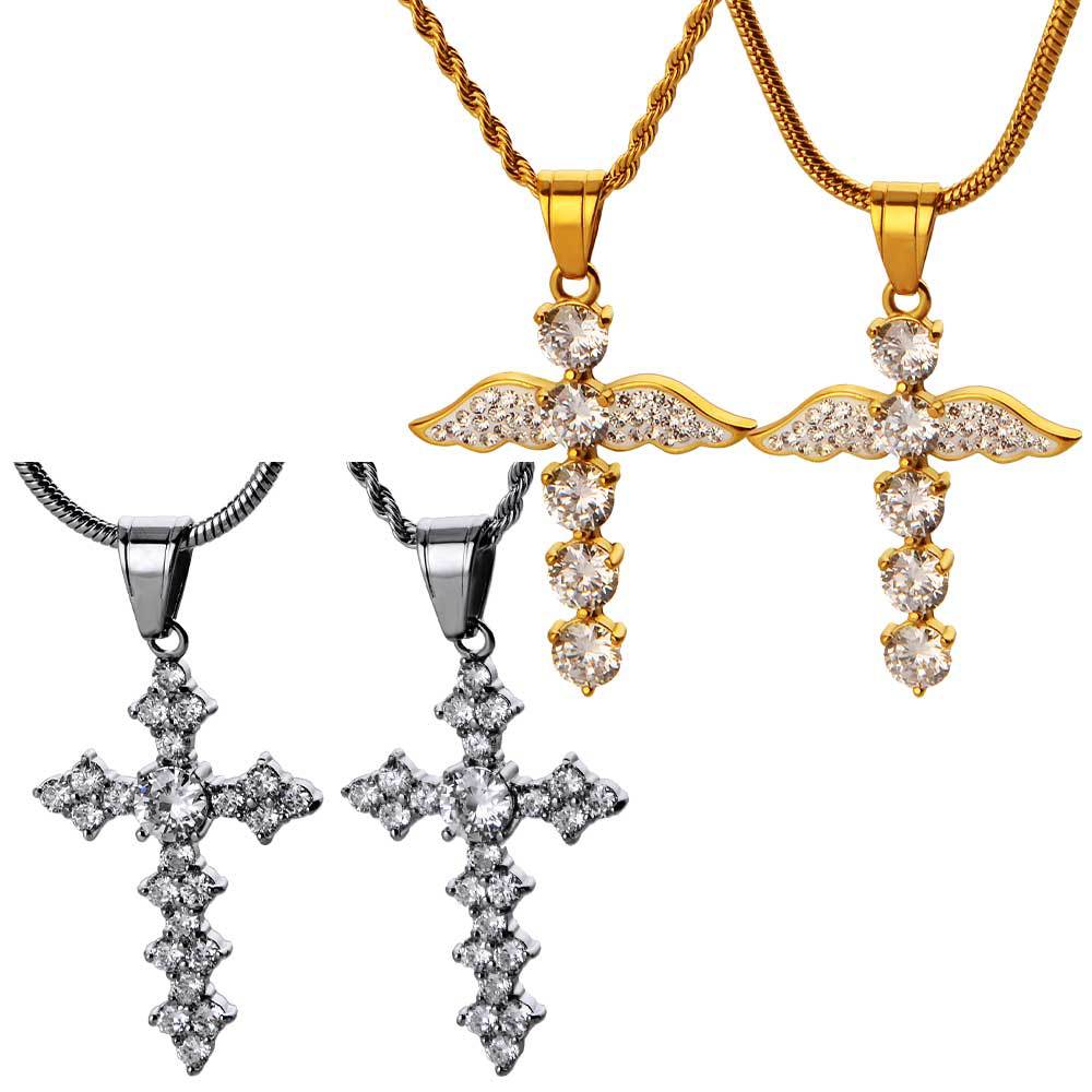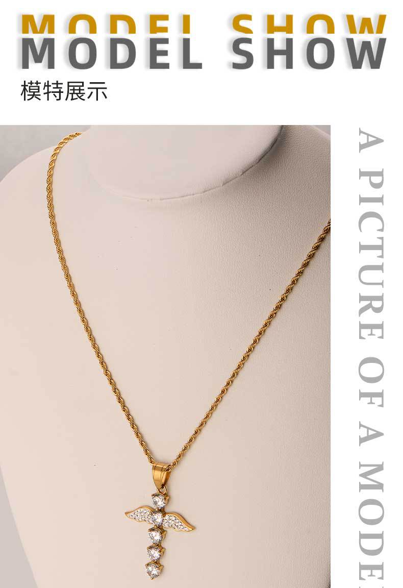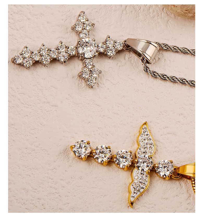 fashion men and women unisex style pendant angel wings cross diamond titanium steel pendant hip hop couple ornament