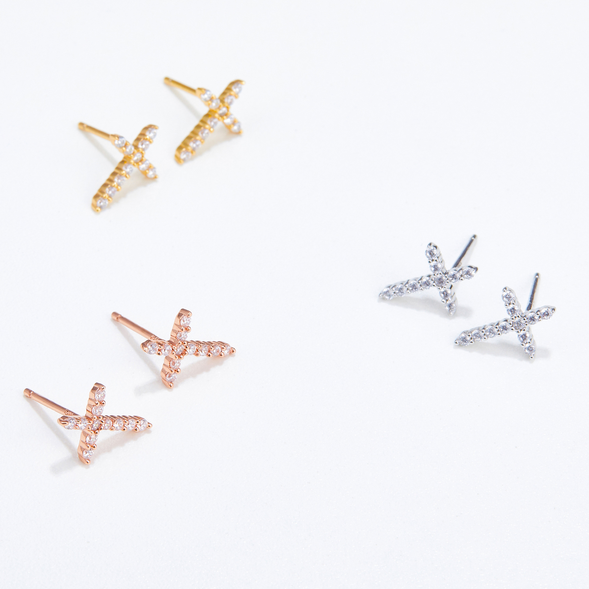cross stud earrings ear bone stud high street fashionable hip hop style yabi style fashionable all-match flashing bright multi-color