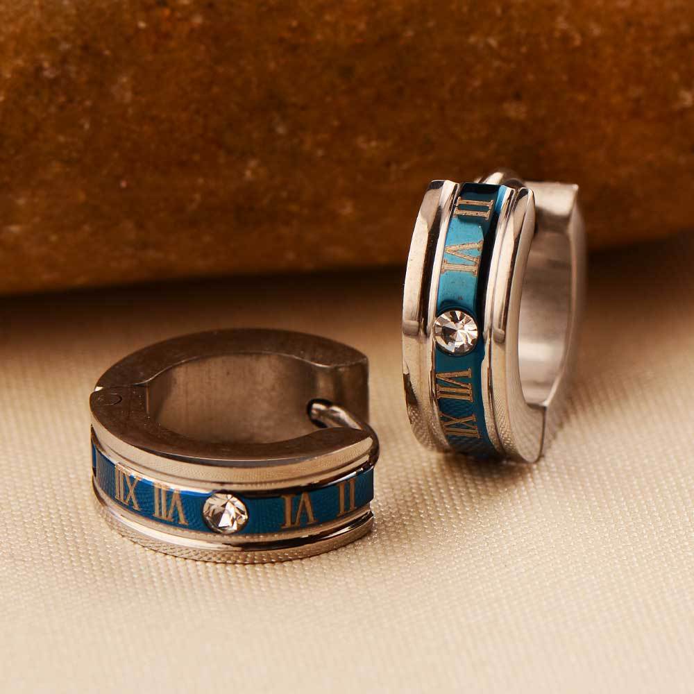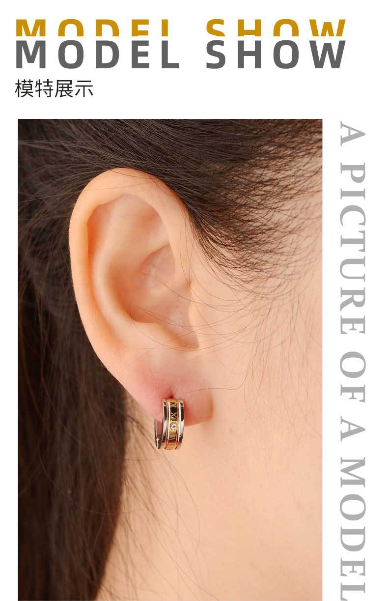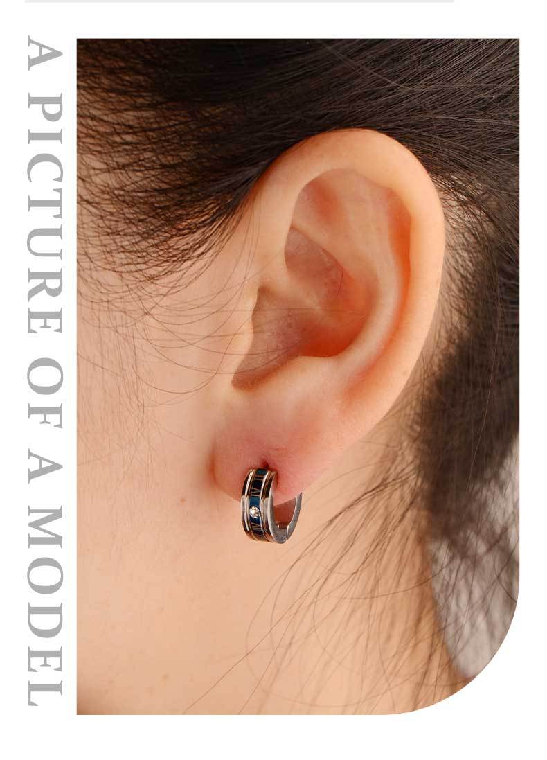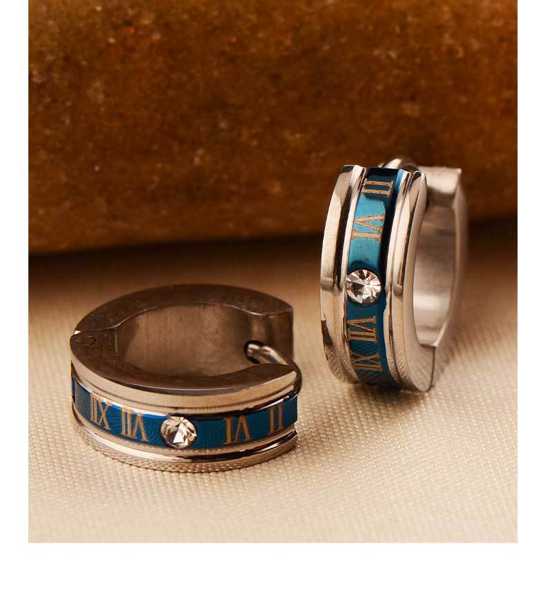 personality punk unisex ear clip 316 stainless steel earrings roman numerals blue golden earrings non-fading
