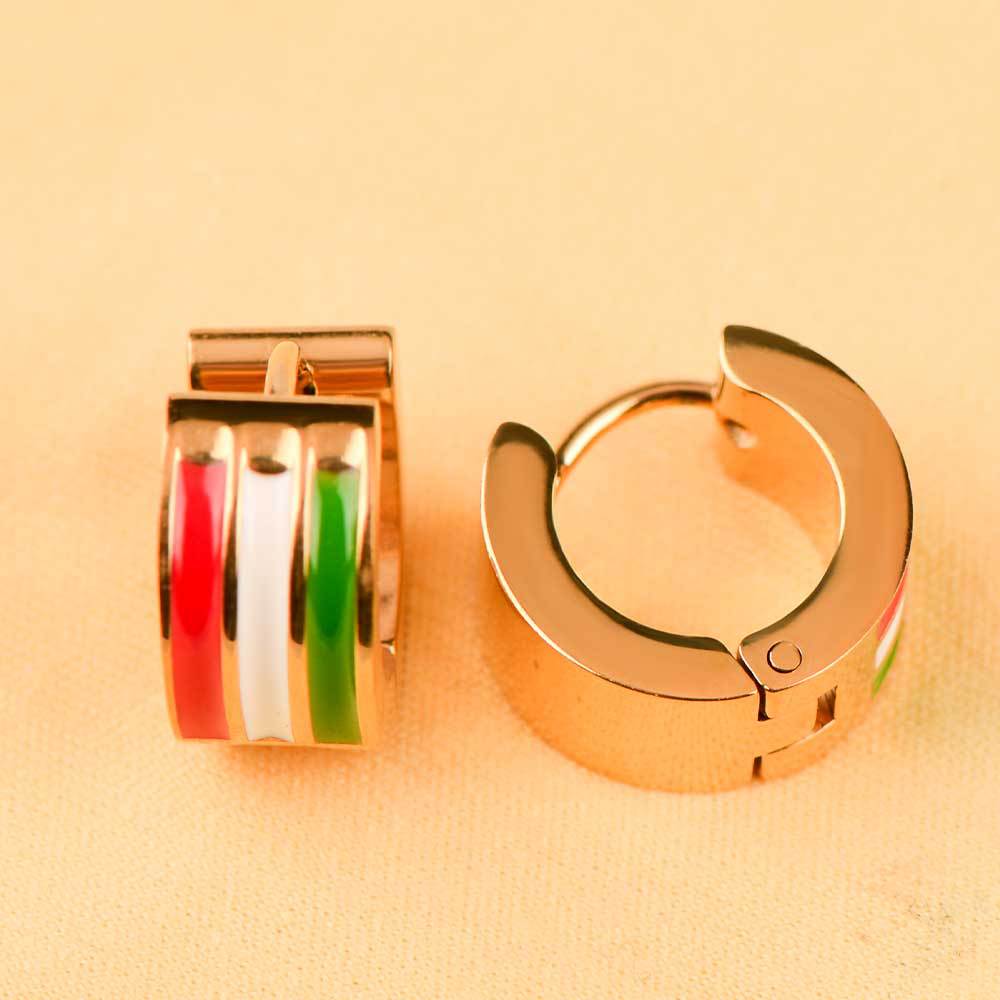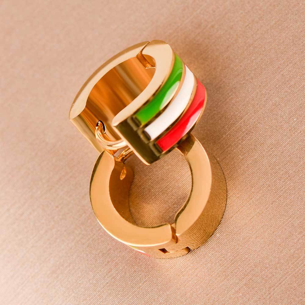 classic retro niche men and women neutral ear clip red white green three colors enamel earrings round earrings wide version ear rings