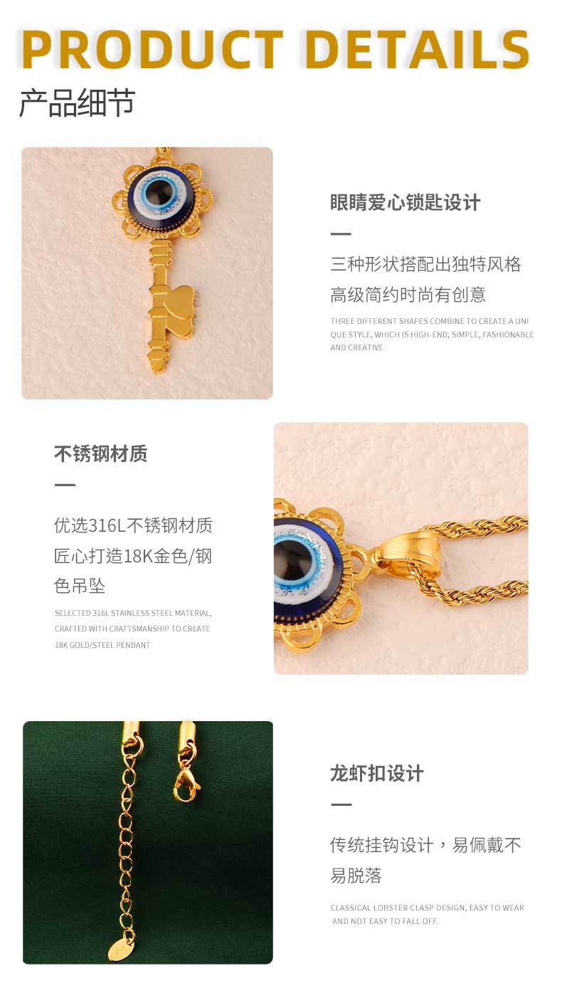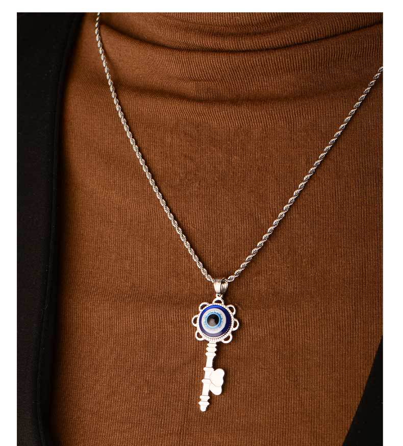 fashion best-seller hip hop versatile titanium steel key god's eye pendant personality men's and women's casual couple pendant