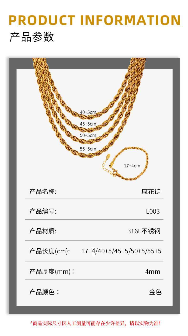 l003 gold: width 8mm * 40cm + 5cm extension chain + tail plate