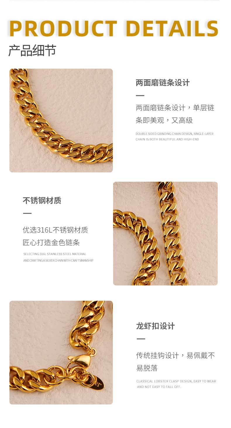 l003 gold: width 8mm * 17cm + 4cm extension chain + tail plate