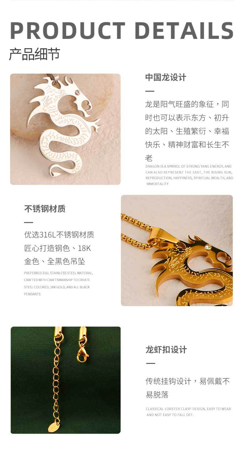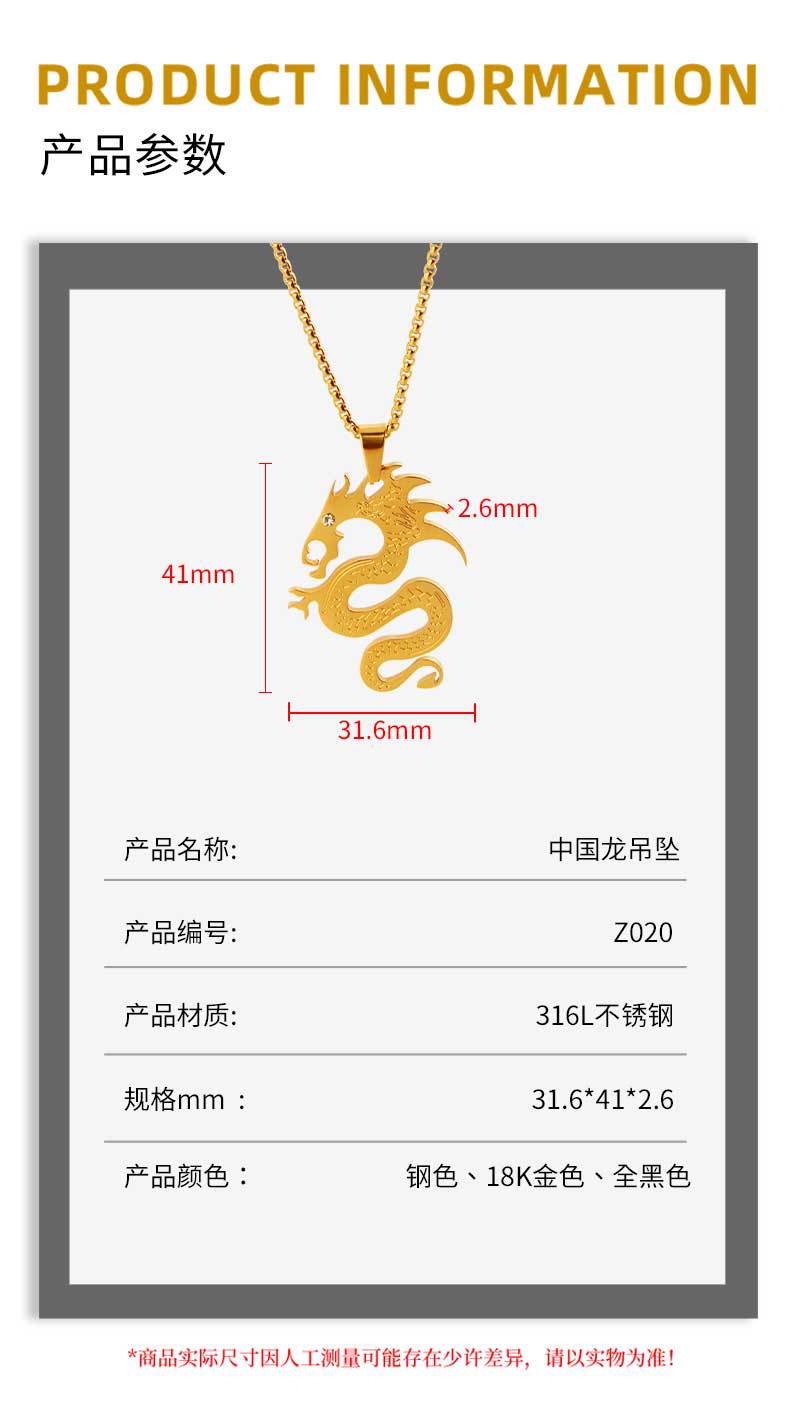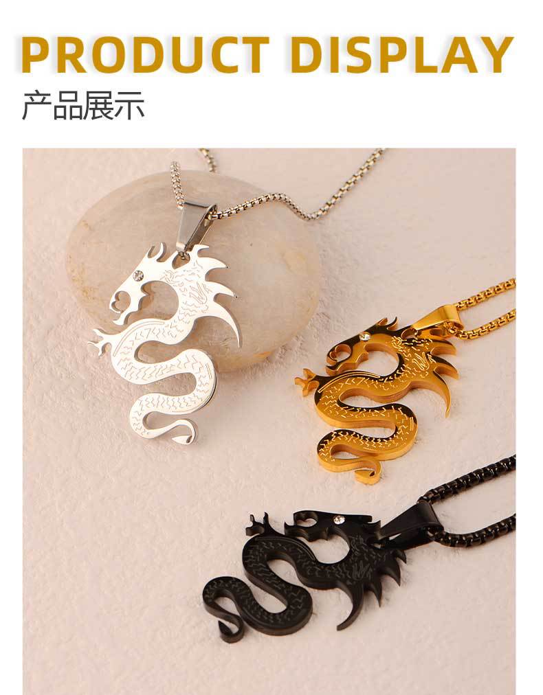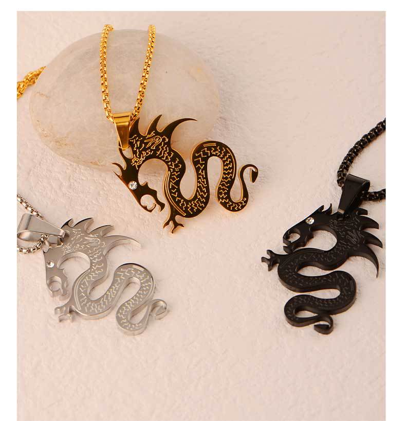 chinese style flame dragon pendant dragon-shaped pendant power style personalized boys simple all-match street accessories titanium steel pendant