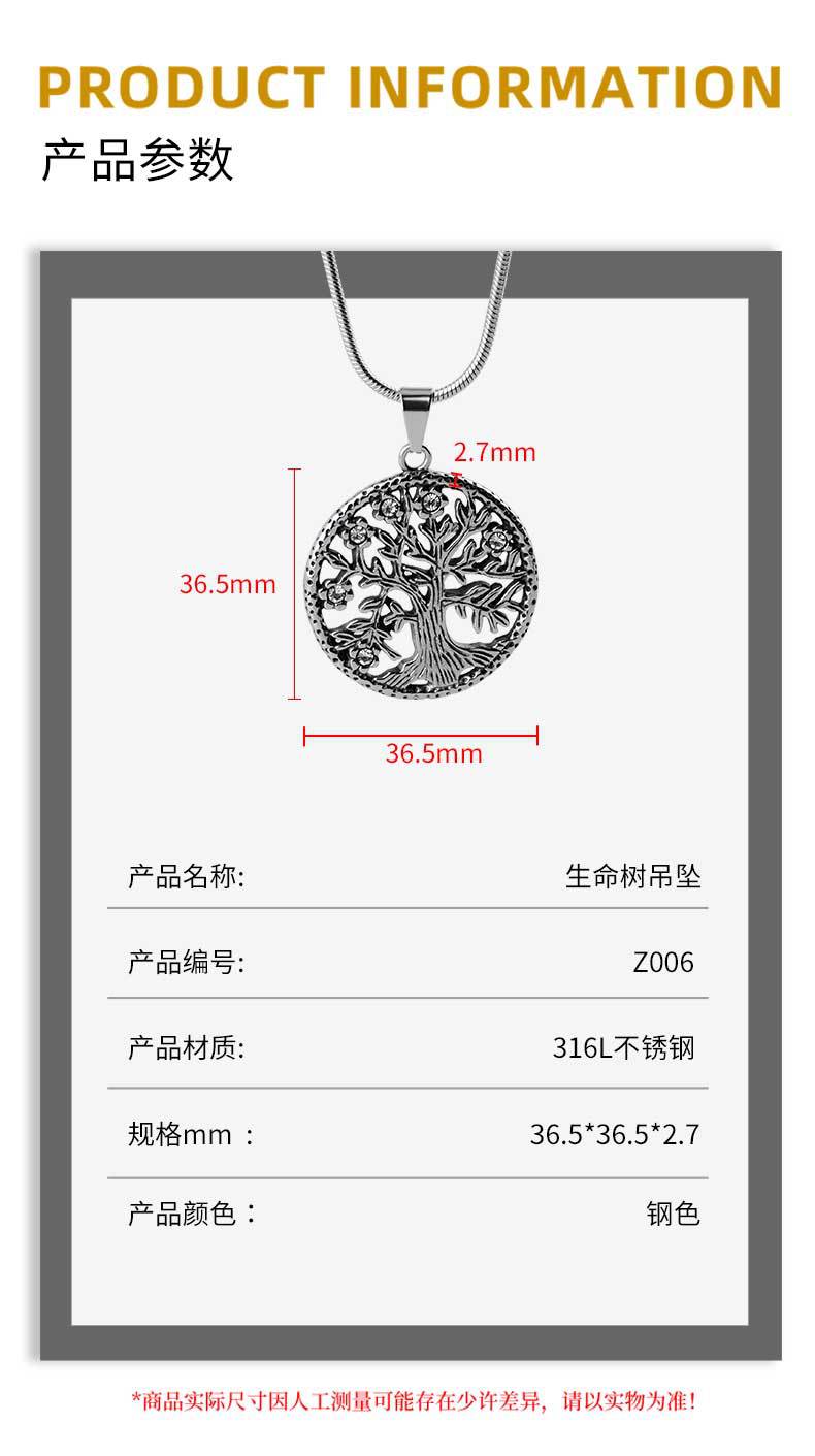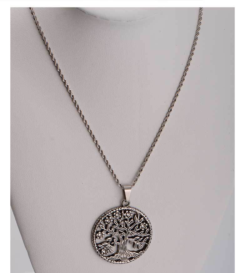fashion best-seller hip hop versatile titanium steel diamond tree of life pendant personality men and women casual couple pendant retro