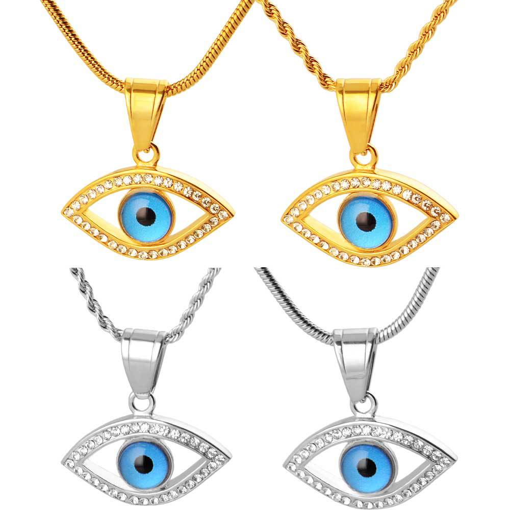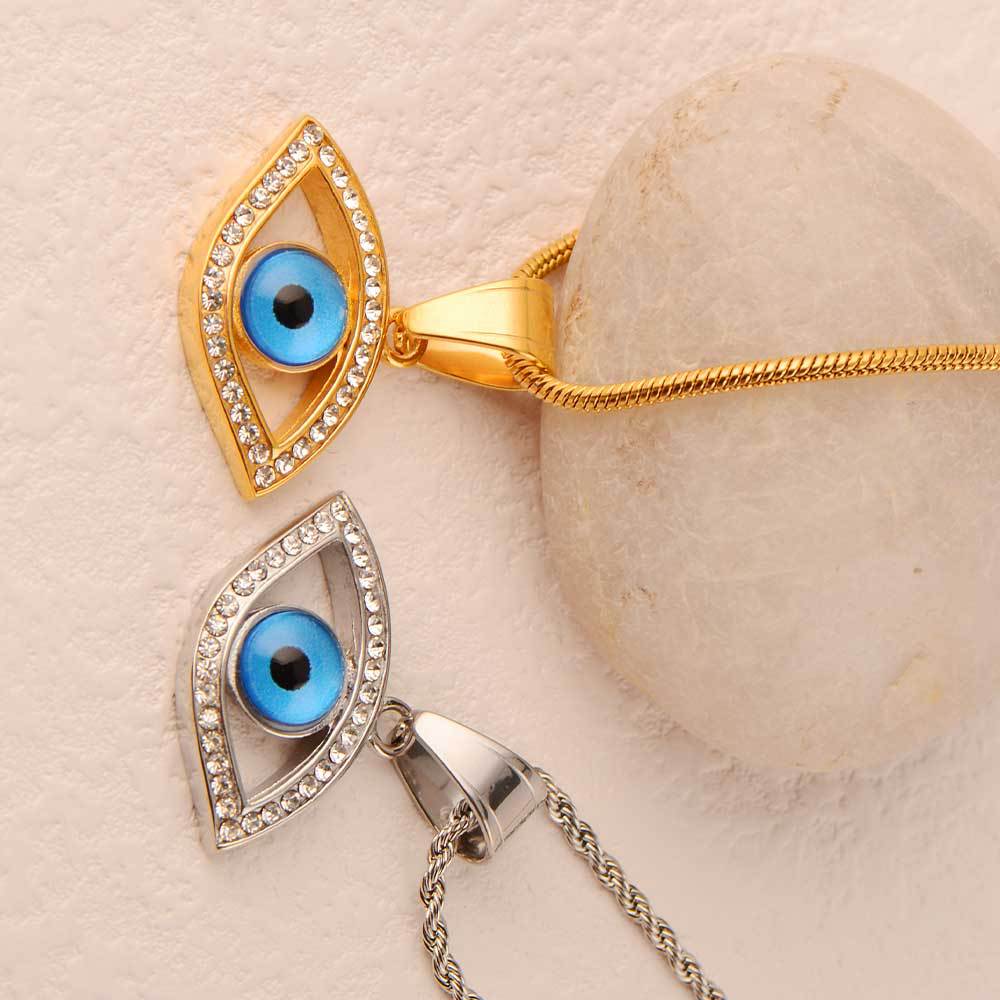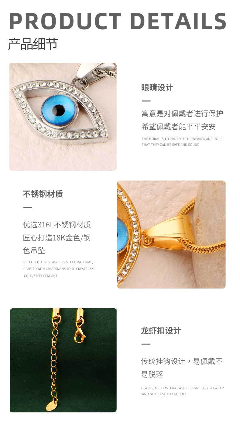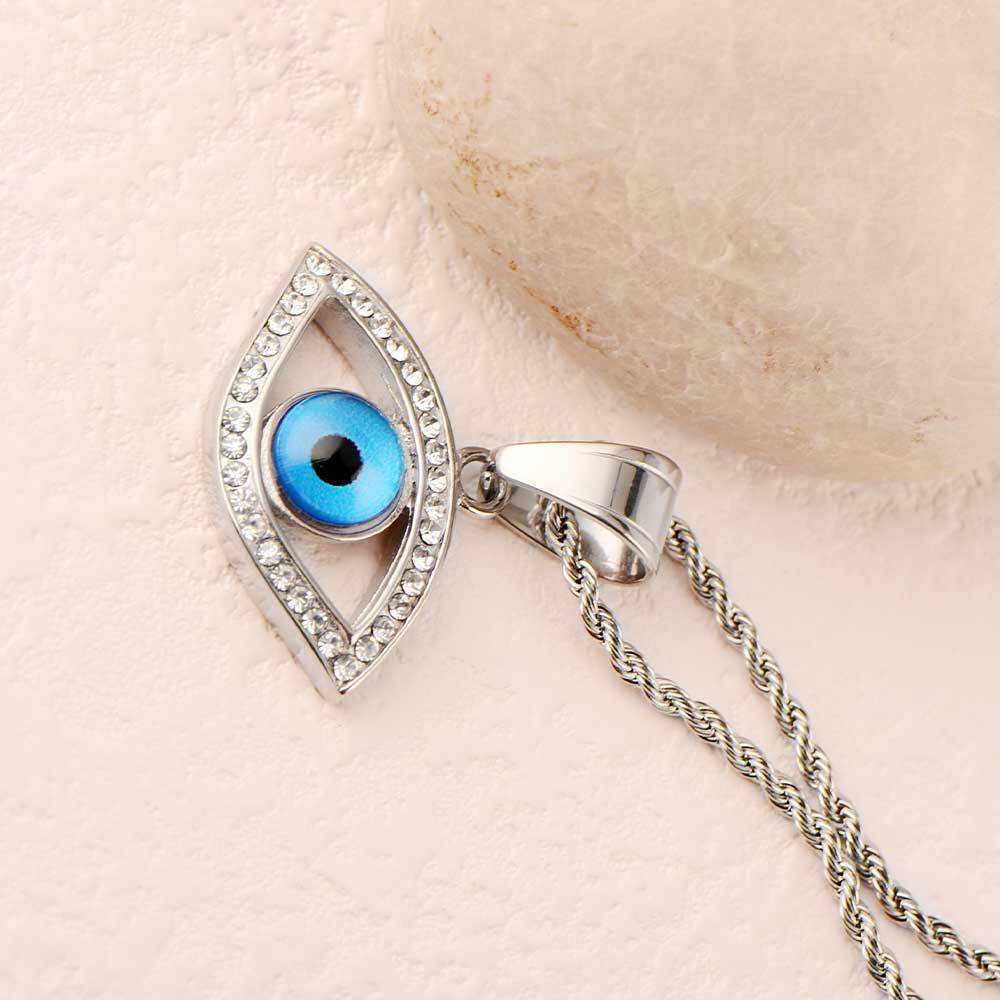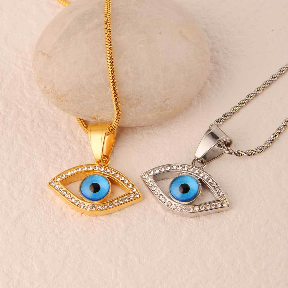 cross-border hot selling funny devil's eyes blue eyes jeweled pendant 316l stainless steel pendant high-grade non-fading