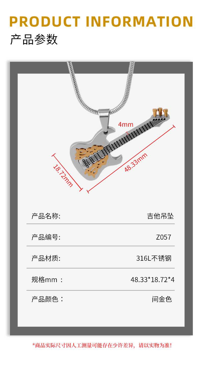 factory direct sales korean fashion small guitar necklace pendant men's and women's fashion all-match pendant selected jewelry gift