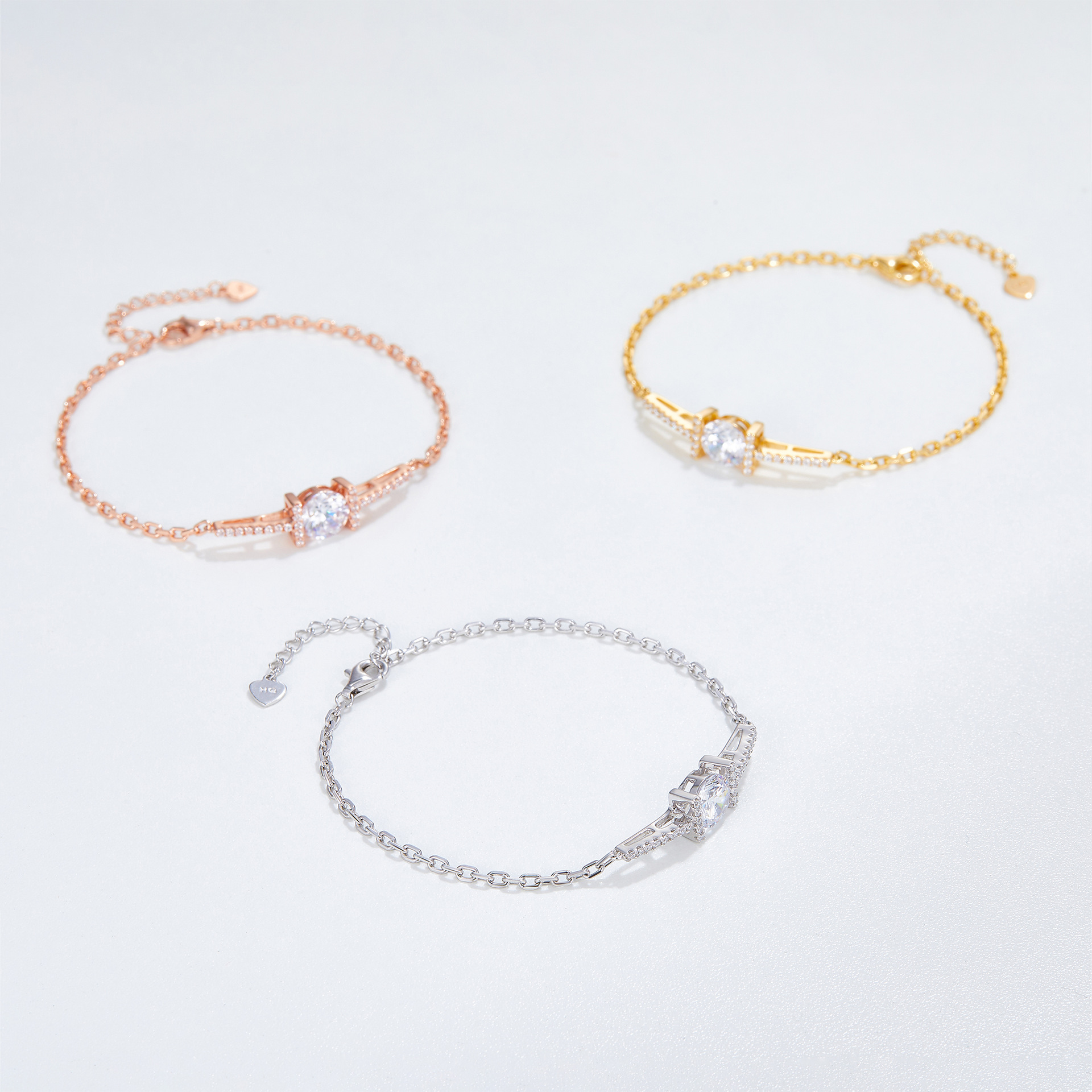 The material of this bracelet's chain is 925 silver, and the pendants are made of white copper.