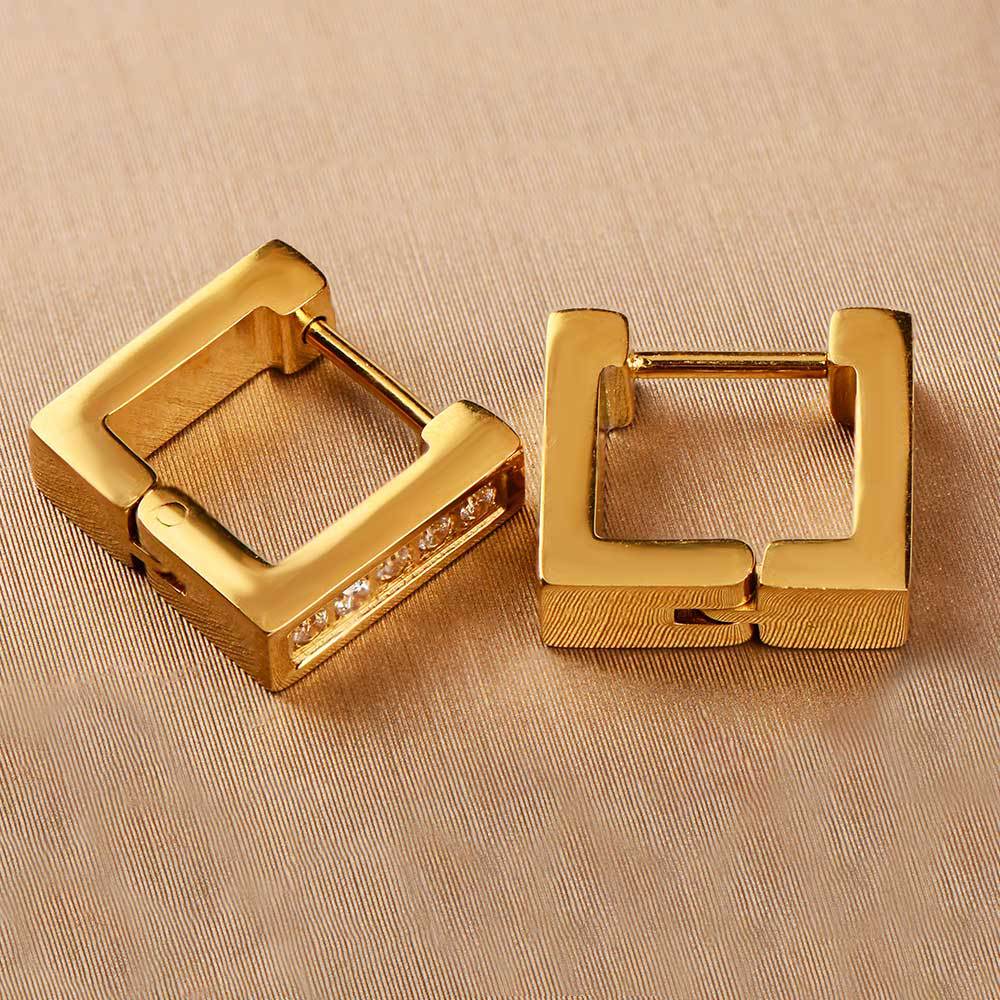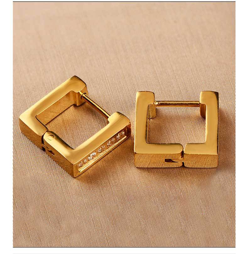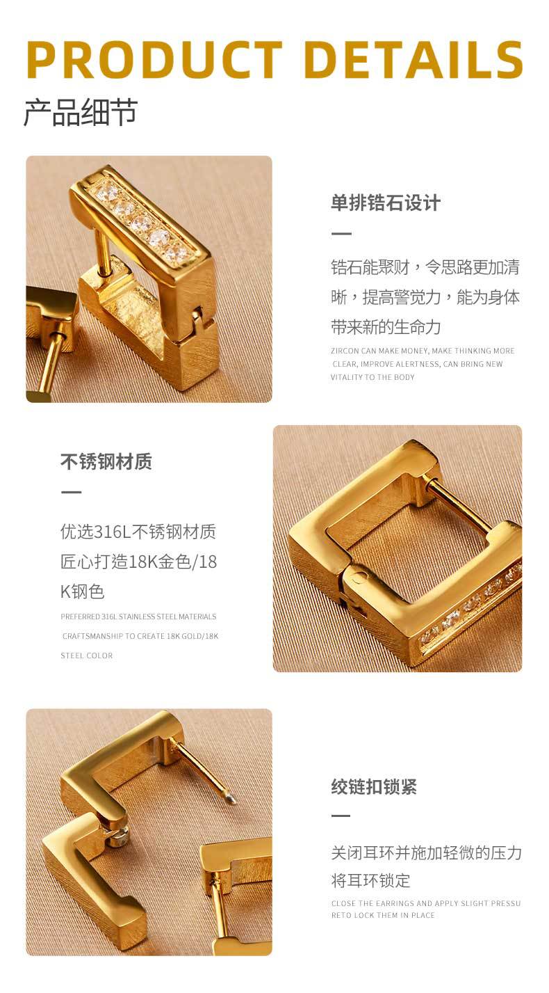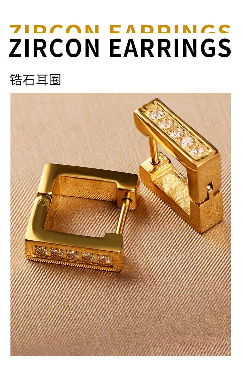 exclusive for cross-border stainless steel ear clip men's and women's neutral light luxury hand-polished square earrings inlaid zircon earrings