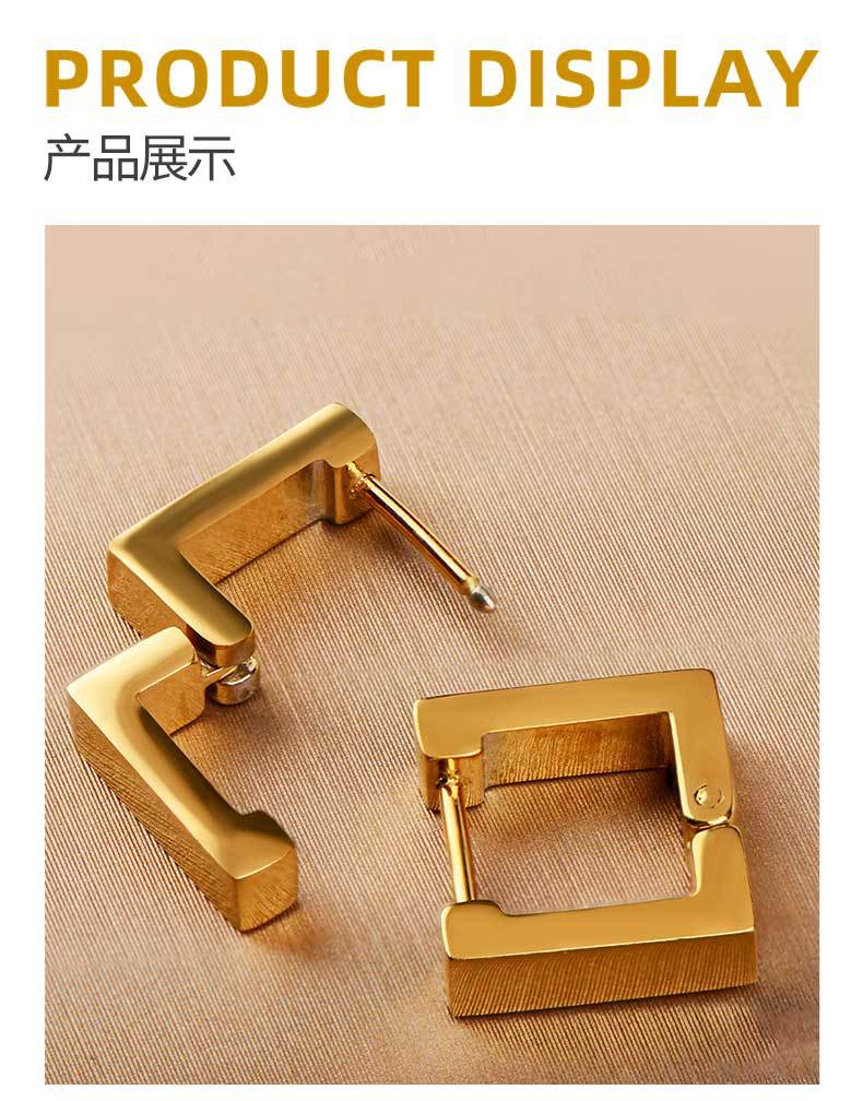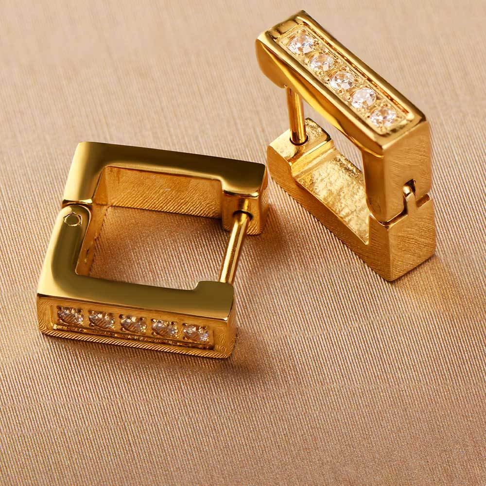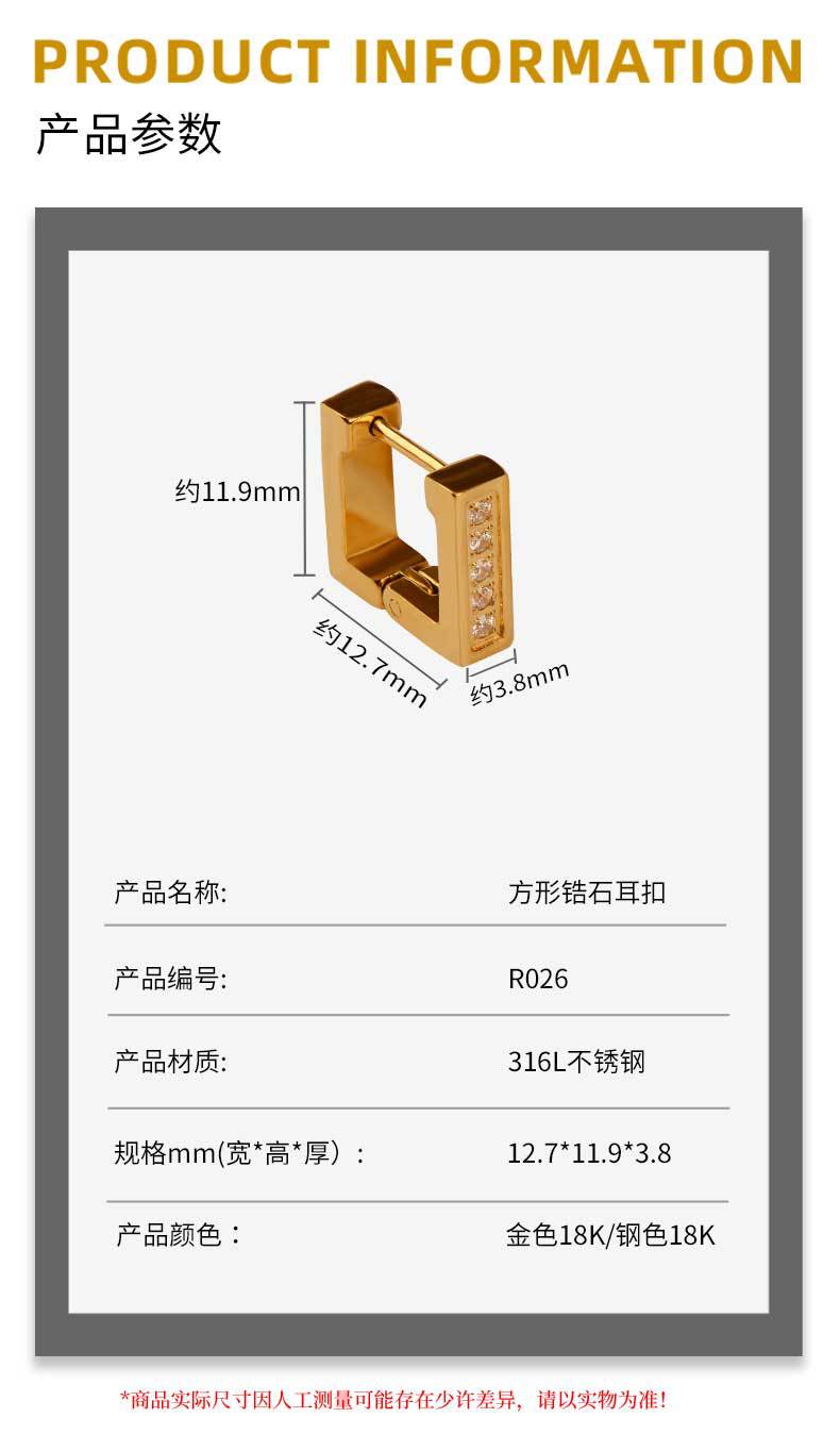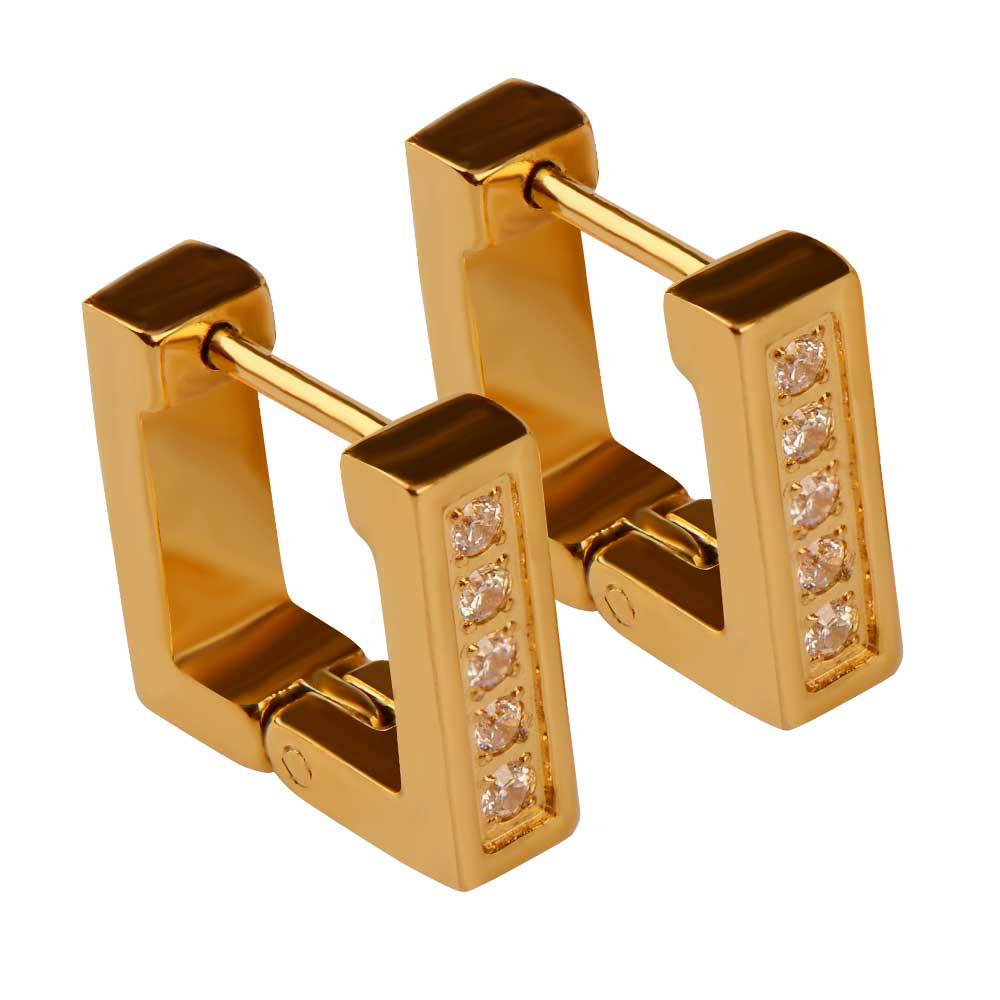 exclusive for cross-border stainless steel ear clip men's and women's neutral light luxury hand-polished square earrings inlaid zircon earrings
