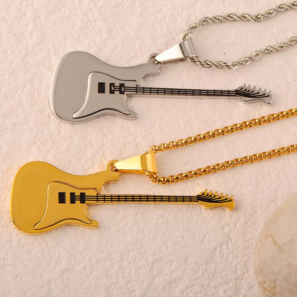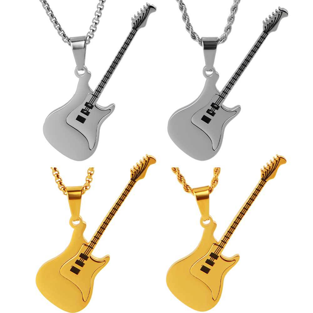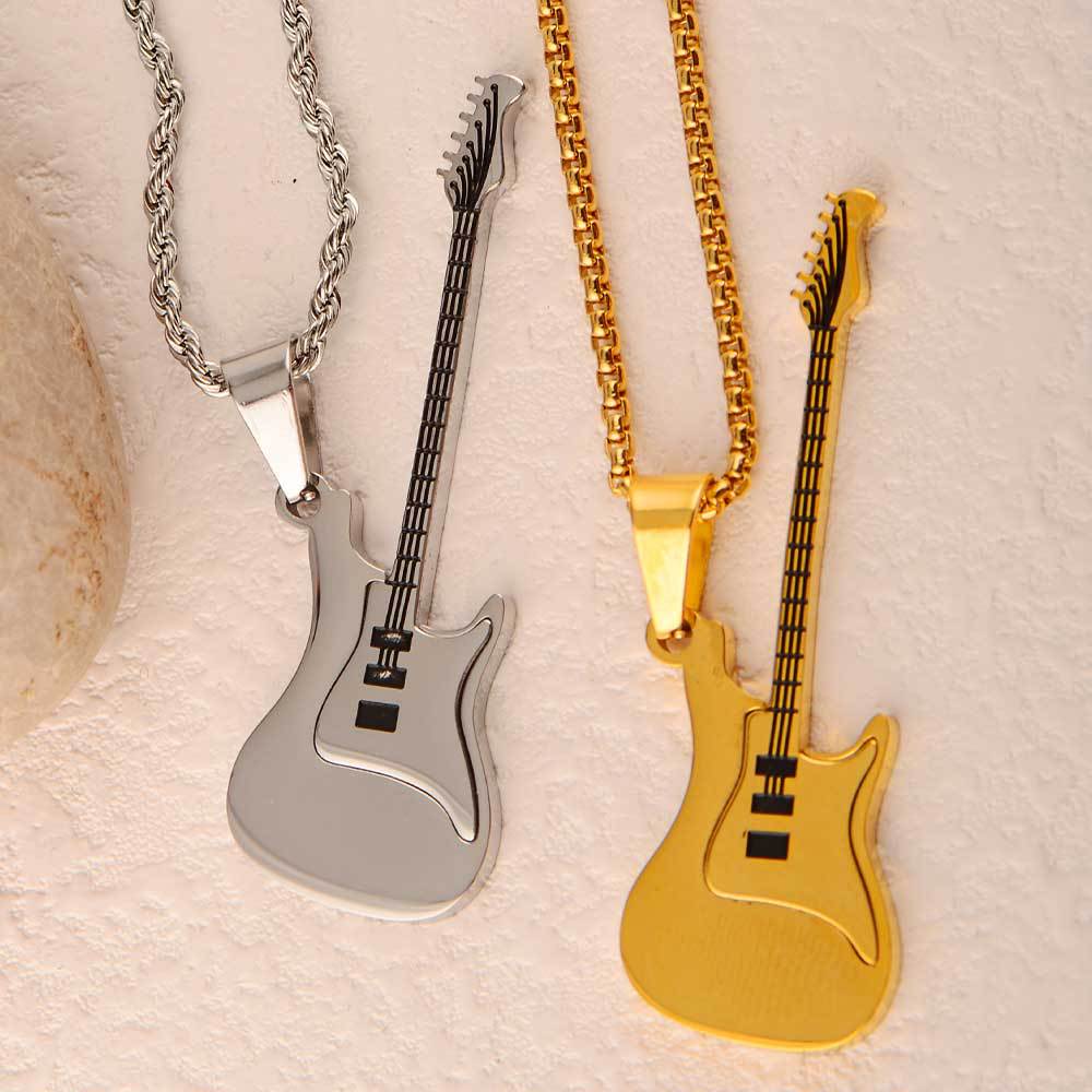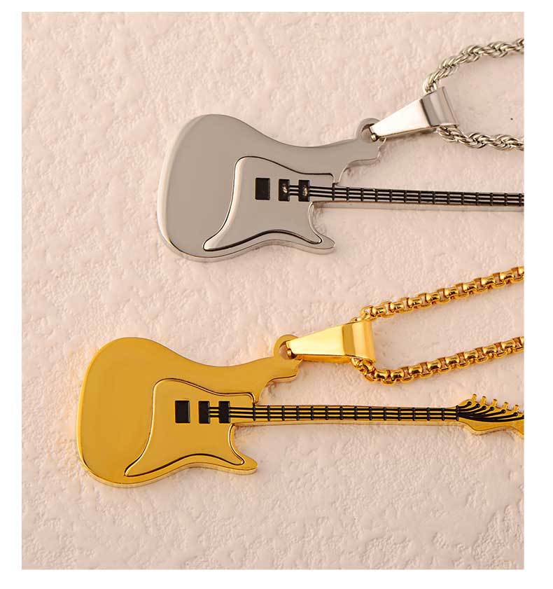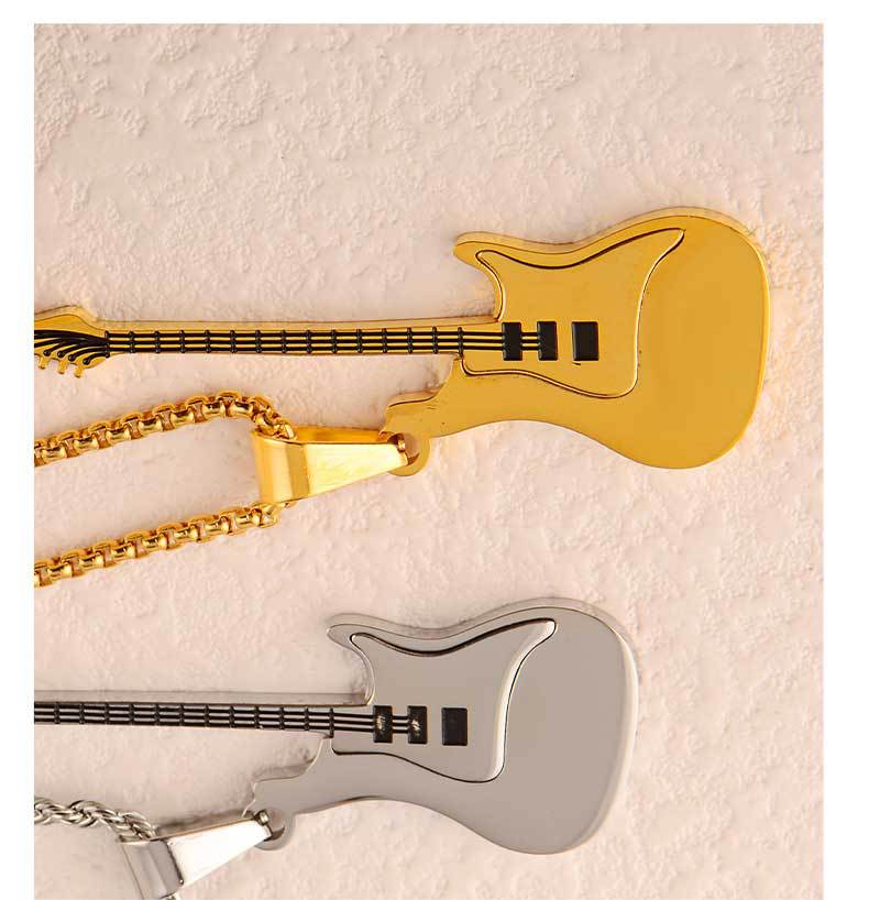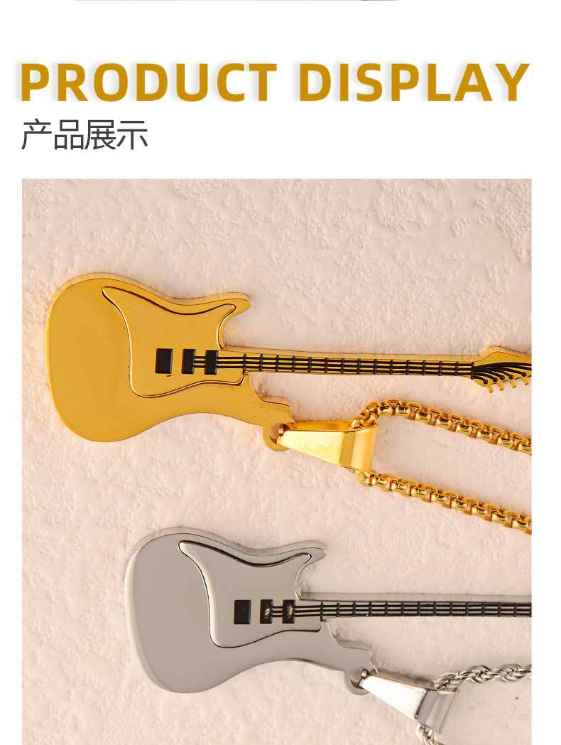 guitar pendant titanium steel men's trendy ruan handsome high-grade accessories stainless steel golden violin pendant does not fade