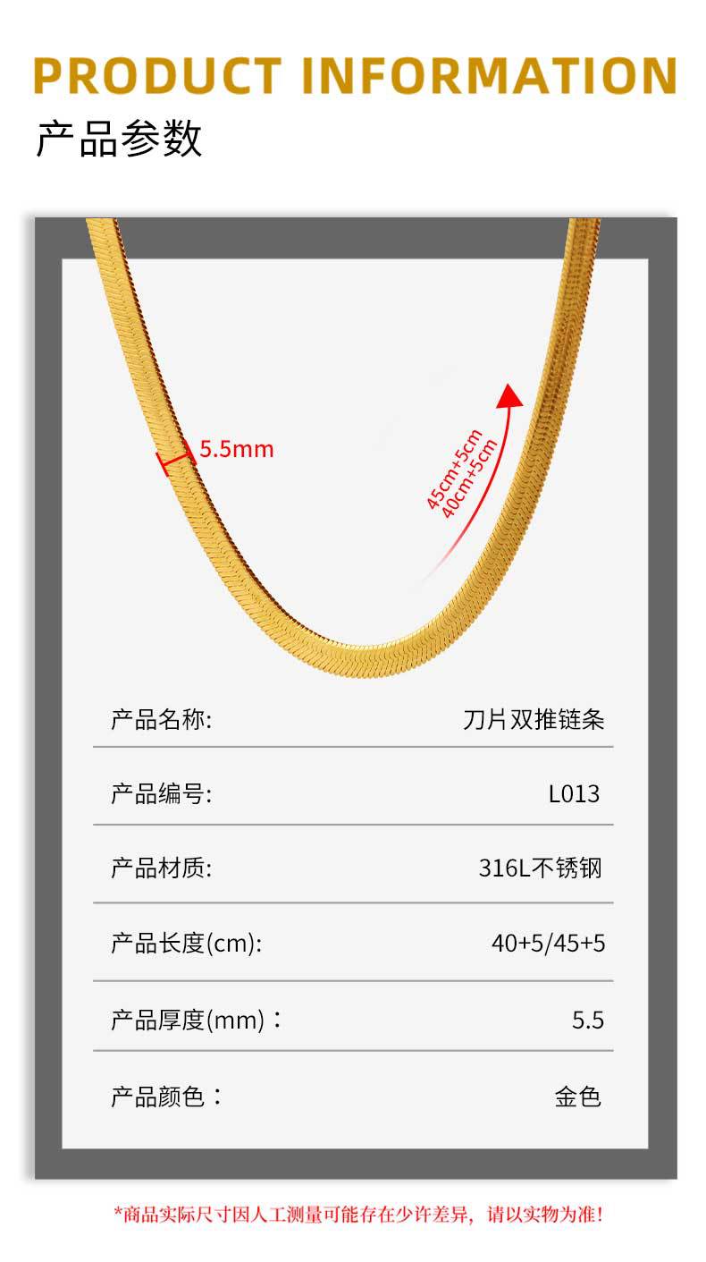 l013 gold: 5.5mm width 45cm + 5cm extension chain + tail plate