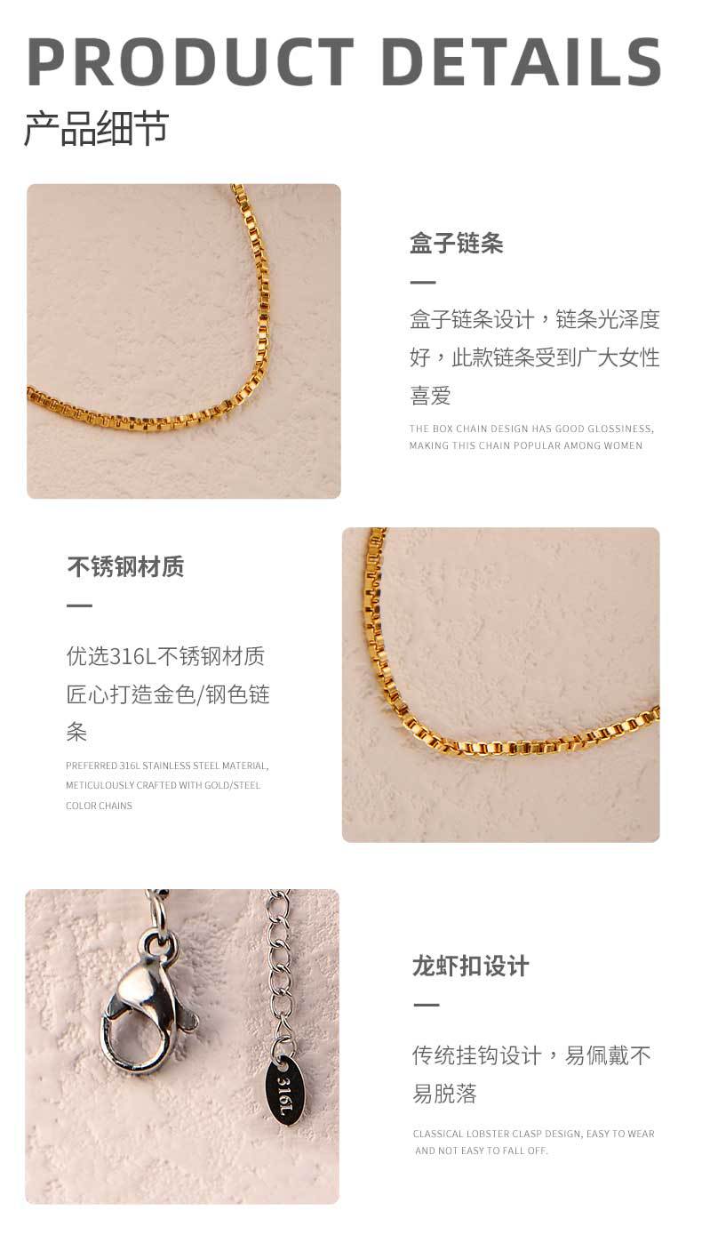 l008 gold: 2.4mm width 40cm + 5cm extension chain + tail plate CN¥ 8.7 2500 pcs available
