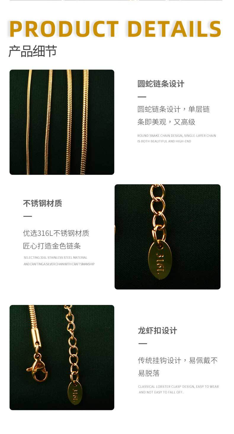 l008 gold: 2.4mm width 40cm + 5cm extension chain + tail plate