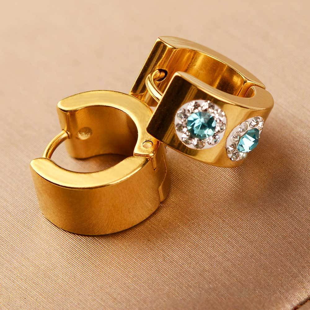 japanese and korean simple stylish titanium steel wide ear clip rhinestone zircon blue black red stainless steel earrings non-fading earrings