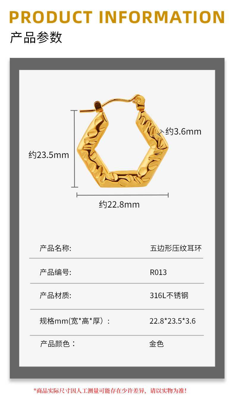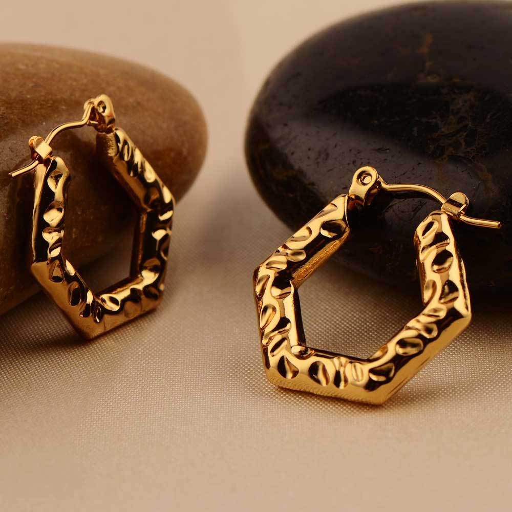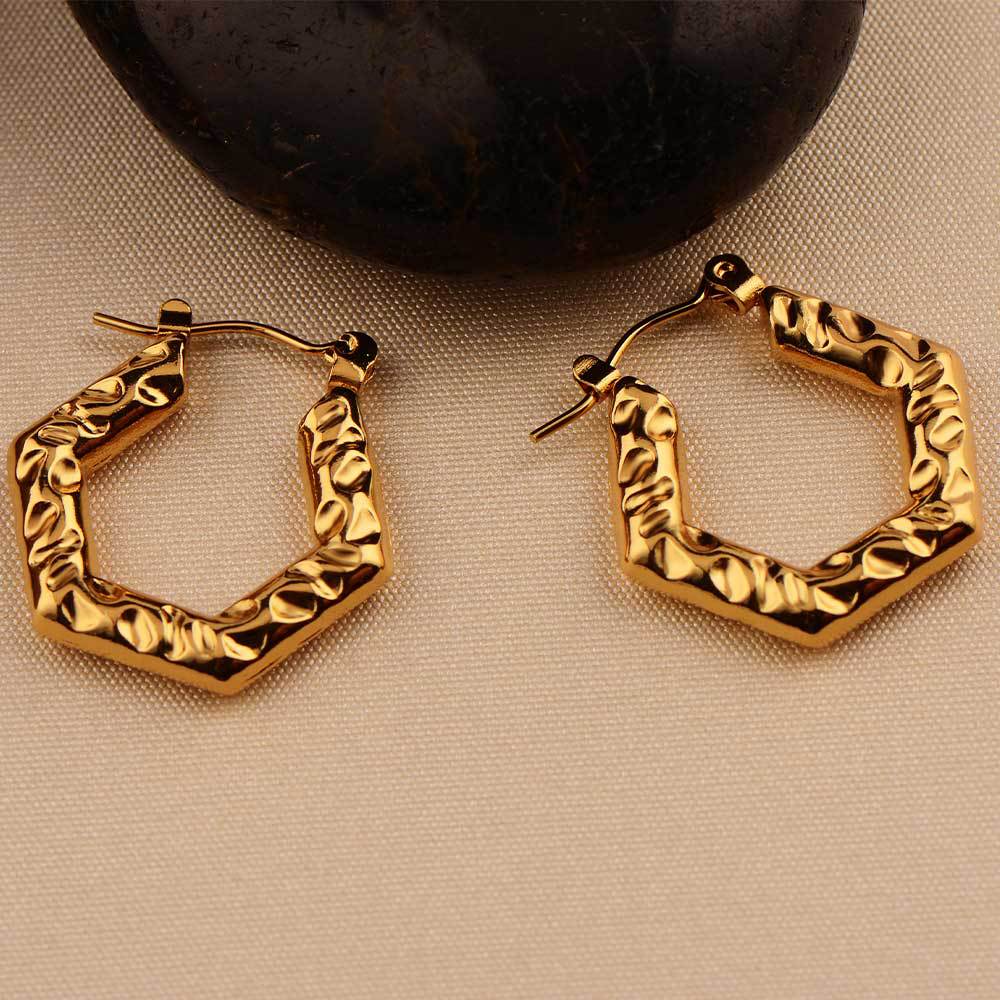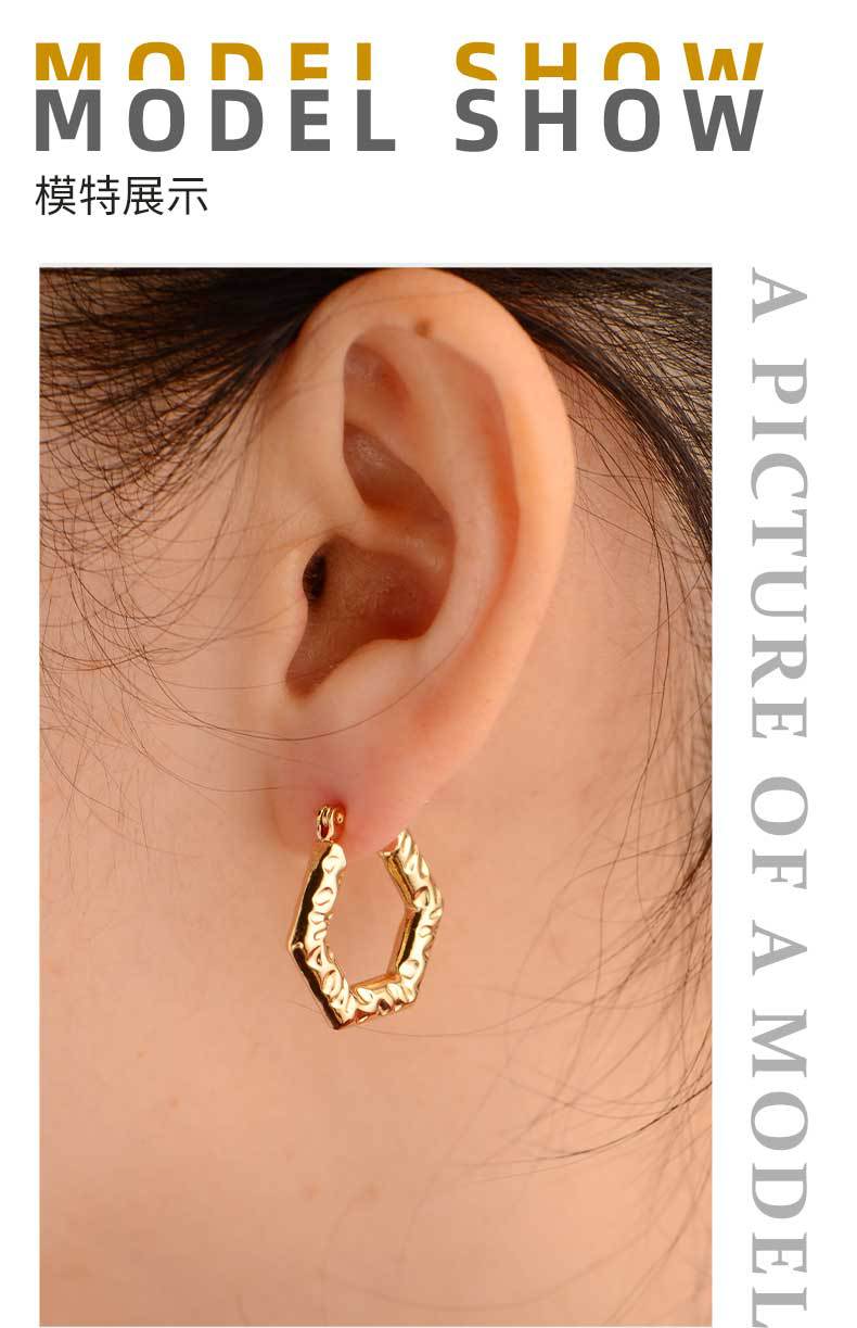 18k gold plating stainless steel earrings light luxury oil pressure ear clip female export quality geometric six sides factory wholesale