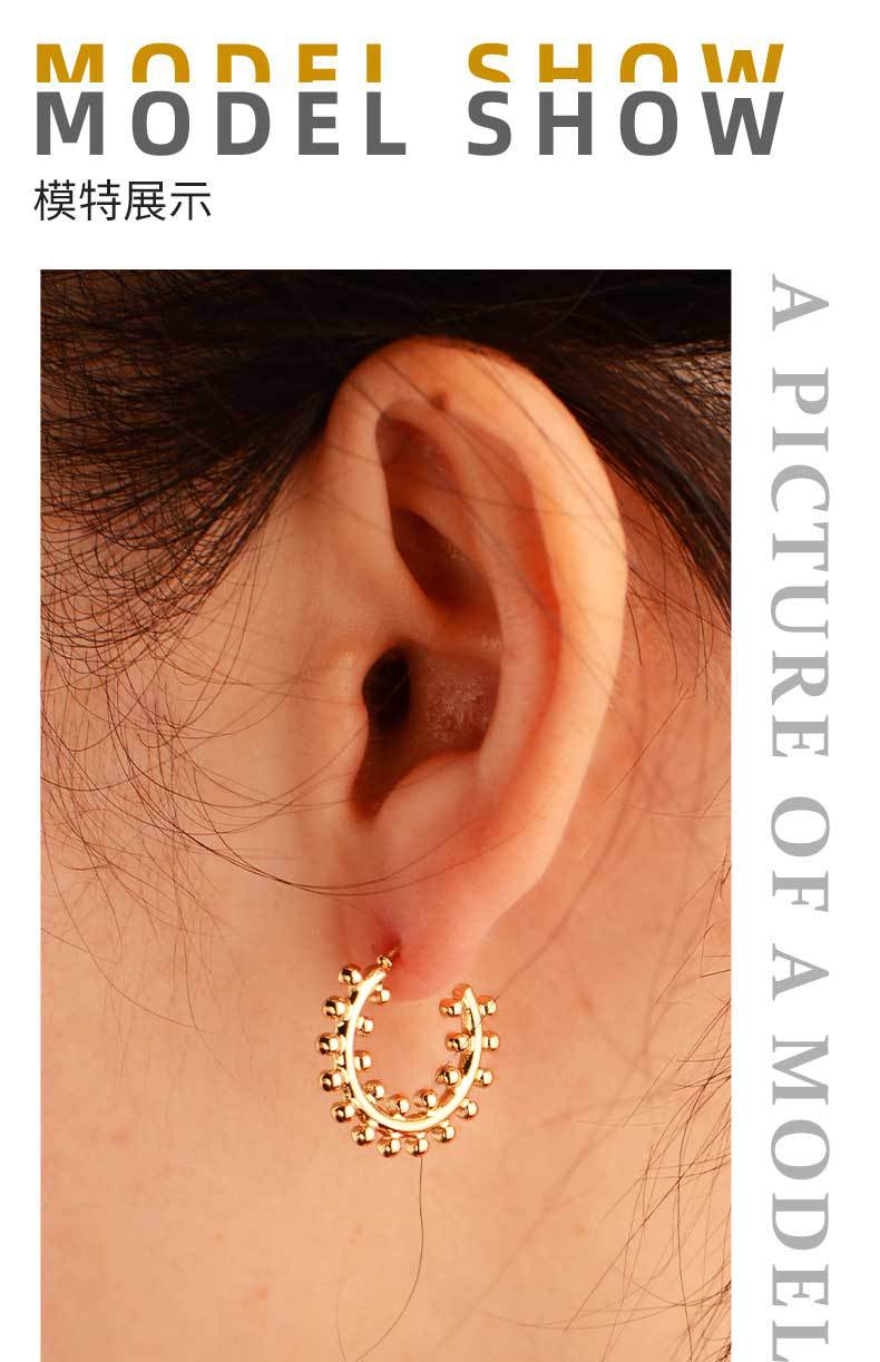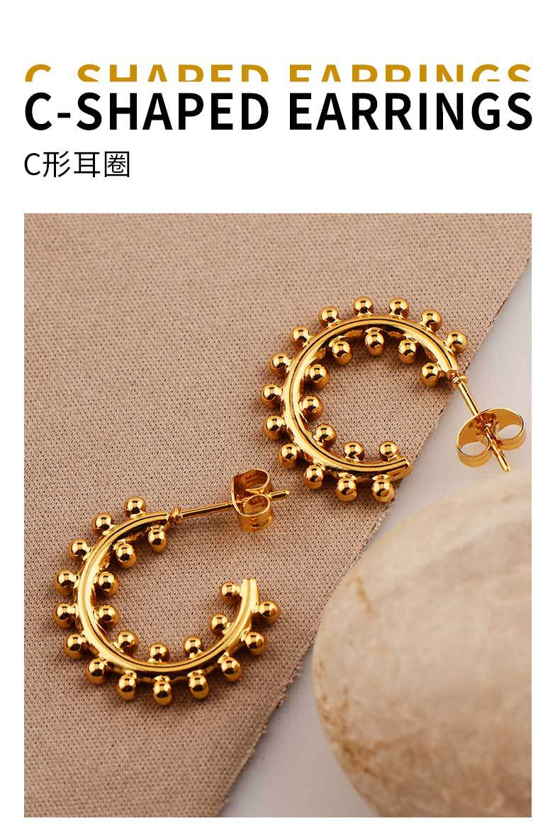 cross-border hot c- shaped earrings two rows round ball niche earrings female titanium steel plated 18k real gold does not fade in stock wholesale