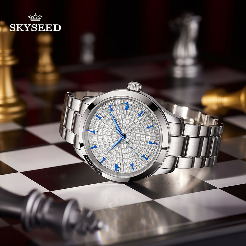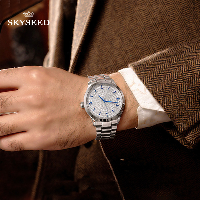 skyseed tiandai high-end watch imported movement men's watch fine business watch starry with diamonds silver watch