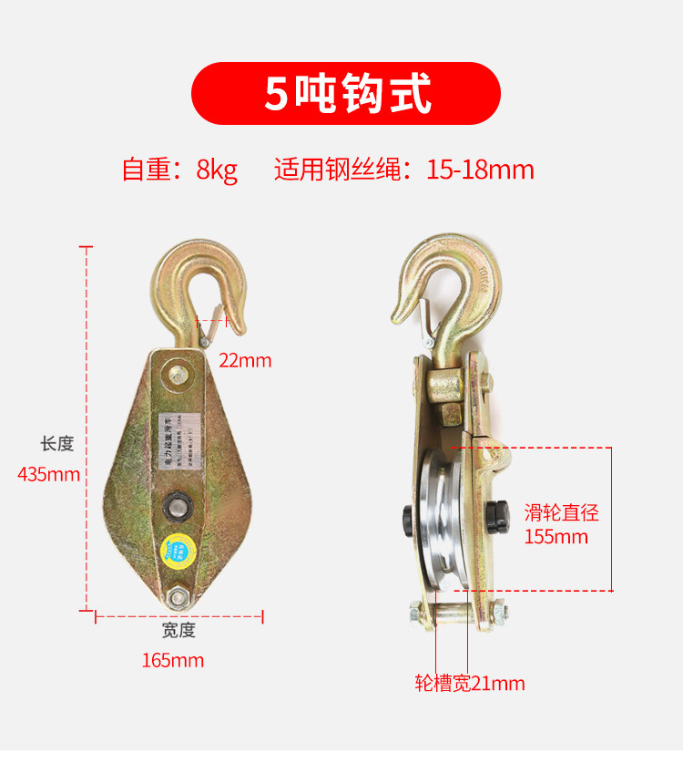 5 t with hooks wire rope max 18mm