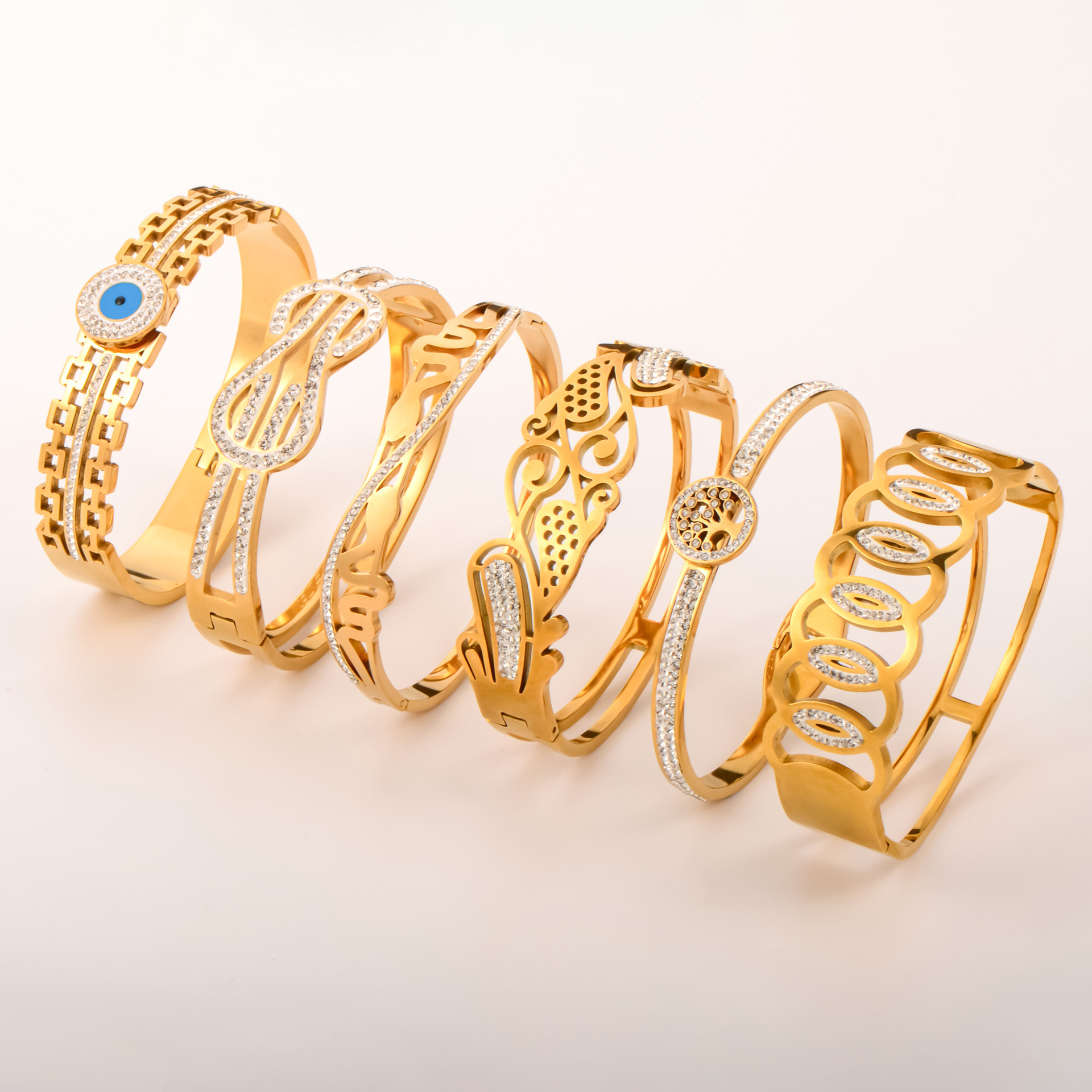 european and american fashion u-shaped 8-word string bracelet wide version starry sky inlaid zircon hollow bracelet high-grade light luxury bracelet